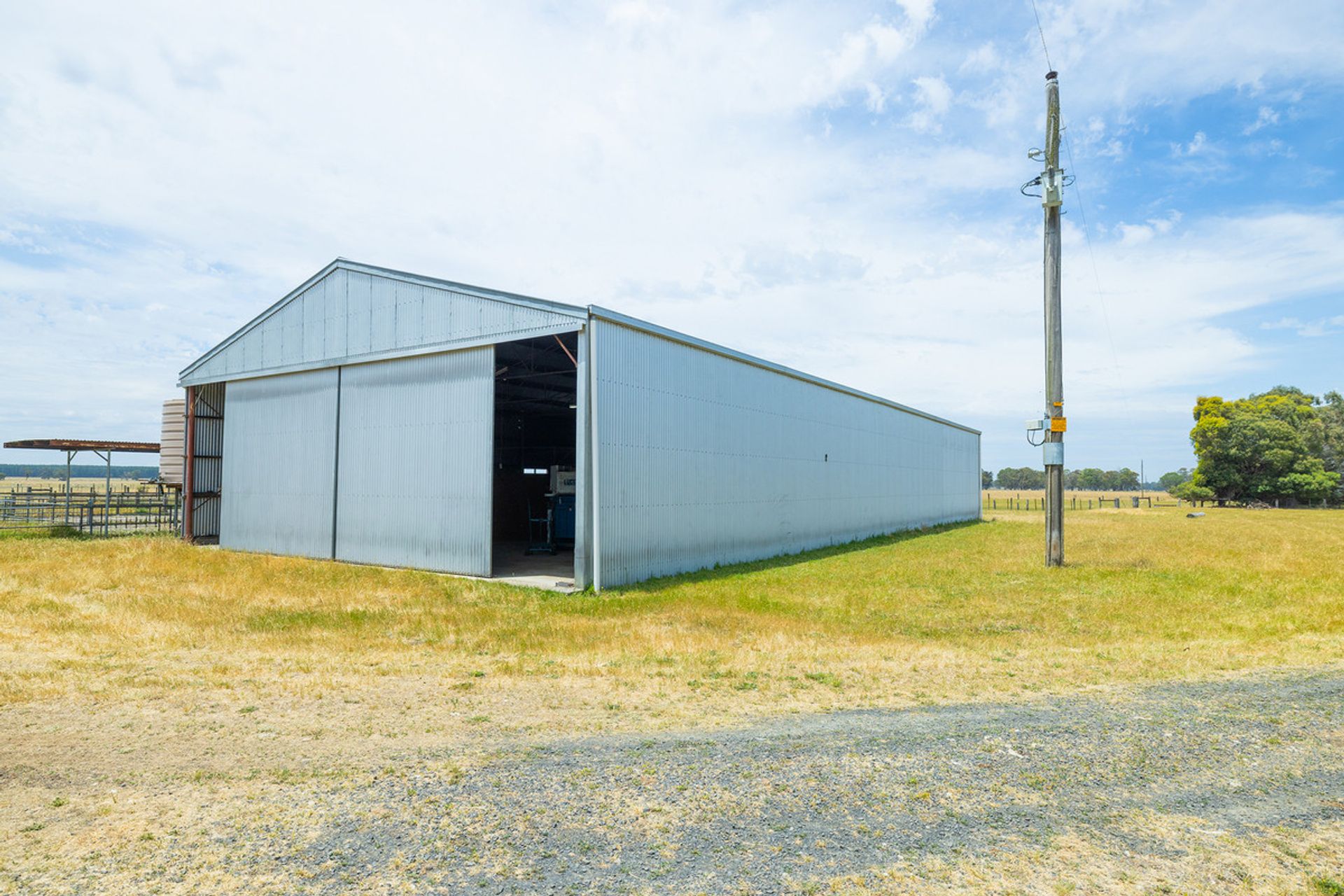 Substantial GI 3 stand R/B woolshed (100ft x 40ft). Large woolroom/machinery storage with u/c sheepyards & holding paddocks - B double access. Powered GI machinery shed.