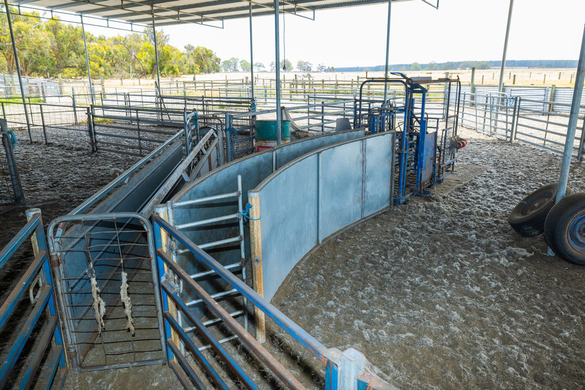 Galvanized iron 3 stand raised board Woolshed (100ft x 40ft) with wool area and/or machinery storage area of 40ft x 40ft approximately. Accessed by 3 large sliding doors for machinery storage purposes. 240v and 440v power outlets – Internally floodlit. 450 sheep undercover capacity not including sheepyards. Undercover sheep yards with 3 way draft and adjustable separate sheep handler race. Dedicated single drenching race and large footbath. Yards have a working capacity of approximately 600 – 700 ewes & lambs plus 4 to 6 holding paddocks. Notably 2 closer paddocks have native shelter ideal for off shears sheep. All weather b double access to yards with provision for b double off road parking bay at entrance. Second open fronted GI machinery shed (36ft x 45ft) with power connected, near Woolshed. A second smaller unequipped galvanized iron crutching shed (no power) is located at the eastern end of the property with access to Olive Grove Road. Adjoining sheepyards are occasionally used.