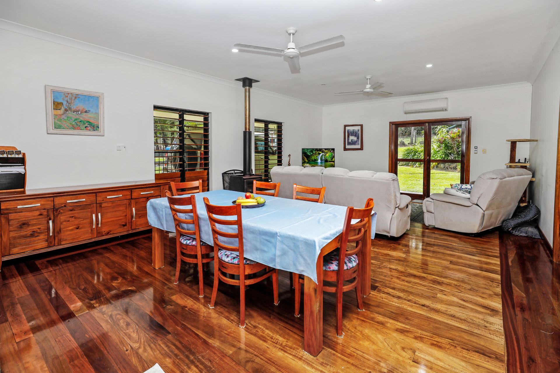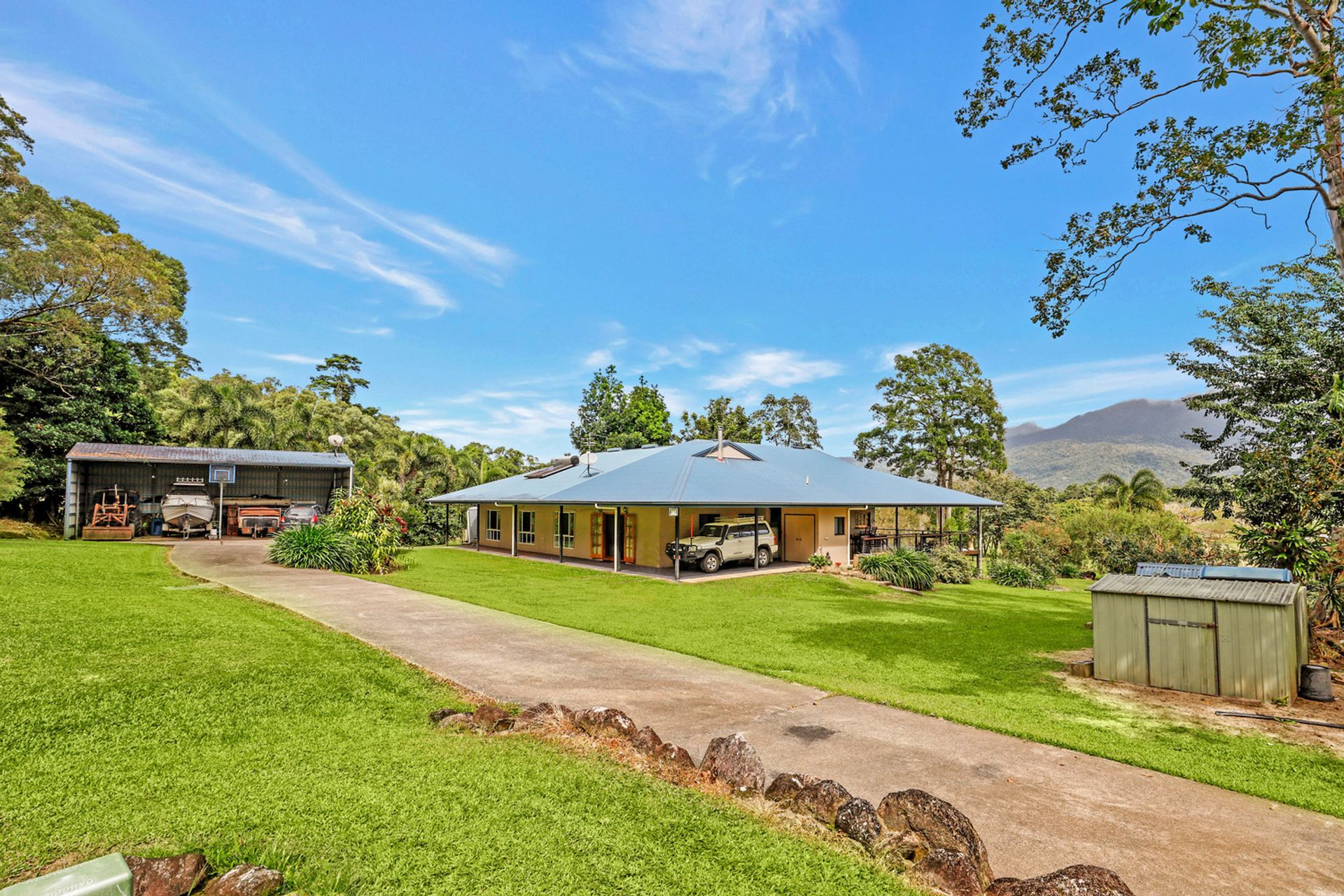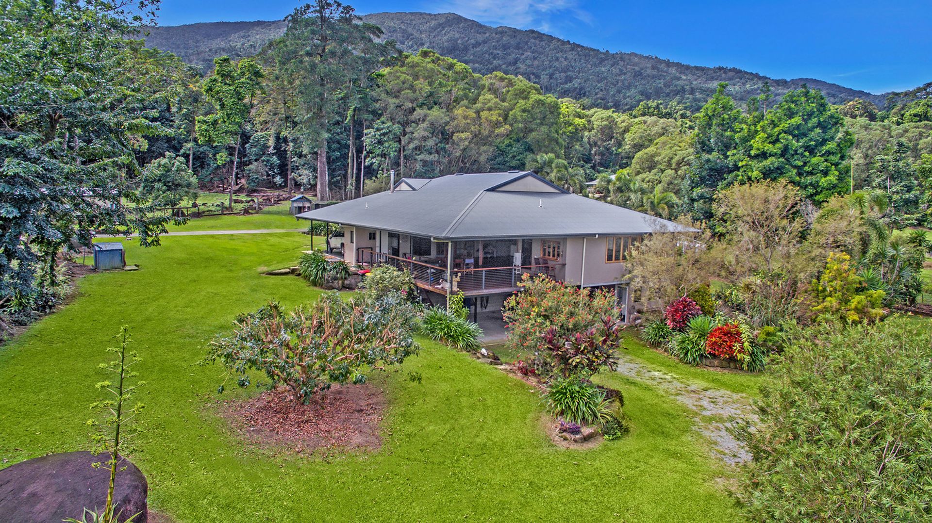 Situated 15mins south of the township of Gordonvale and 40mins south of the City of Cairns, this fully airconditioned, sprawling family home backs on to rainforest and offers an unique opportunity to accommodate a large family and have that country lifestyle.