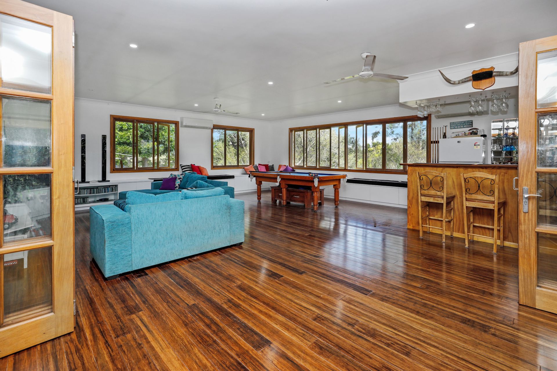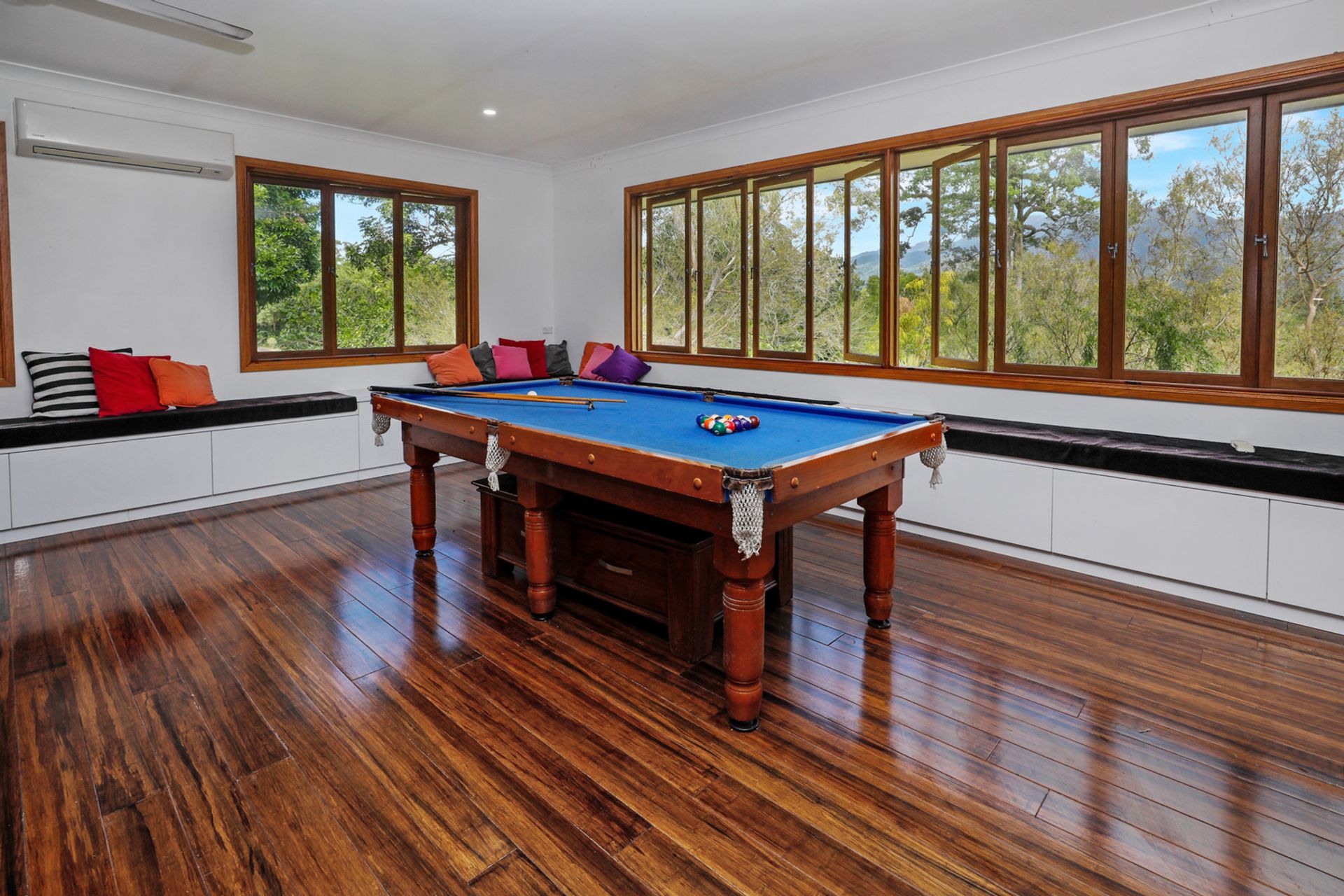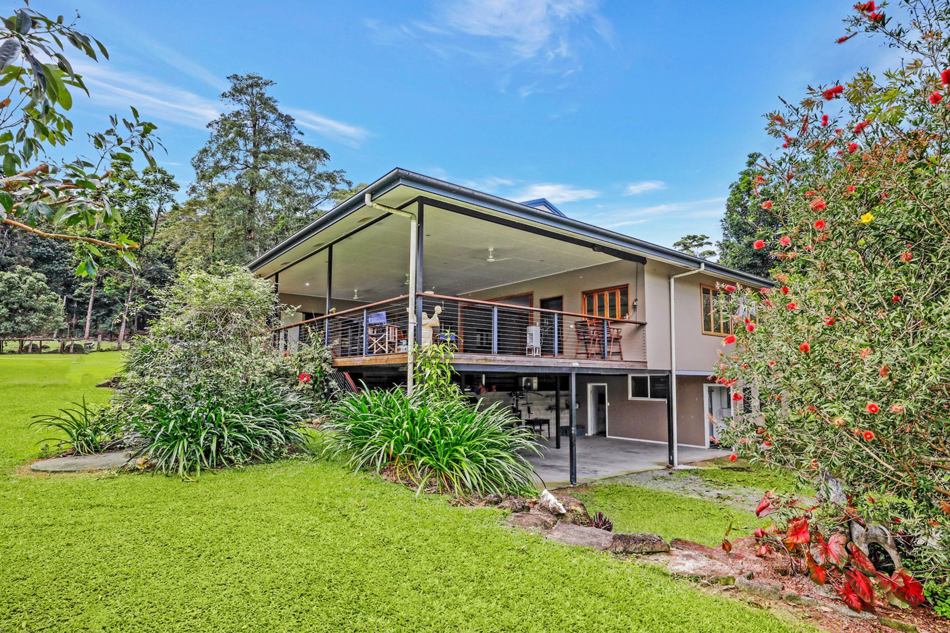 Upstairs there are 4 Generously sized bedrooms, 3 with full length built ins and the master bedroom has a walk through wardrobe and spectacular newly renovated ensuite. Downstairs there is a 3 undercover parks and an extra large bedroom/office/teenager retreat with its own shower. As well as the main living area, there is a separate, huge entertainment room with a bar, storage under all the seating that surrounds the room, plenty of room for a pool table and much more. The entertainment room opens up via bi-fold doors on to the equally huge timber deck overlooking the paddocks and beautiful mountain views. There is plenty of room for a pool but why would you bother when you are only minutes drive from beautiful freshwater swimming holes.