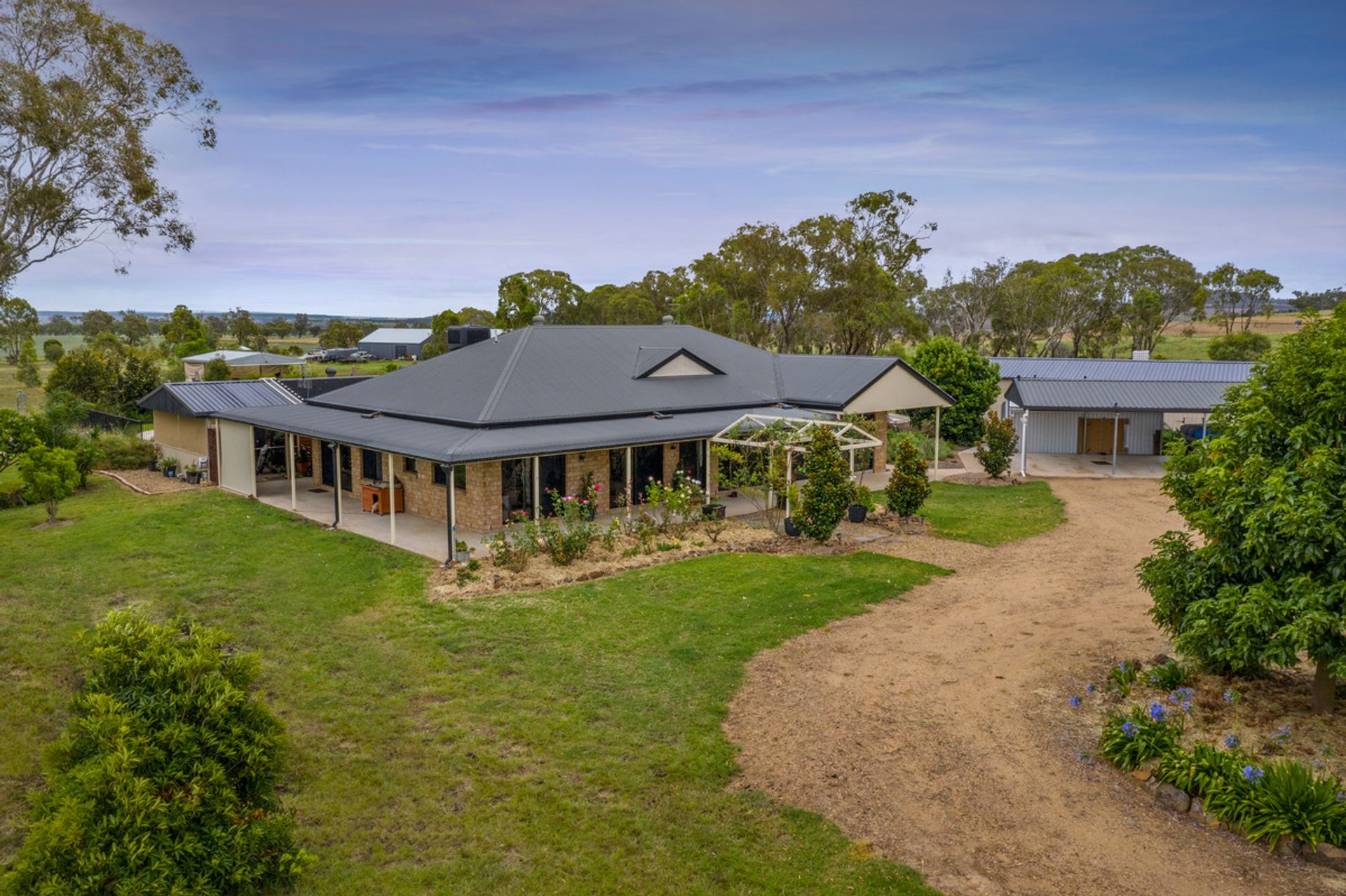 Built in 2010, the four bedroom brick home has had a new kitchen put in in 2018 and has recently been painted. The three bay carport ties in seamlessly with the eclectic styled garden. An area has been levelled to allow for most horse activities. The workshop shed has a fully cemented floor with power to all of the three open bays and two enclosed bays. Approximately 3/4s of the property is self-mulching alluvial black soil with abundant areas of pasture.