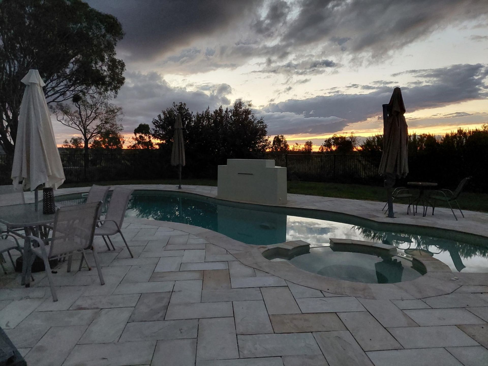 * Inground heated salt water pool with lighting and counter lever umbrellas