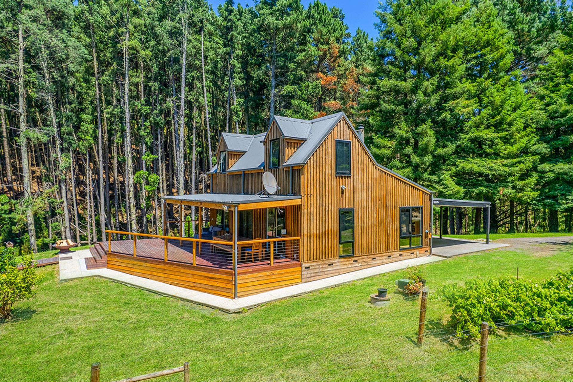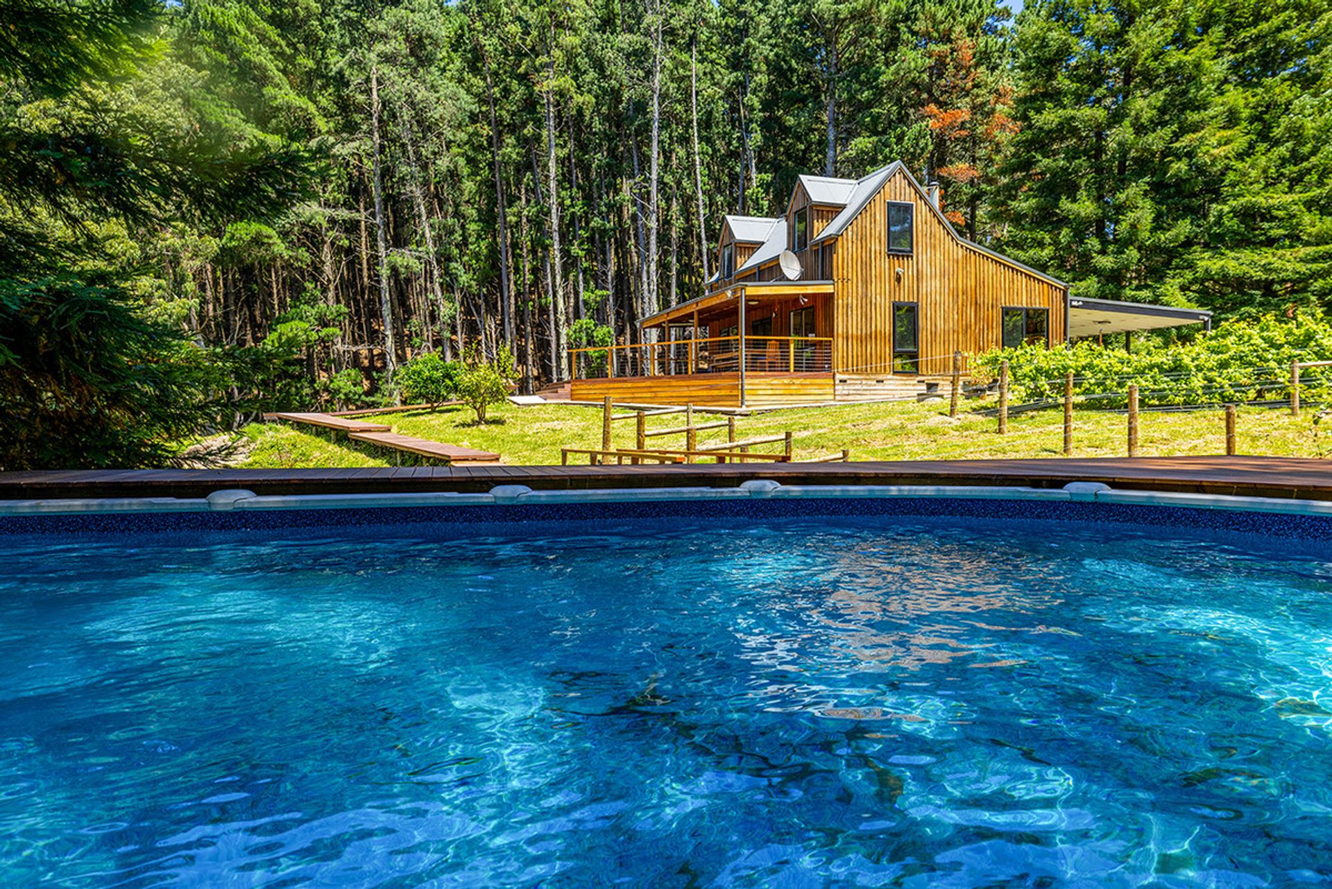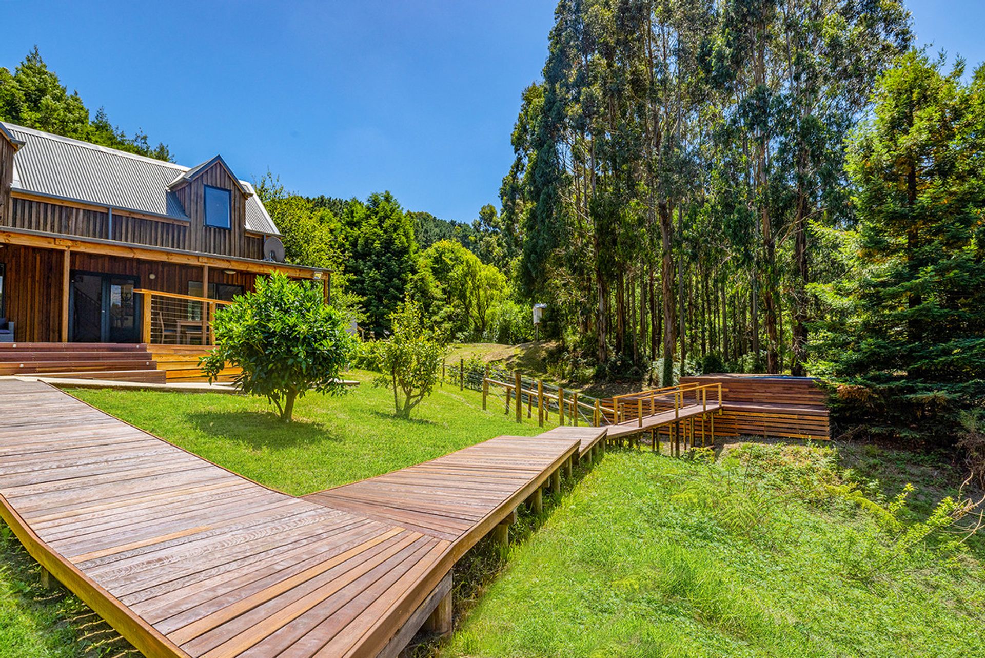 Accommodation includes: 2 generous bedrooms off the main living area 1 down stairs 1 upstairs with the master bedroom separated from the main house with luxurious fixtures featuring polished concreate flooring, open plan layout with a free standing bath looking out into the woodland backdrop. Further features include centrally located family bathroom, Solid wood heater, and high ceilings. Outside you will be amazed by the expansive merbau decking that meanders down past a magnificent spring fed dam to the above ground solar heated swimming pool that is nestled into the surrounding bush land.