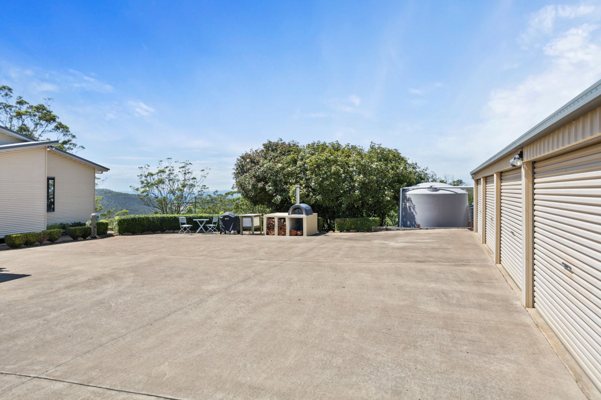 • Pizza oven, town and rainwater (66,000 litre) plus additional storage under house