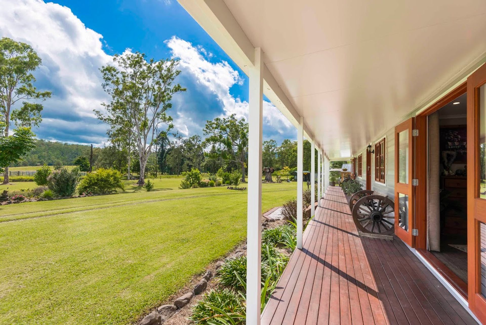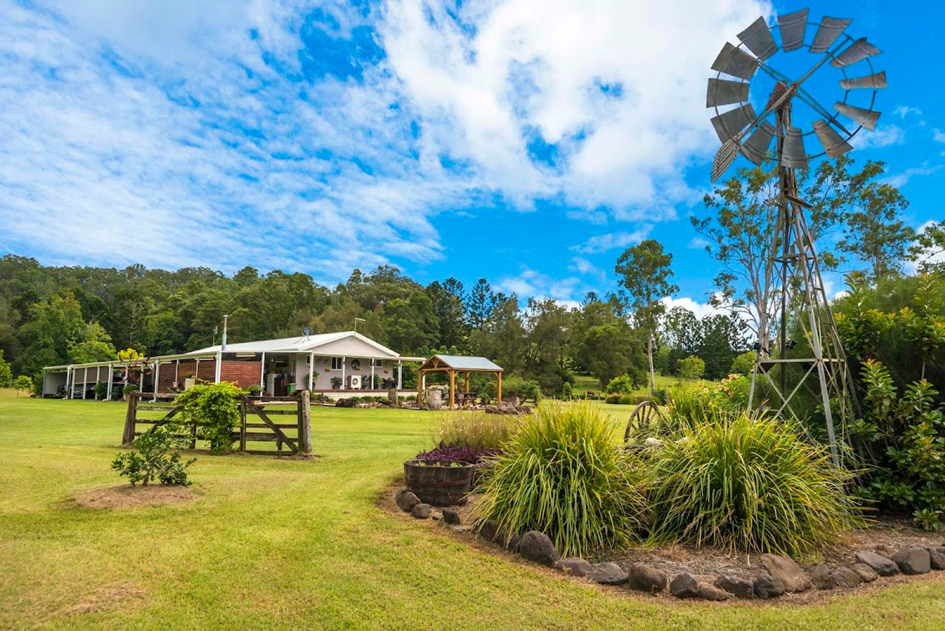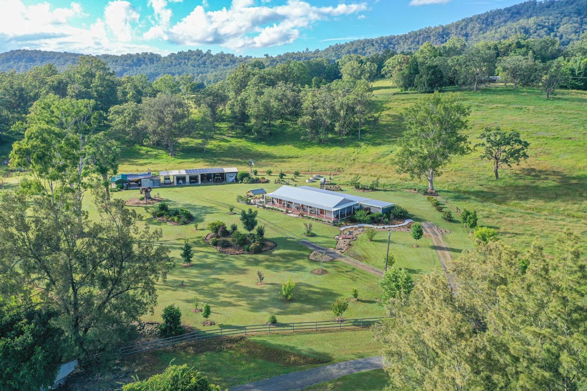 Situated on this beautiful and well-established property is a modern home with traditional charm. Built in 2016 and boasts 4 bedrooms, 2 bathrooms, and wrap-around verandas. Gardens surround the house with authentic country finishes. Feature high ceilings in the open plan living, wood heater, split system air conditioning, and granite benches throughout the kitchen. 2 of the bedrooms enjoy access out onto the veranda, receiving a pleasant outlook of the surrounding areas.