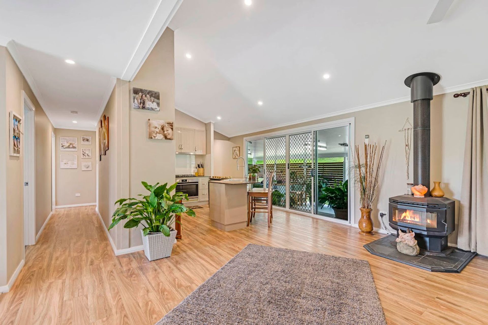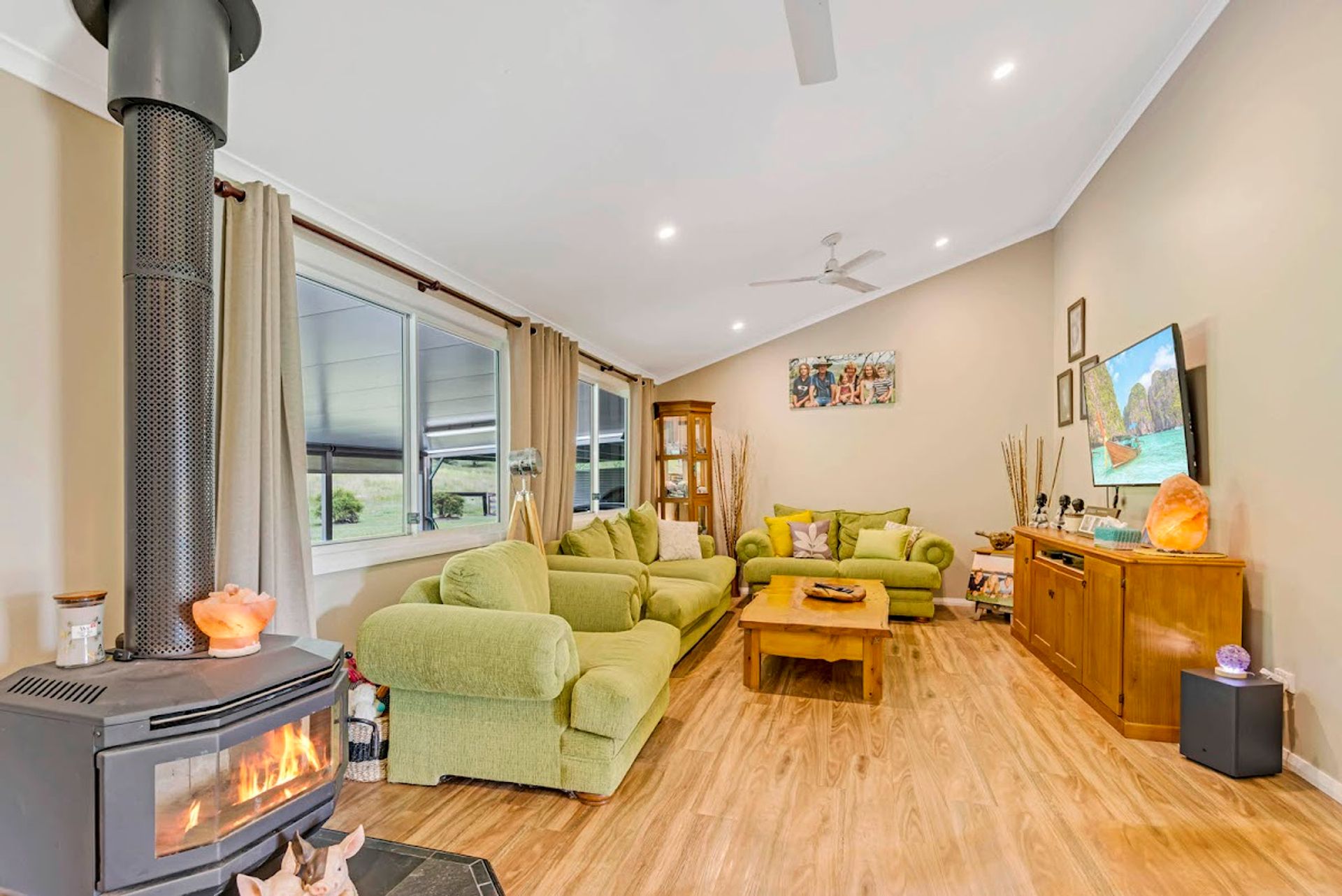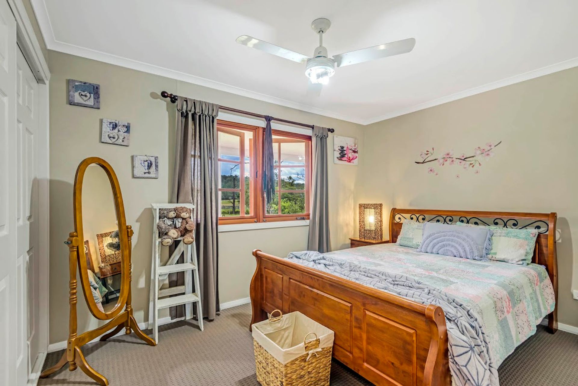 Situated on this beautiful and well-established property is a modern home with traditional charm. Built in 2016 and boasts 4 bedrooms, 2 bathrooms, and wrap-around verandas. Gardens surround the house with authentic country finishes. Feature high ceilings in the open plan living, wood heater, split system air conditioning, and granite benches throughout the kitchen. 2 of the bedrooms enjoy access out onto the veranda, receiving a pleasant outlook of the surrounding areas.