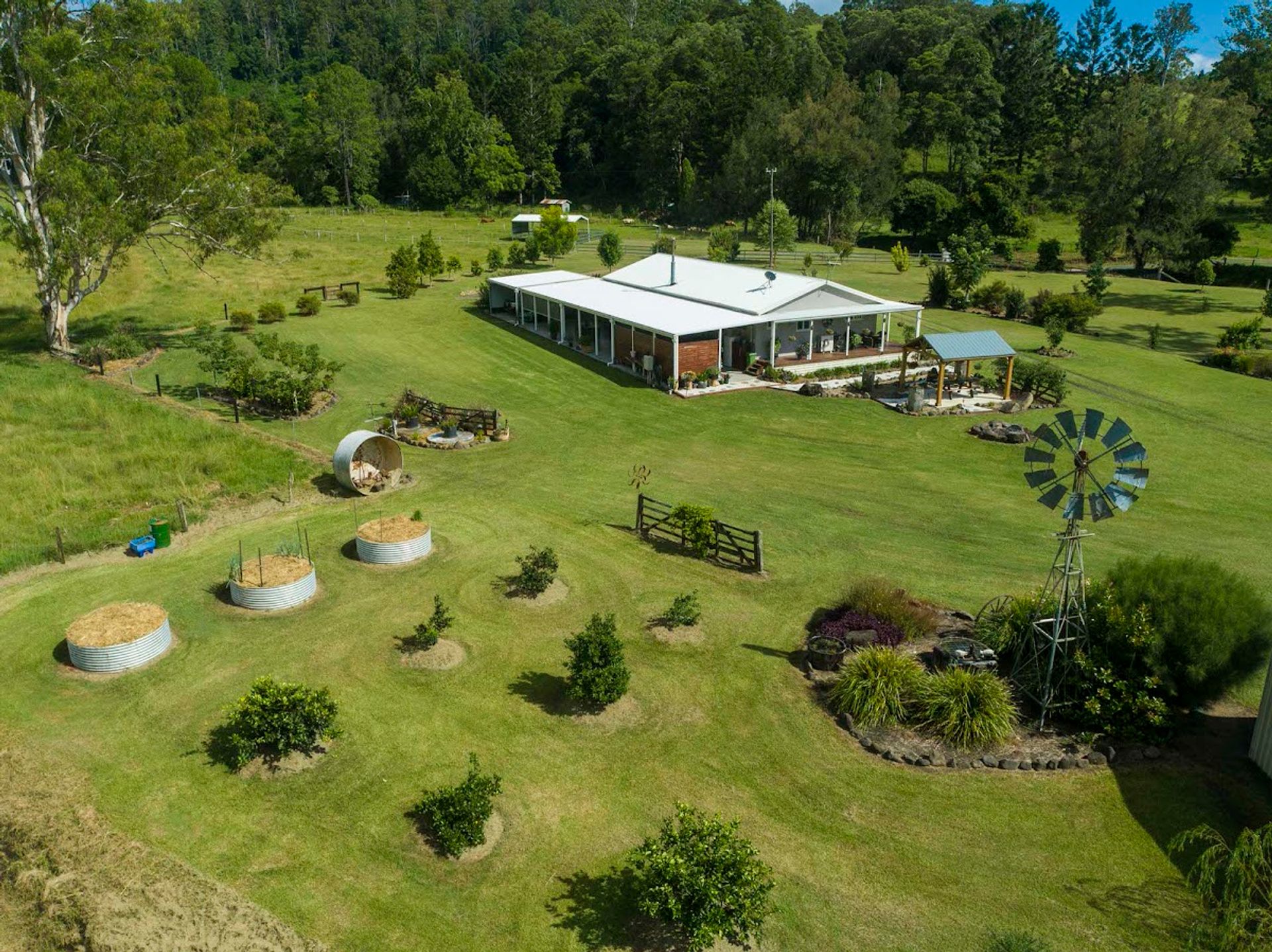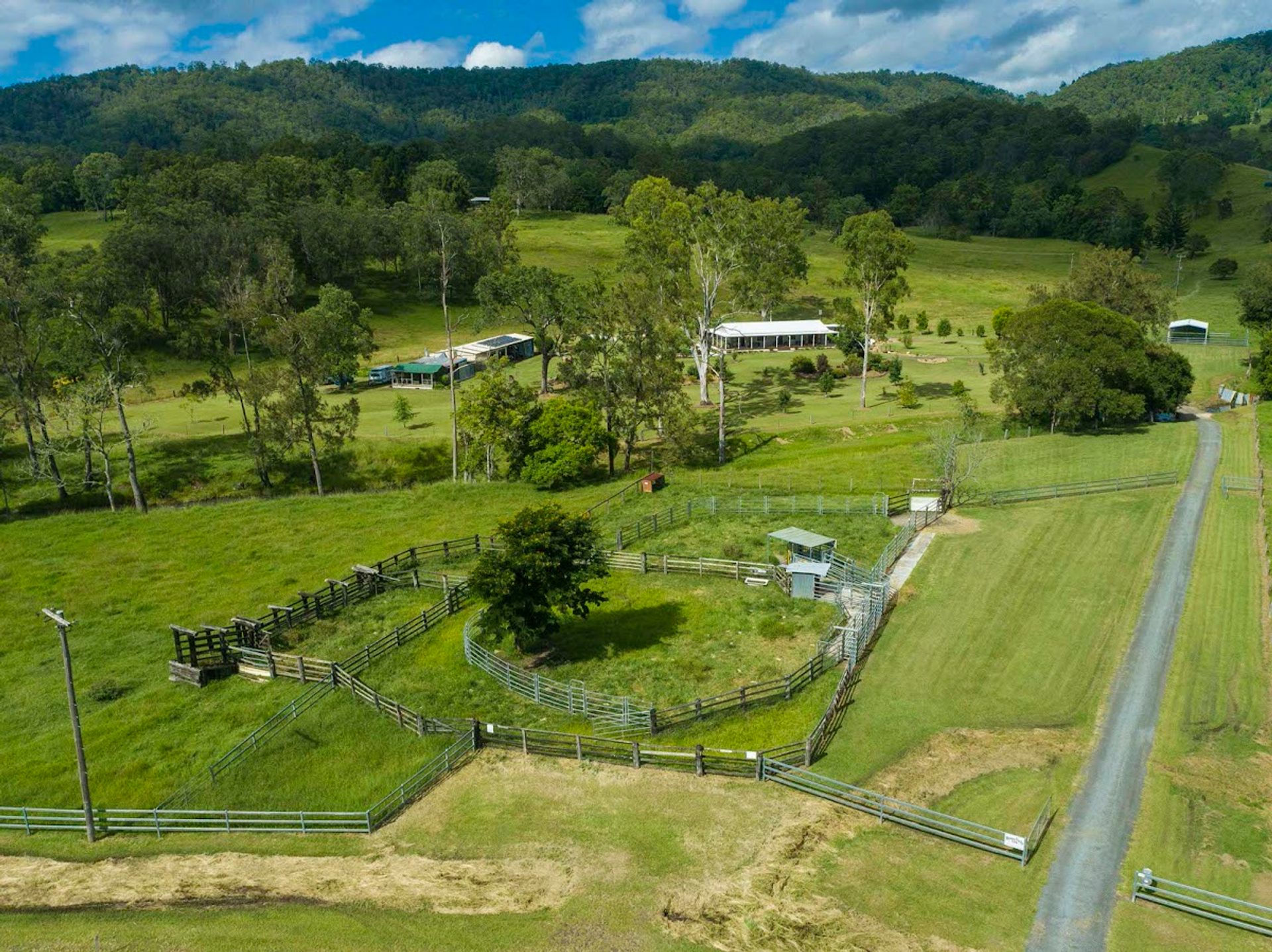 The cattle yards are conveniently located at the entrance to the property for easy access. There are also horse stables established closer to the house.