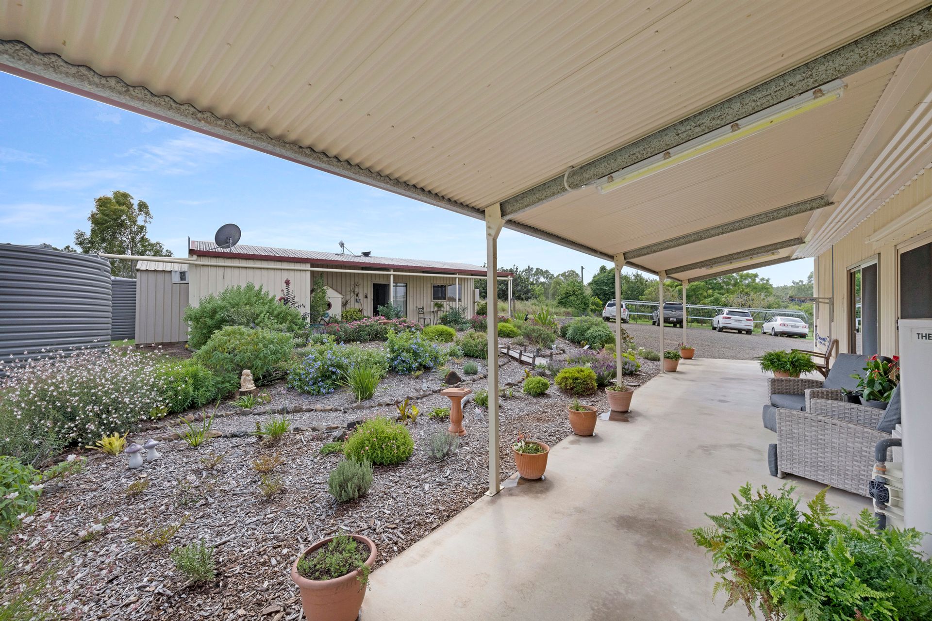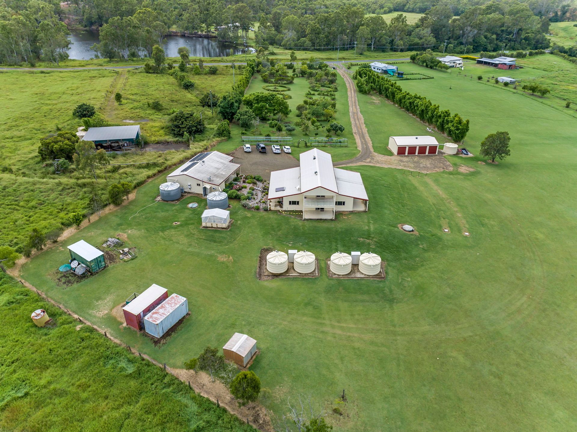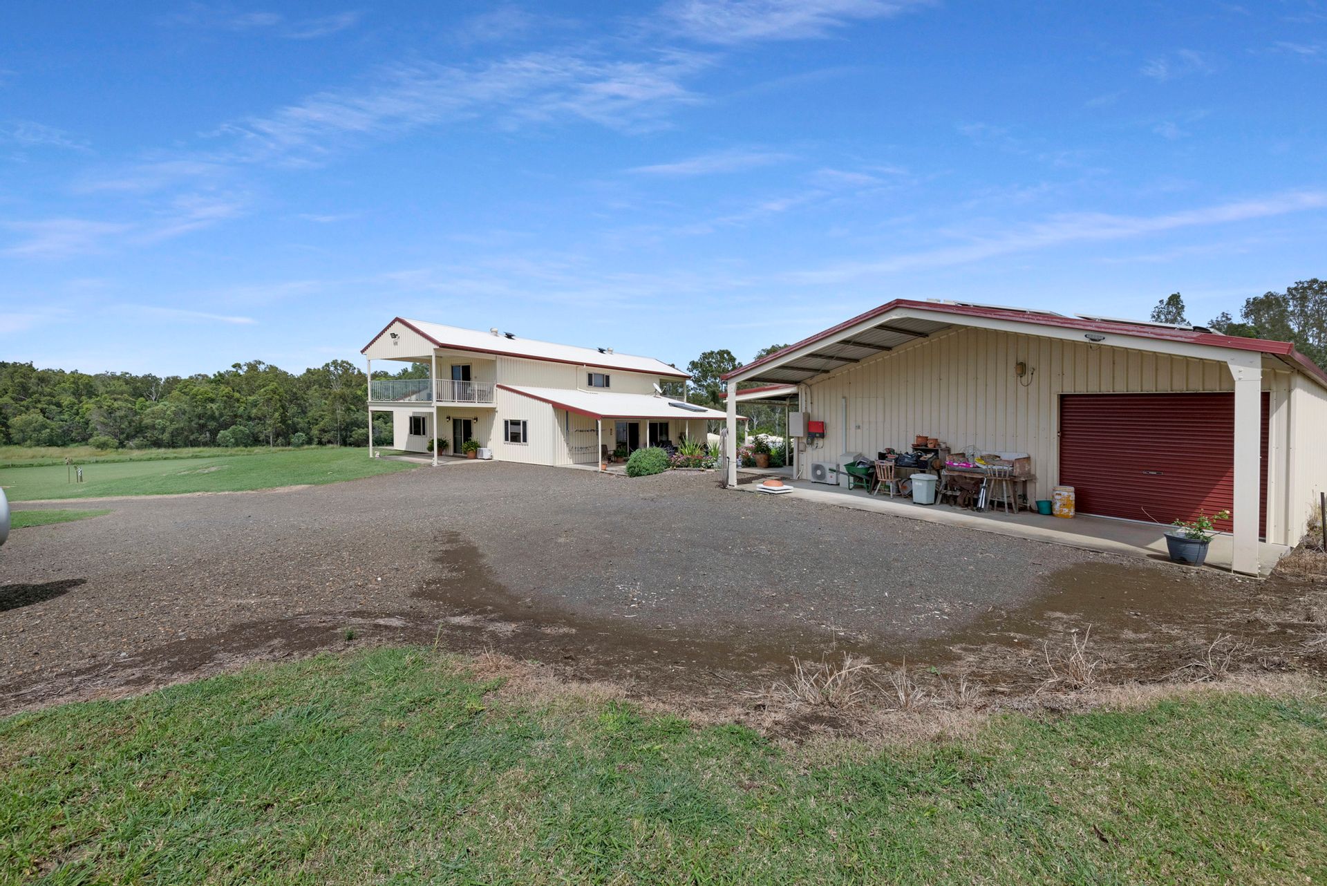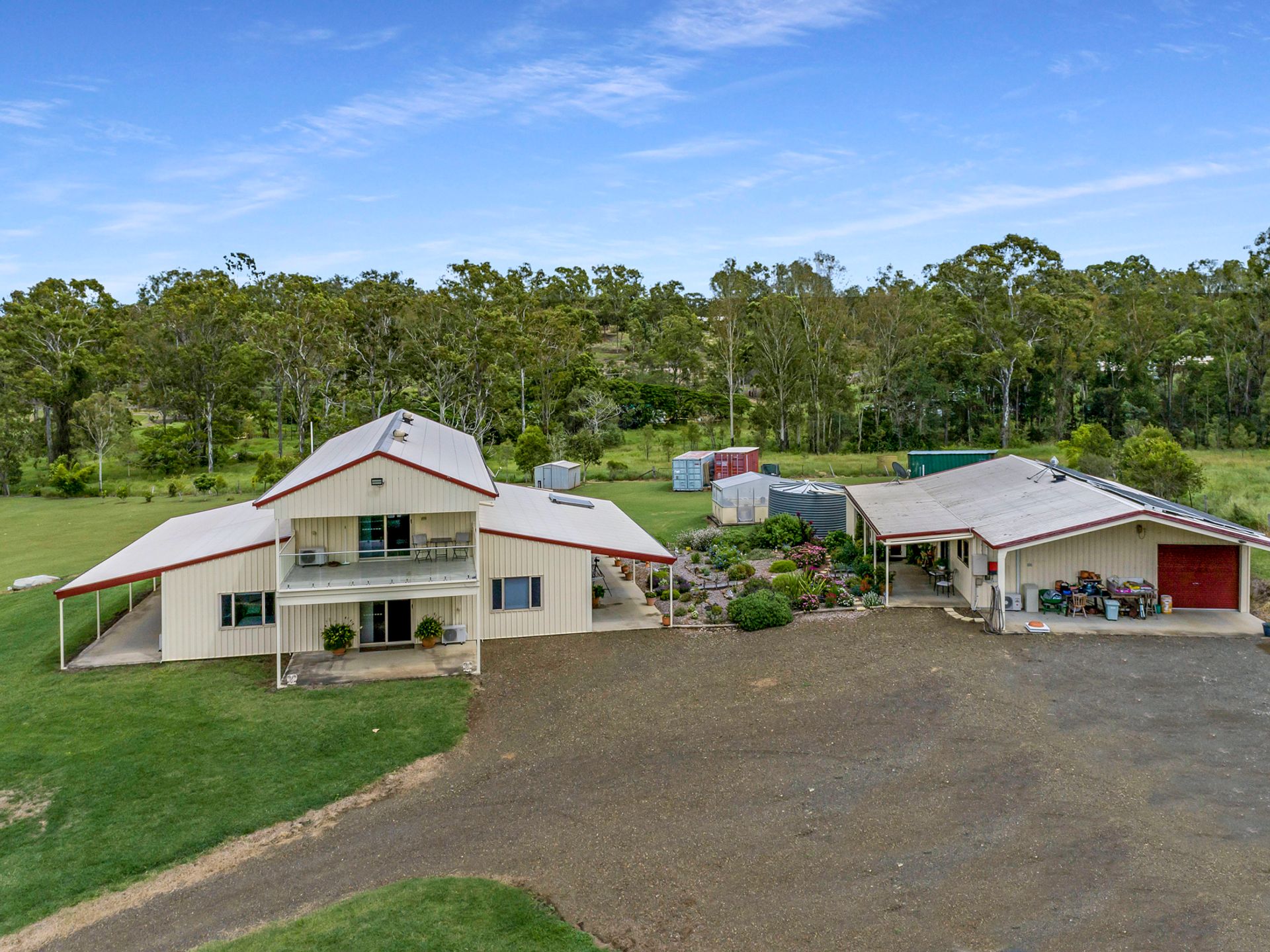 This beautiful two storey Colourbond home has absolutely everything you could possibly want and more! Set on 7.9 acres of manicured lawns with a dam and a 2 megL Sun Water Allocation. This acreage is the perfect size to become self-sufficient on your own land, plant and grow what you like with plenty of water security.