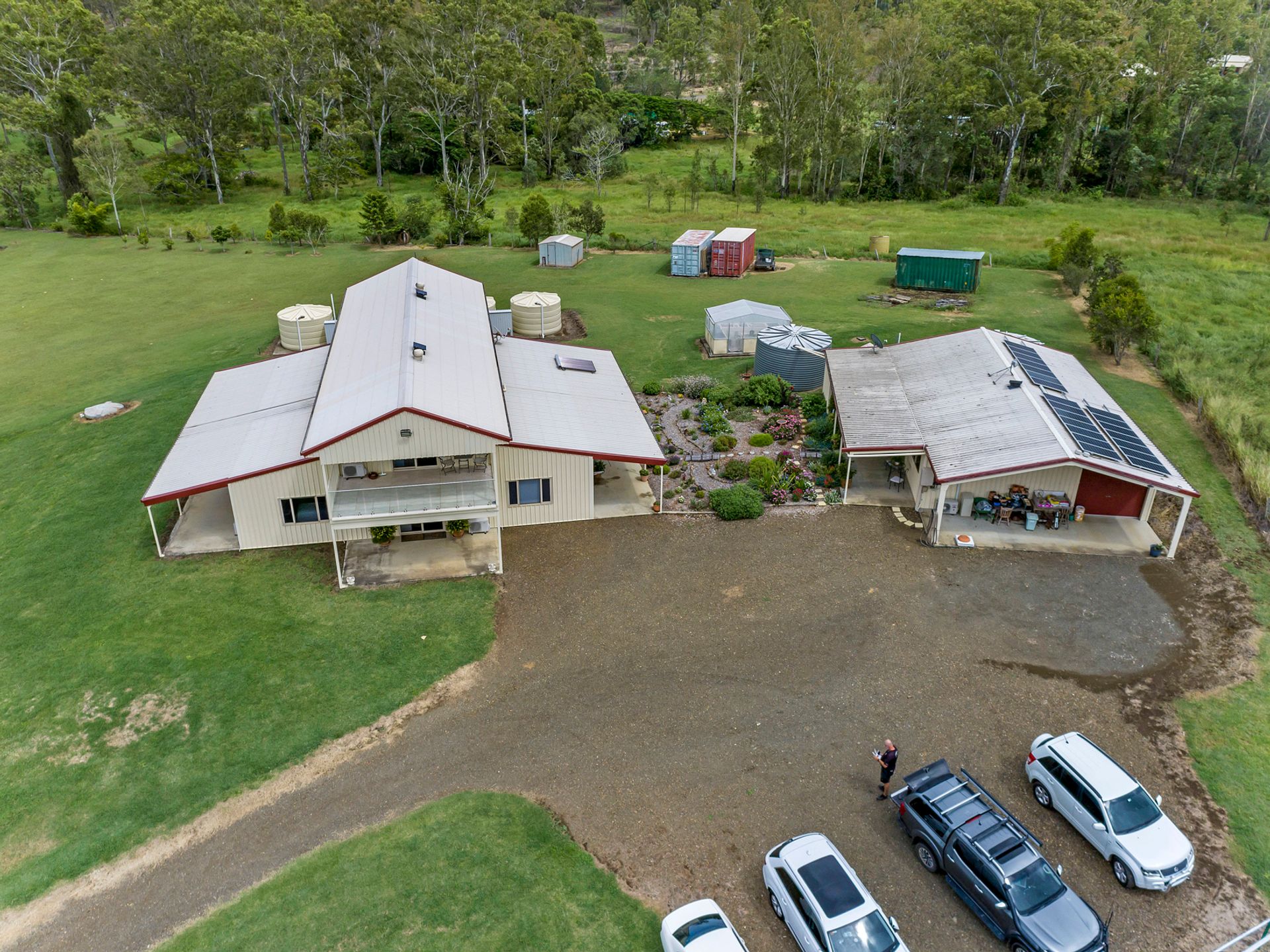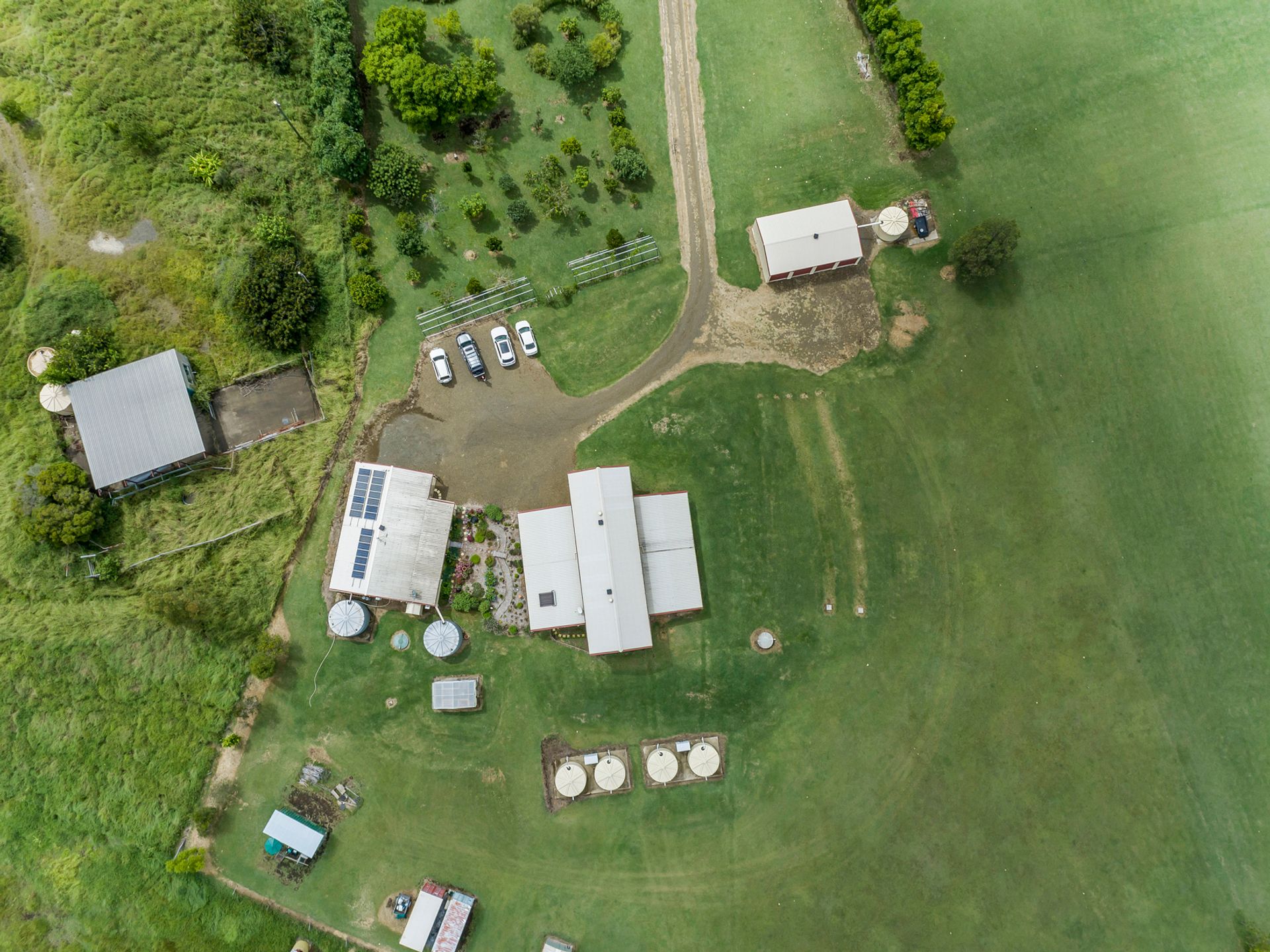 Seven water tanks supply water to the home and the Granny/flat with one tank solely devoted to drinking water with a UV filter.