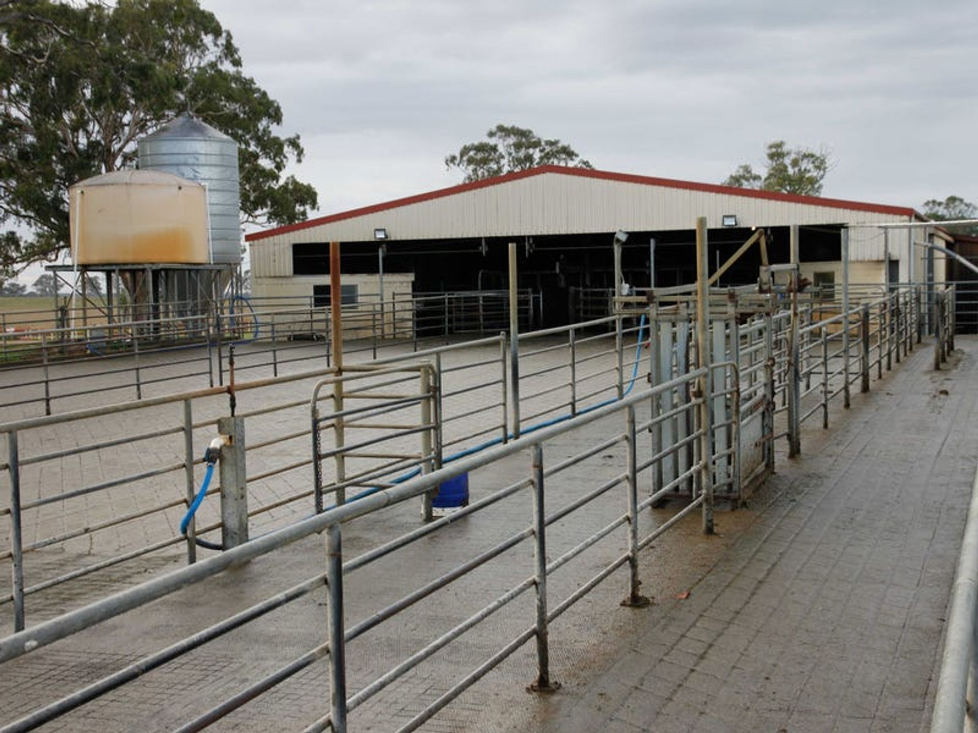 - Calf shed with steel cattle yards