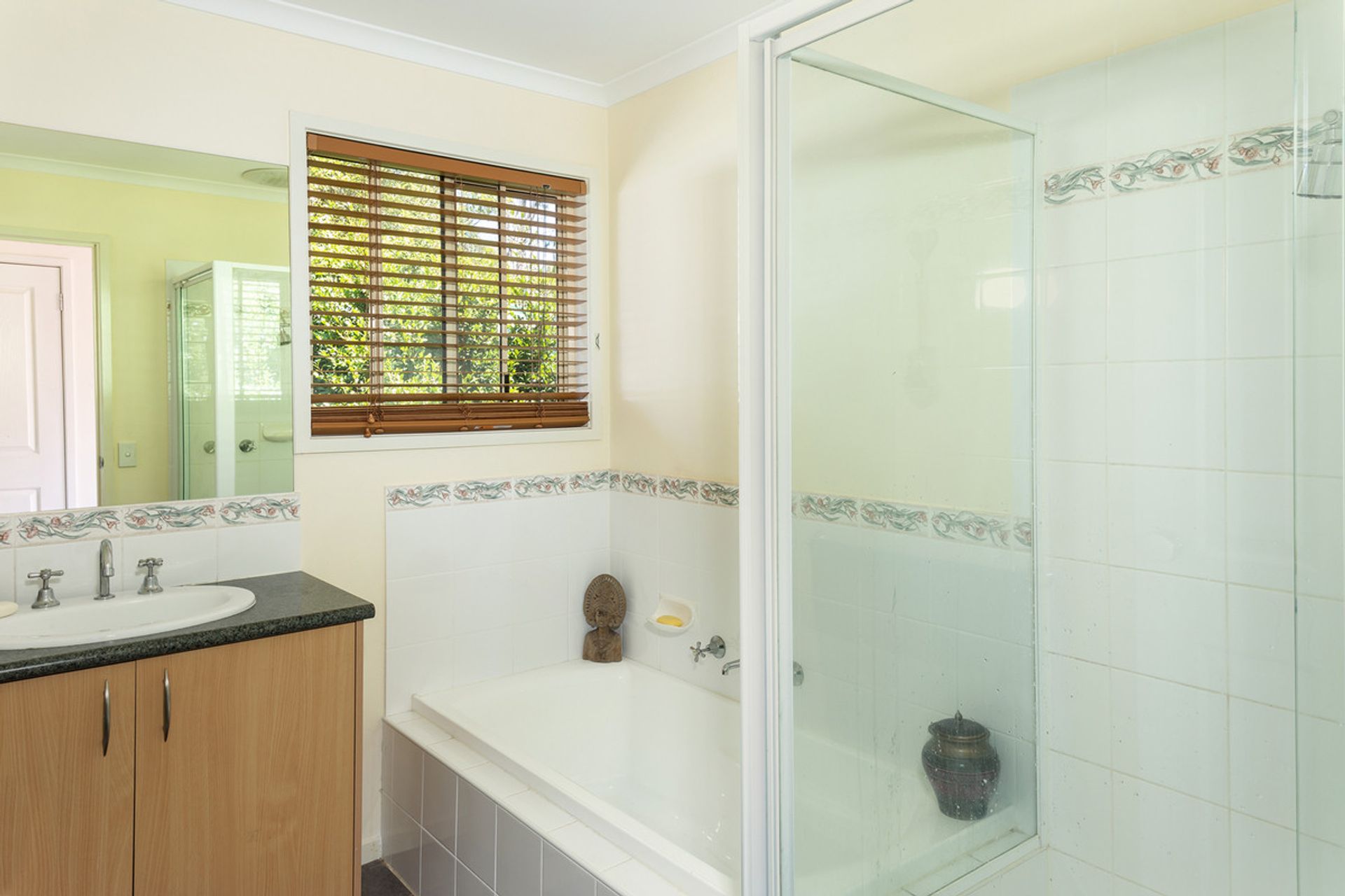 Heading down the hall where linen storage is available, the home affords three light filled bedrooms that are of decent size with carpet and exceptional views (bedrooms one & two offer BIR's) and are serviced by the centrally located bathroom that delivers a bath, shower, single vanity, and separate toilet. The adjoining laundry supplies a broom closet, trough, and direct access outside.