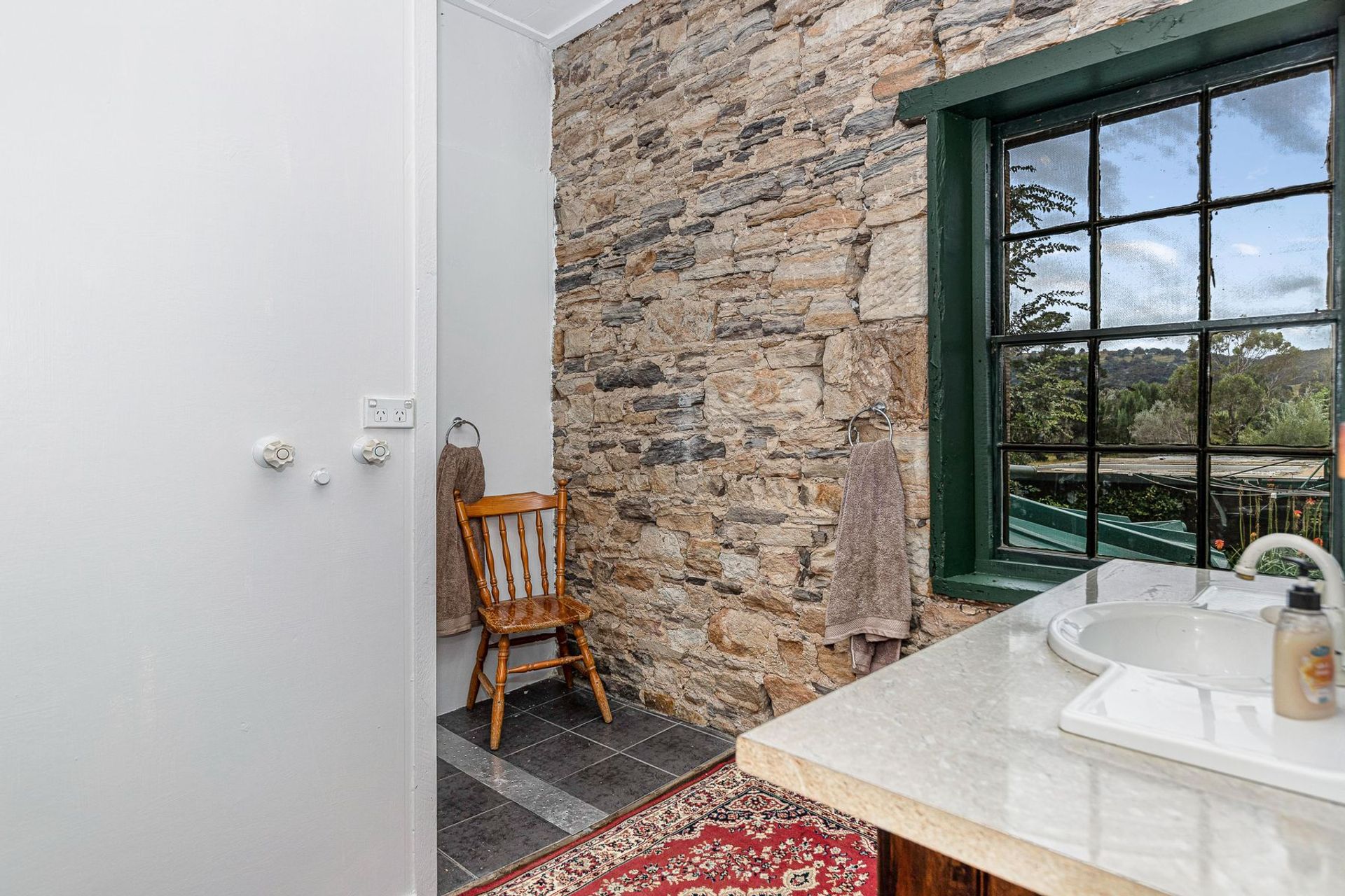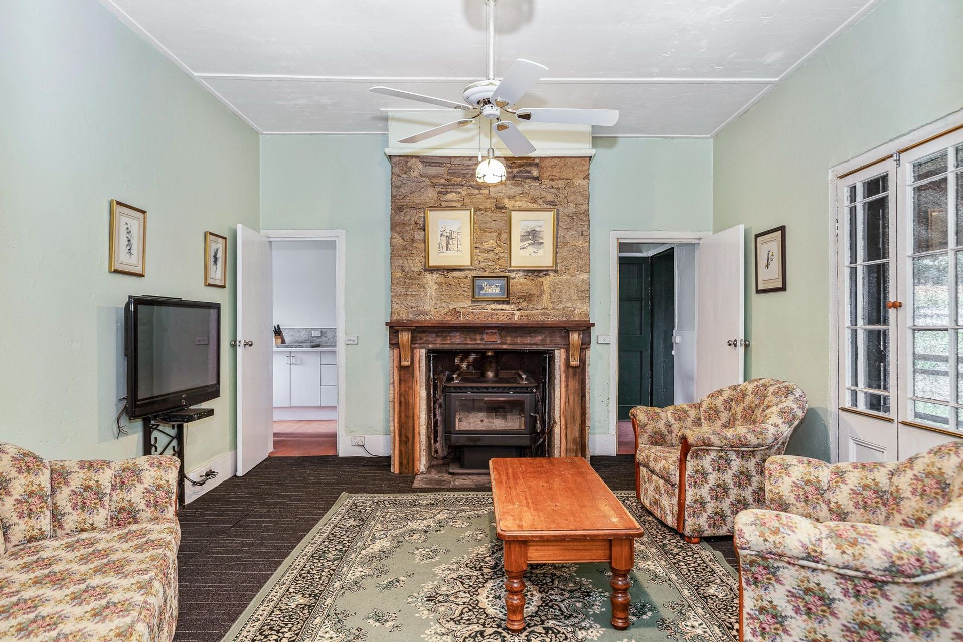 The property comprises 2 bedrooms and smaller storerooms or office space and is packed with period features, such as wide timber floorboards, stone fireplace, original doors and windows and solid sandstone construction.