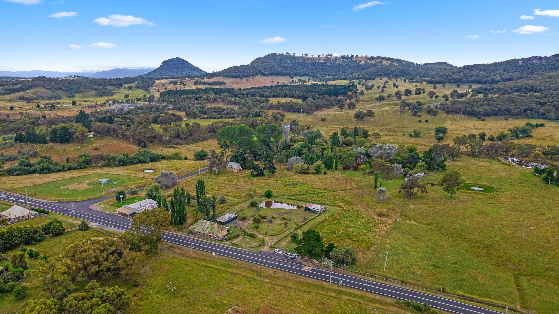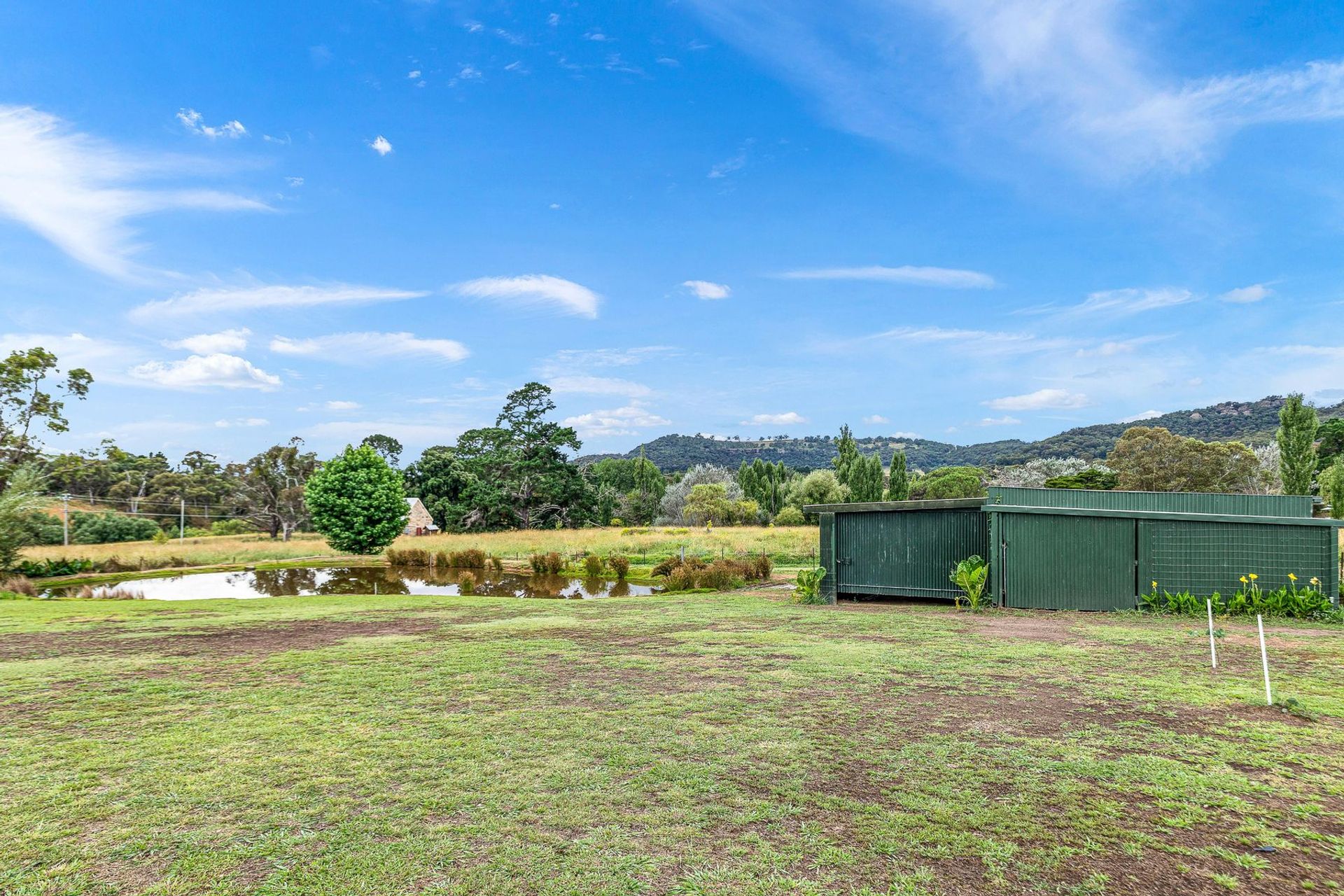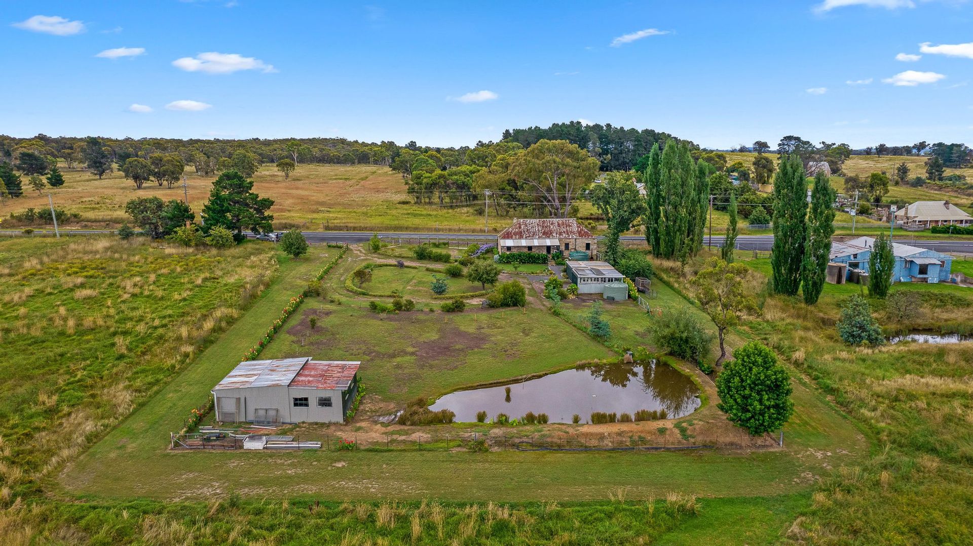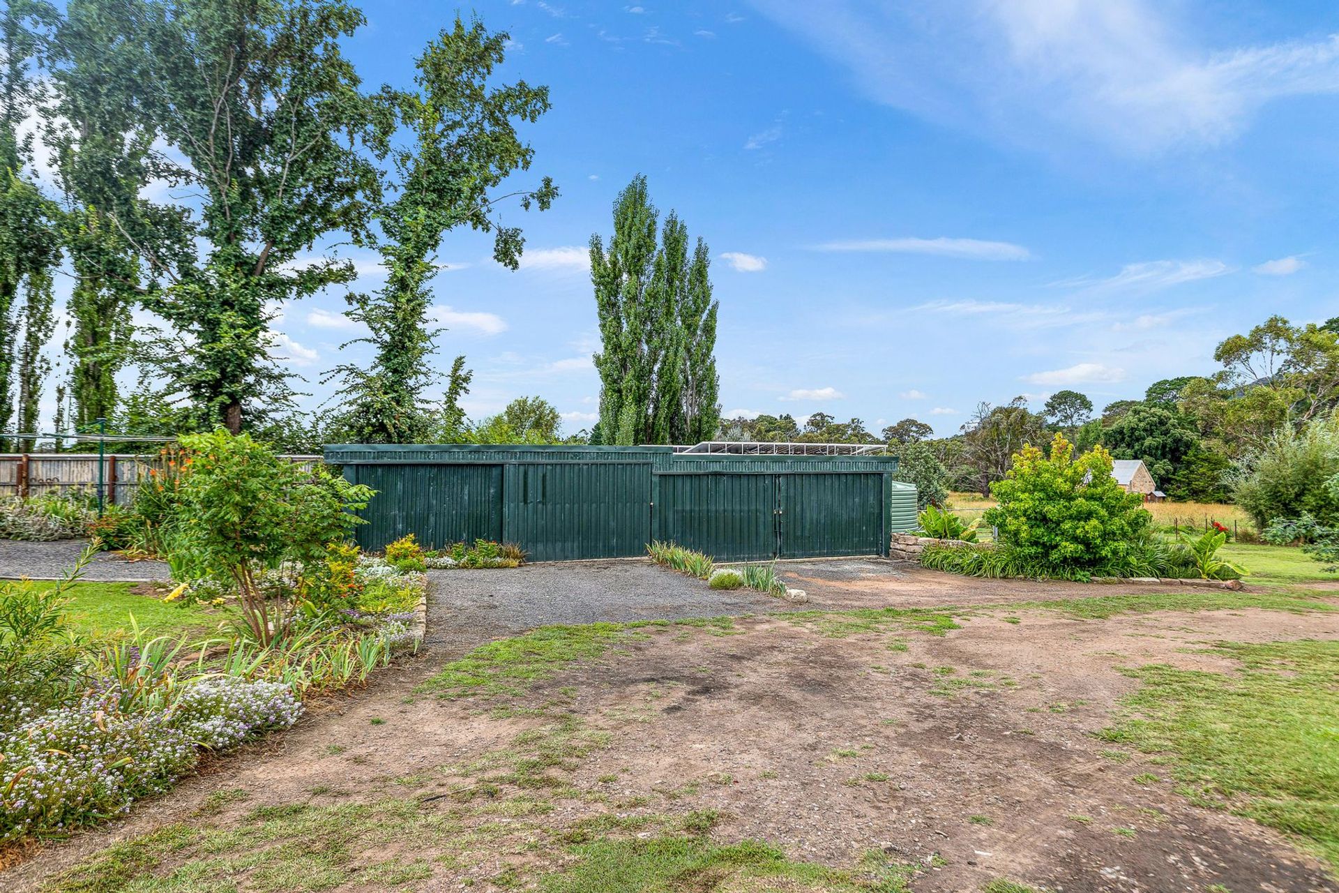 Established gardens with a catchment dam, 3 bay garage and workshop and separate machinery shed.