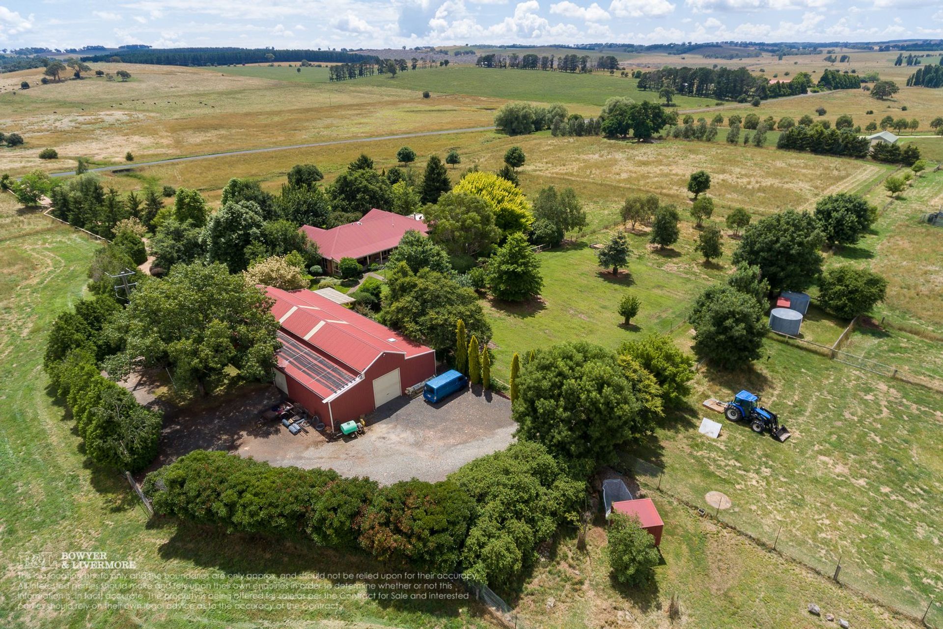 - Other shedding includes a 3 bay machinery shed with gravel floor and a 4 bay hayshed. All sheds have connected rainwater tanks (total 23,000* gallons) for domestic use.