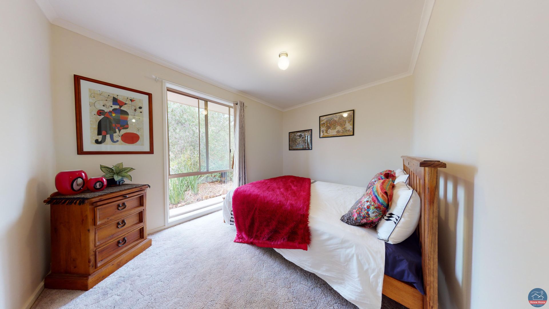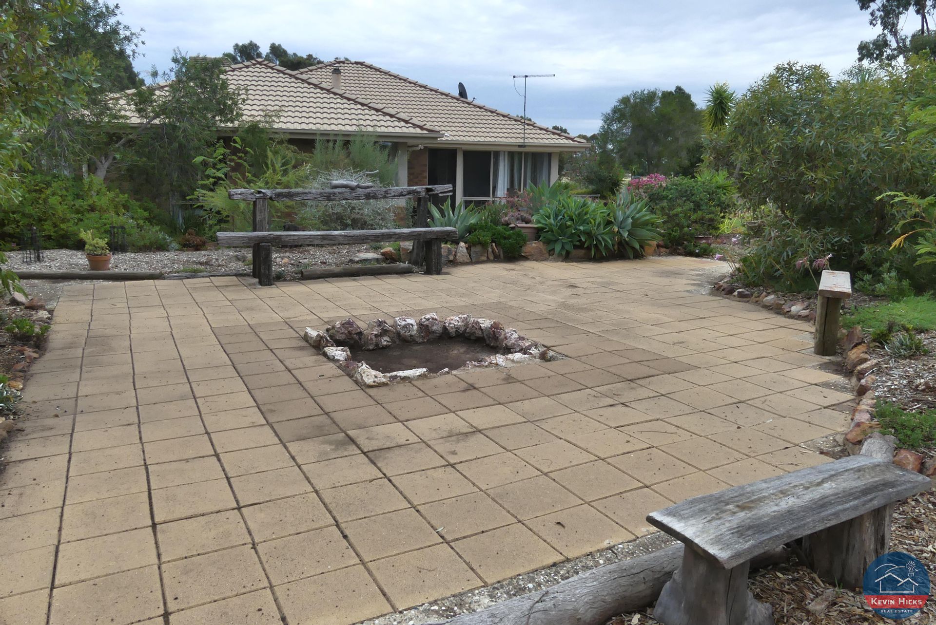Outside is a landscaped garden of lawn and walkways between well established native beds and a paved fire-pit and sitting area.