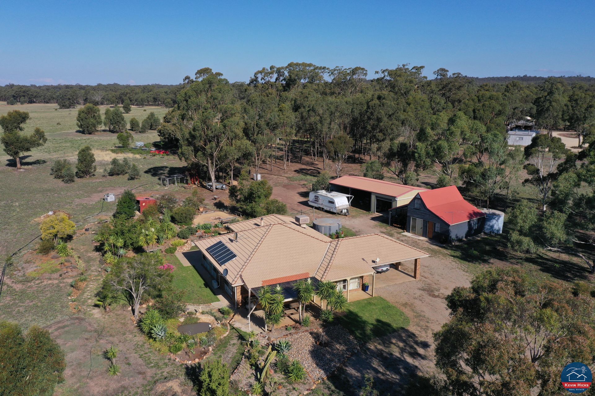 The residence is set high on the block, accessed via the meandering gravel driveway amidst native stands of timber. The aspect provides stunning views of sunsets over the southern Waranga Basin.