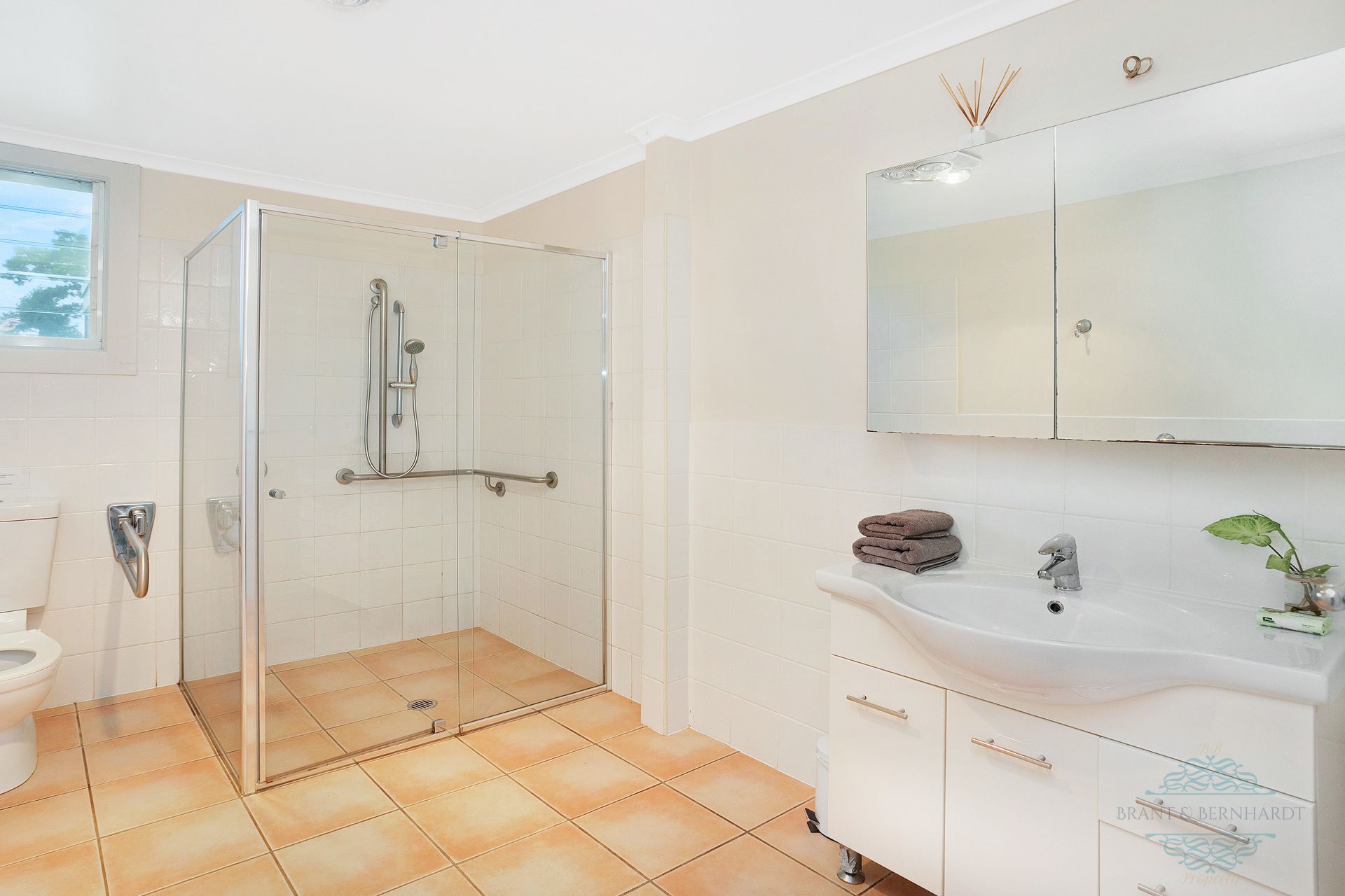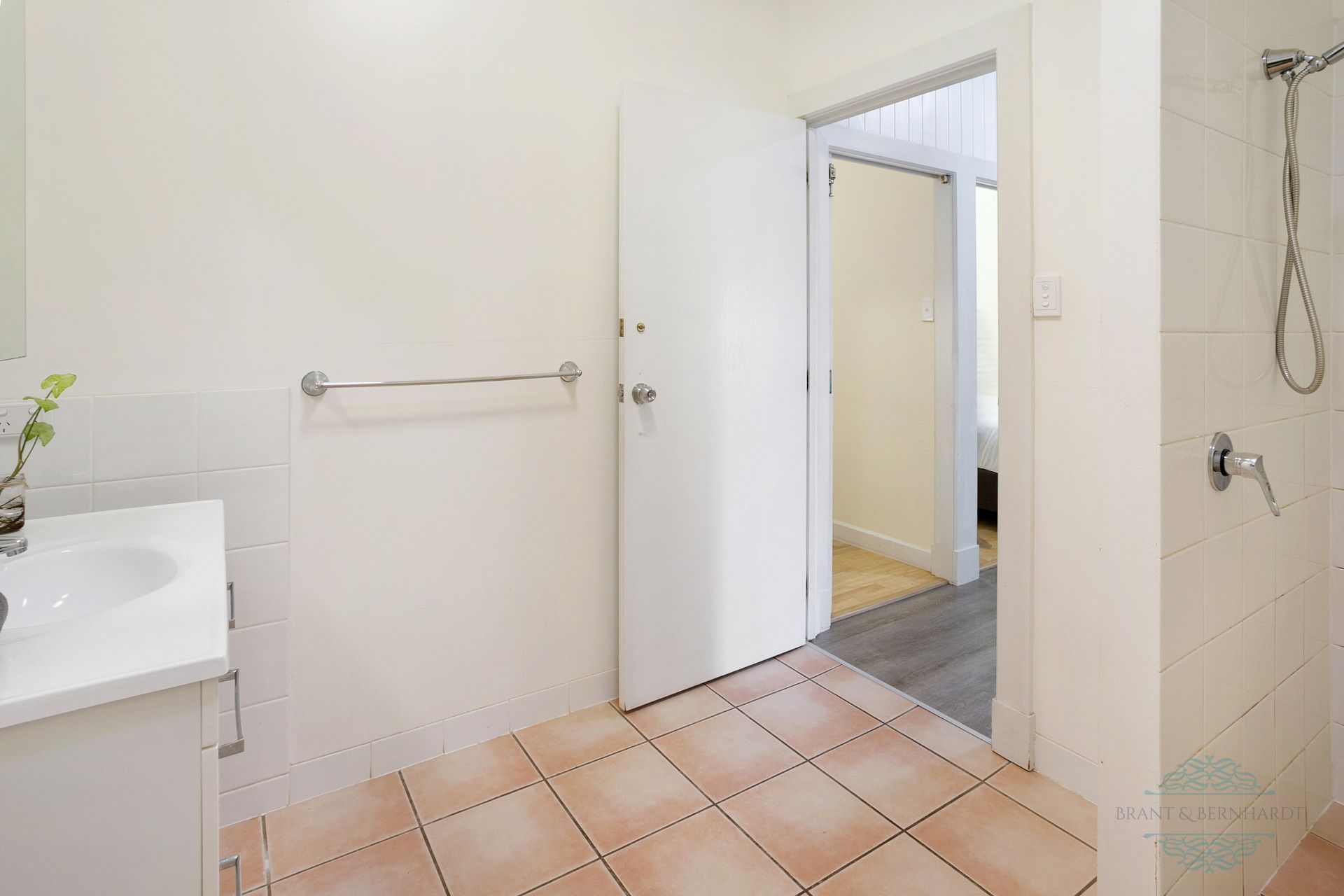 - One bathroom, timber vanity, shower plus linen storage