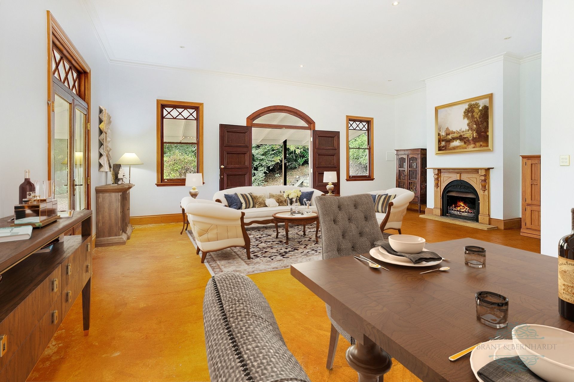 - Soaring 13' ceilings, arched feature windows, 2,400mm high, double timber entry doors, beautiful timber cabinetry, ornate timber fireplace and large hopper windows