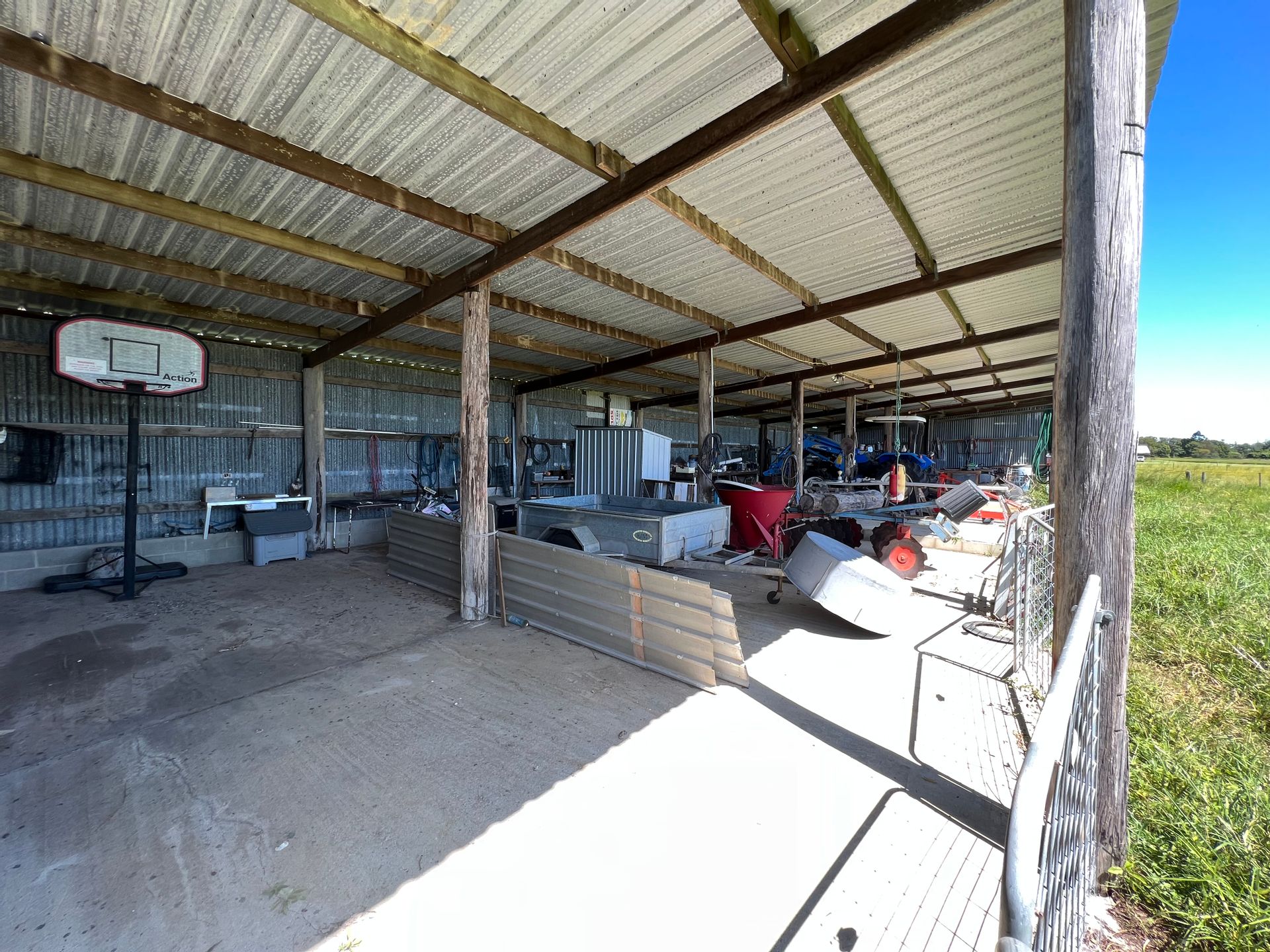 Outside the house yard is where you will find an old Goat dairy which is now used as mower storage and lockable workshop, there is a chook house, cattle yards within this paddock. There is also a huge 7 Bay machinery shed approx. 21m * 9m with concrete floor and power.