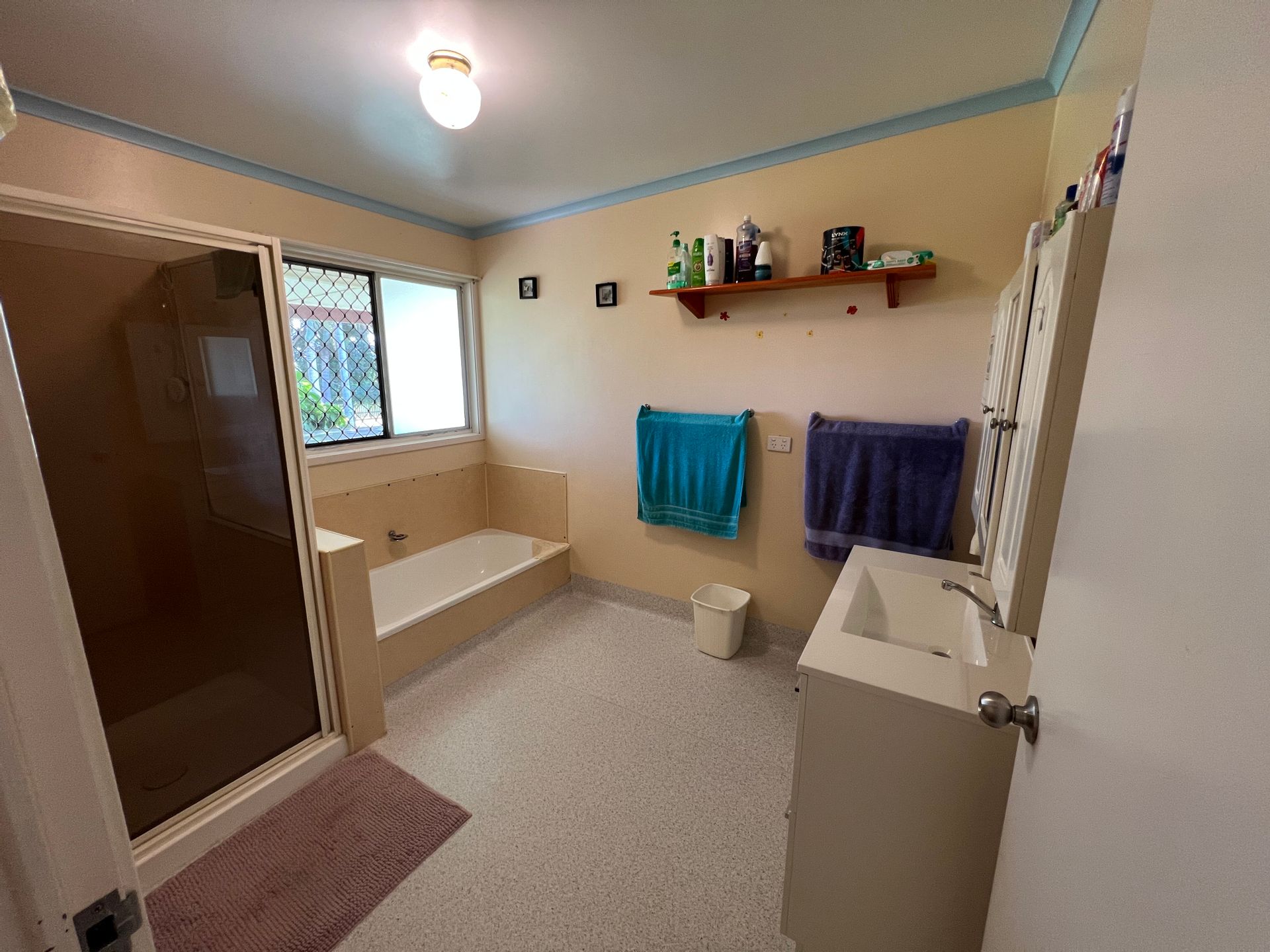 The oversized family bathroom with new vinyl flooring and separate toilet is well positioned between the bedrooms.
