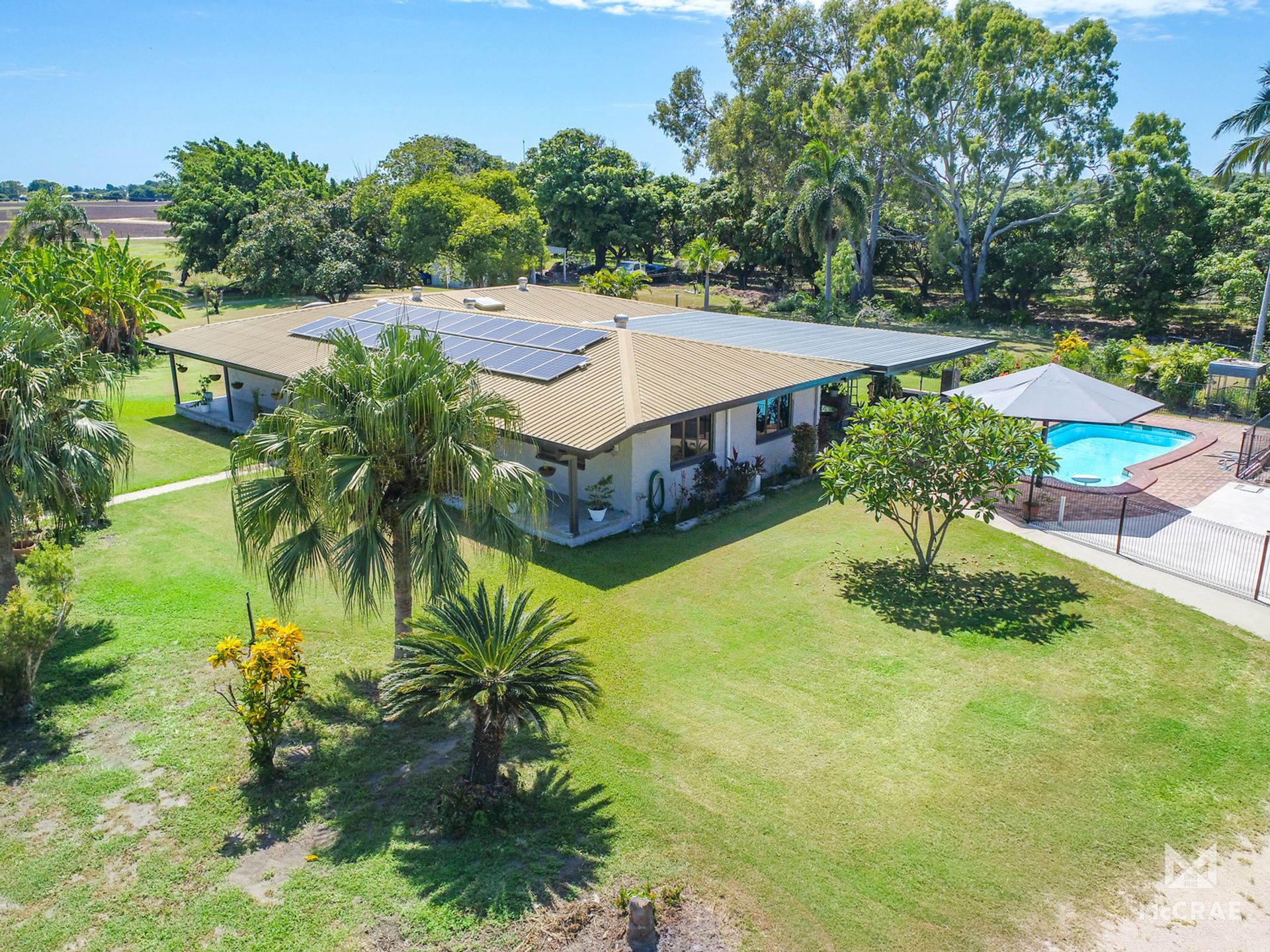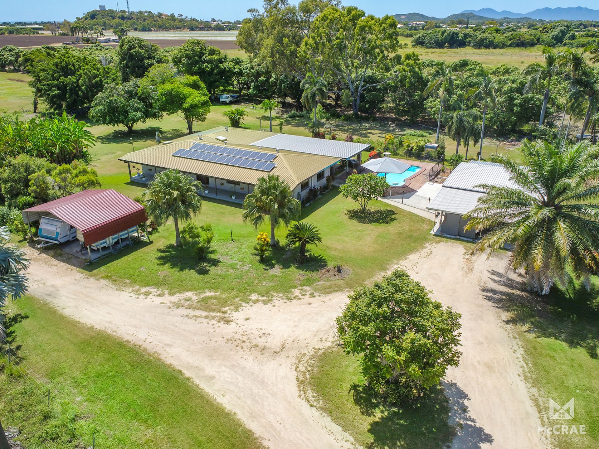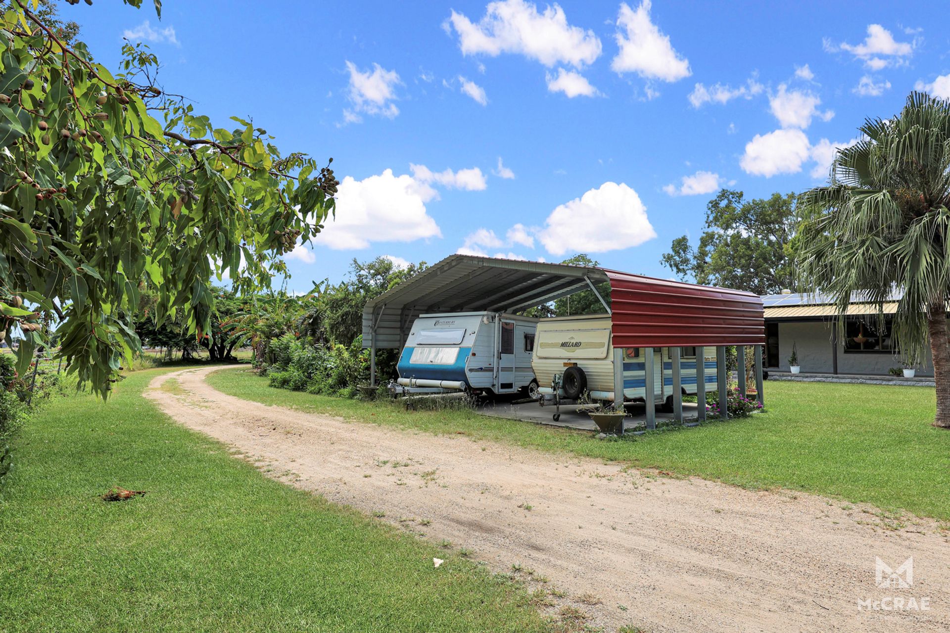 A fully established mango orchard features on this property and offers loads of privacy from the road. A great hobby crop for the kids leading into Christmas. The home sits at the end of a long private driveway that then wraps around to the huge shed and workshop area at the very back of the block. A bore services the property and there is a 4.5 meg water allocation that comes with the property. This workshop has ample space to park caravans and allow room for your farm machinery. Just by the residence there is a two bay carport structure for your daily drives to be parked under cover as well as two more spaces in front of the granny flat.