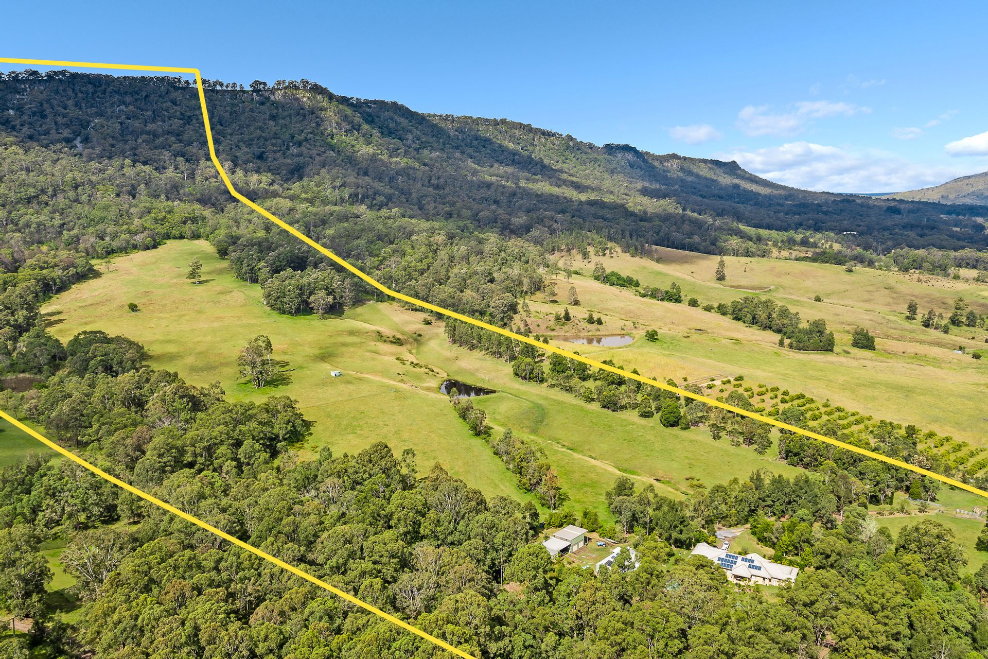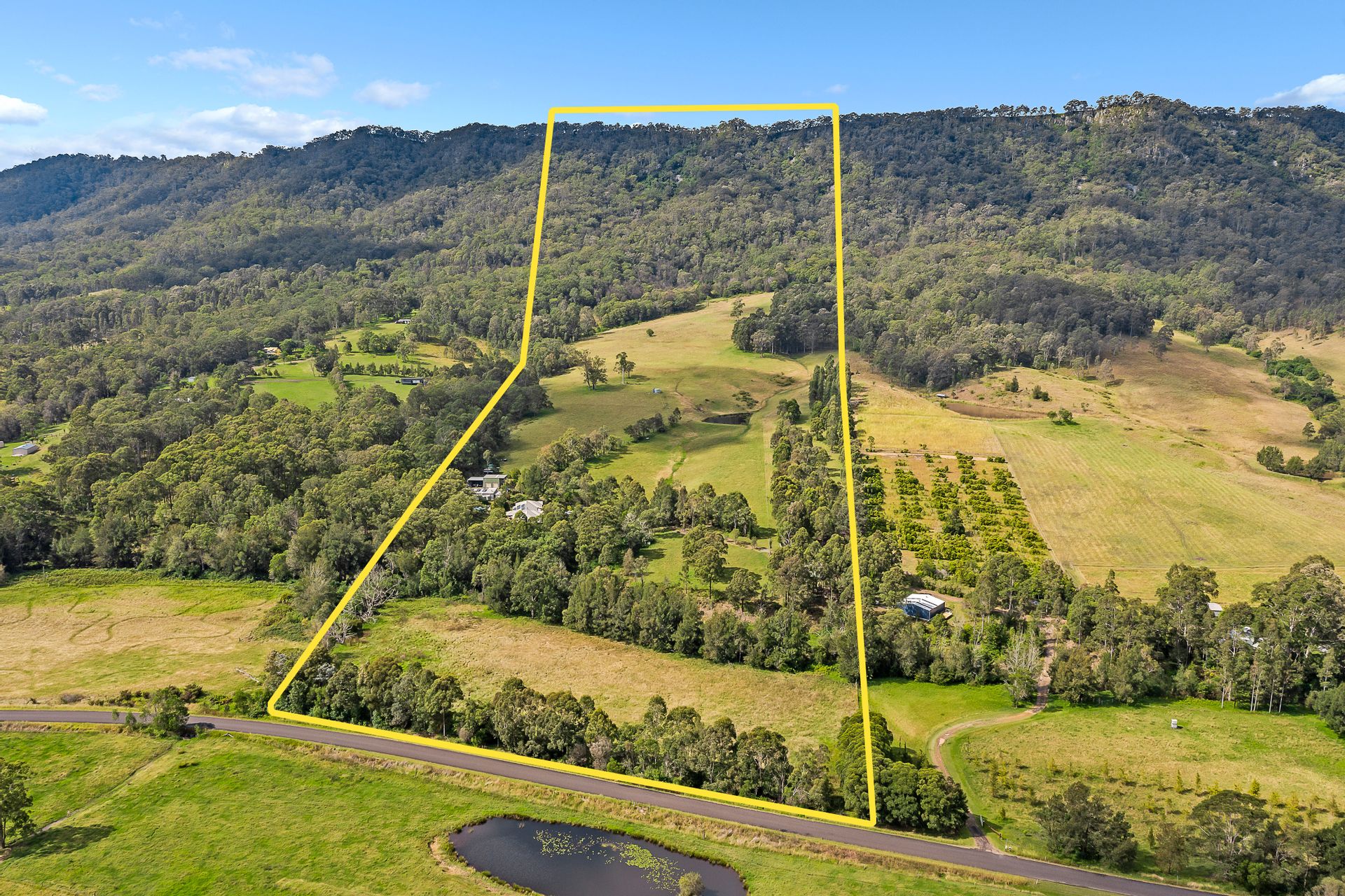 Come and take a look at the steep scarps of Lambs Mountain and Moonabung as they enclose this hidden valley which takes on a copper glow at sunset, below are gumtrees and gullies, rolling foothills, peaceful paddocks and the meandering Lambs Valley Creek makes a dramatic backdrop.