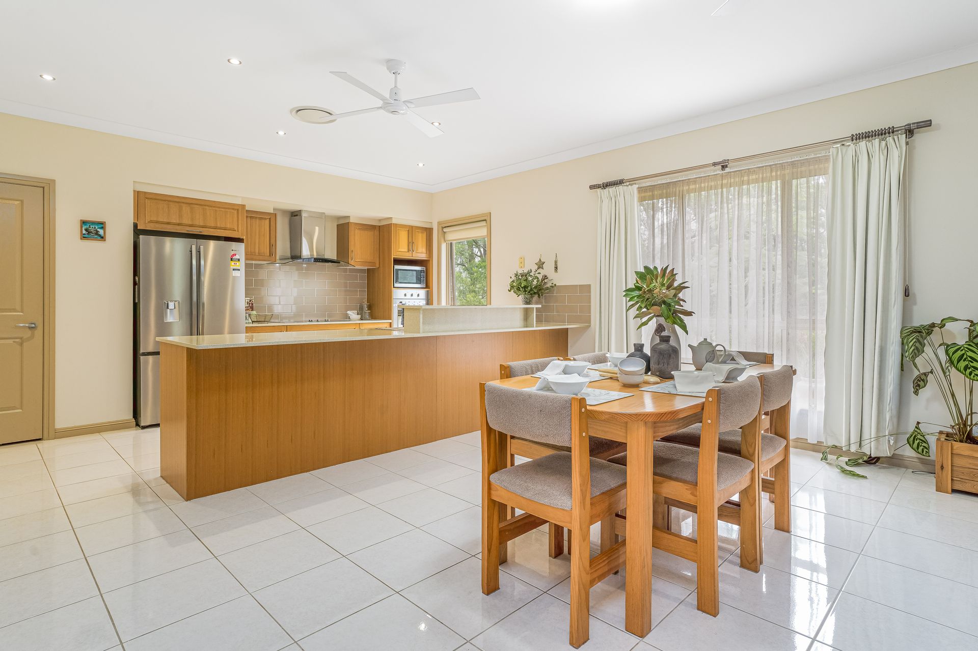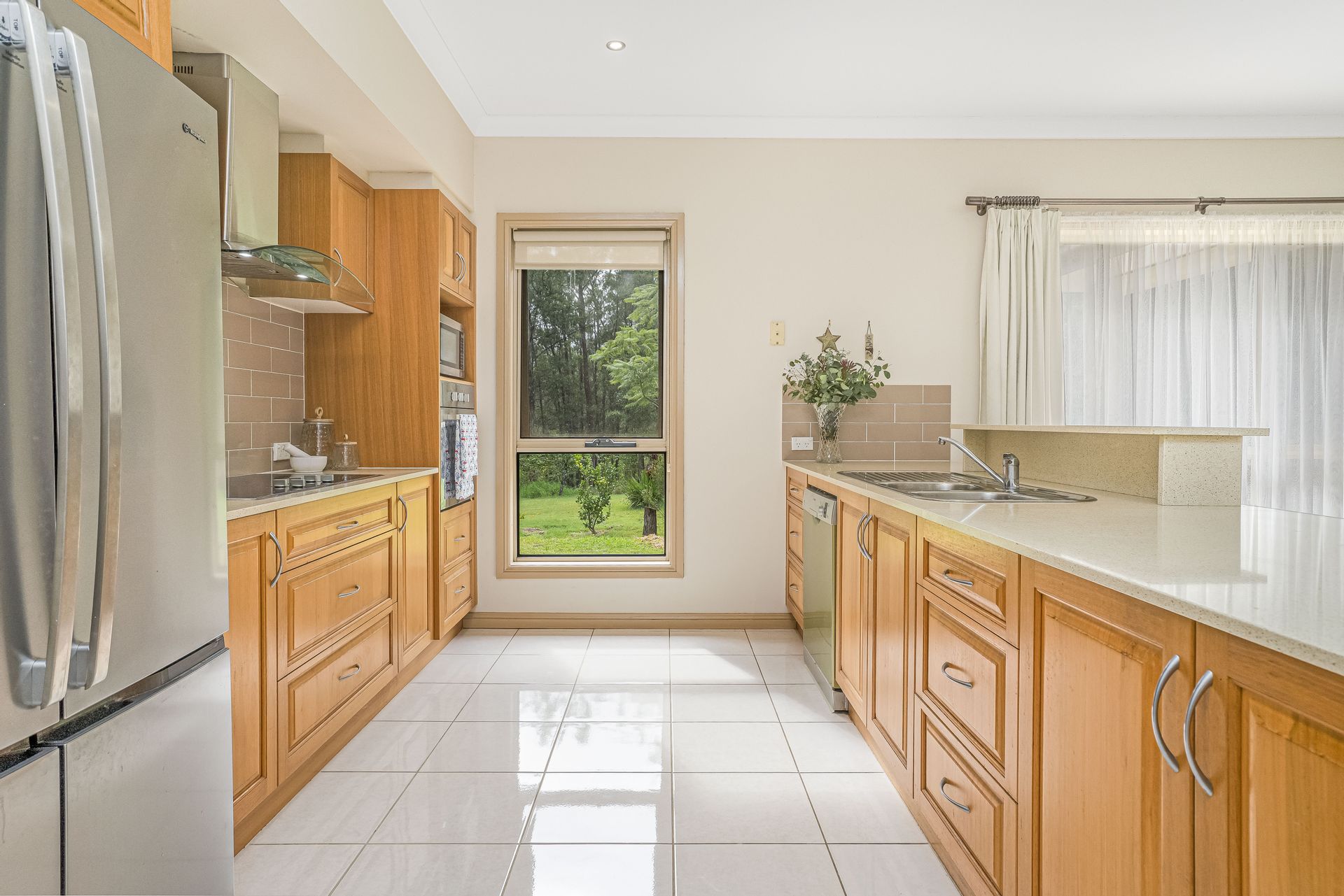 The large country timber and Caesarstone kitchen has a walk-in pantry, dishwasher and electric cooking accommodate for the most discerning cook.