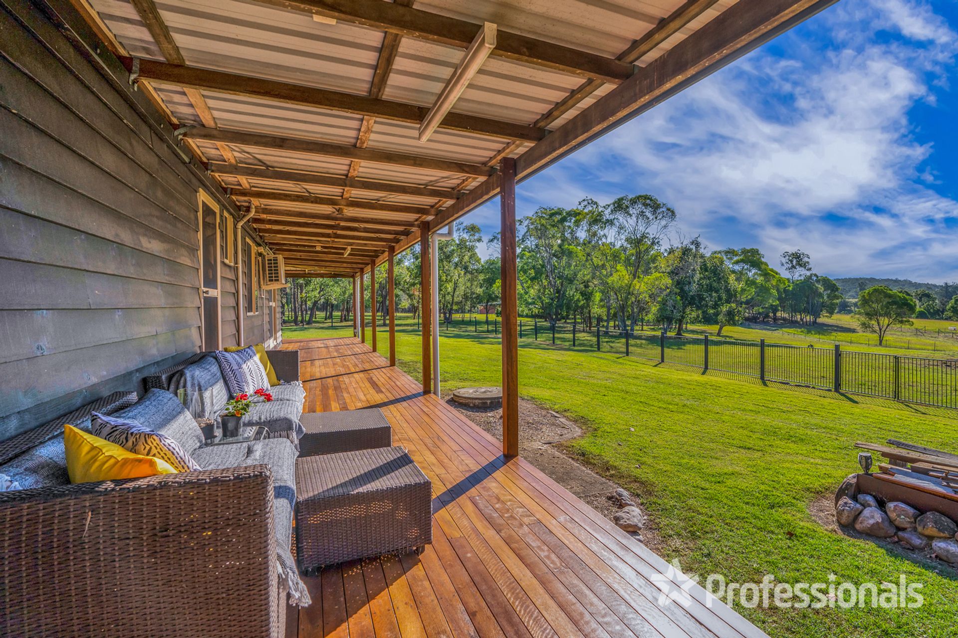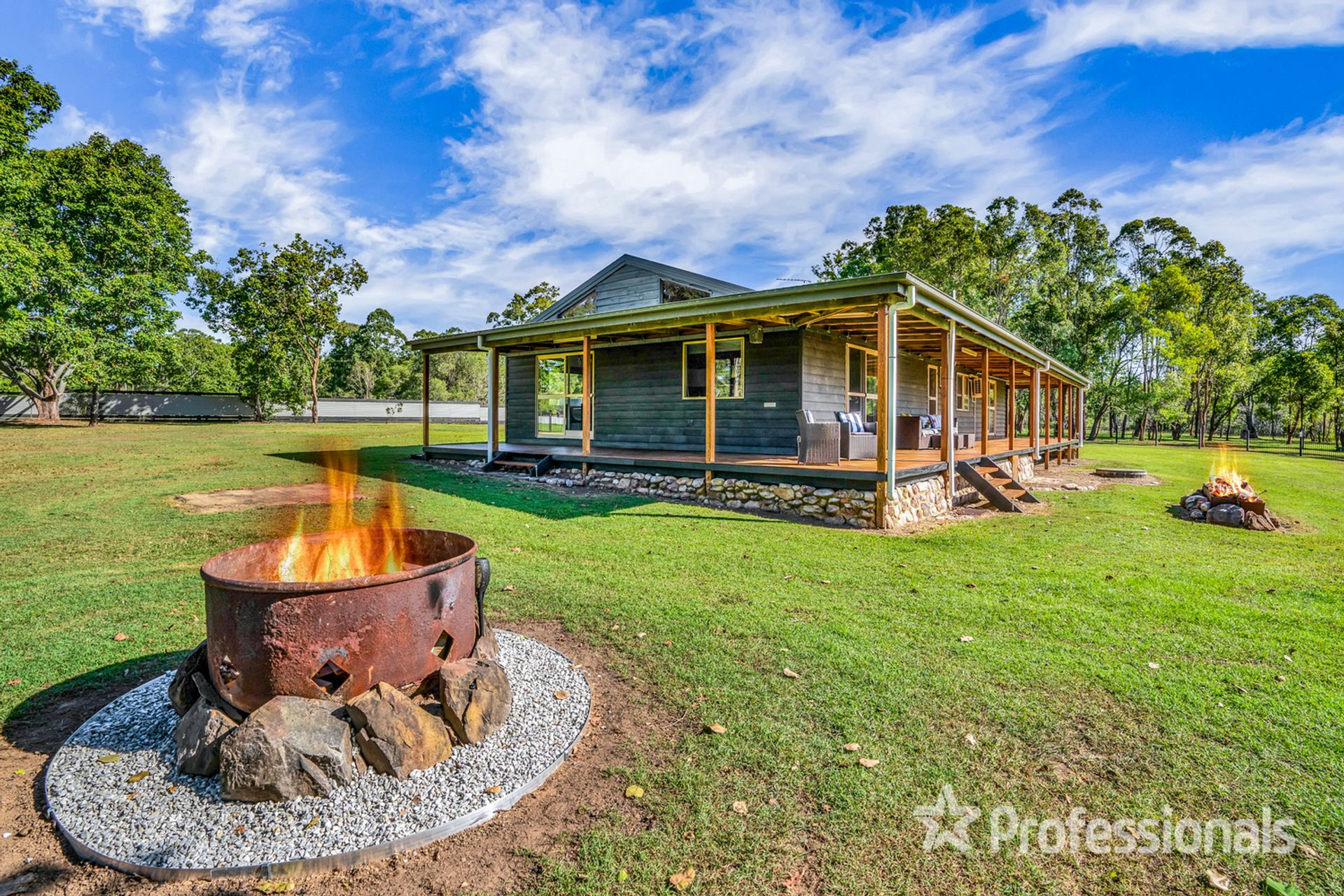 With verandahs on three sides, you can look forward to stargazing, watch the flames dancing from one of two sizeable fire pits that feature in the expansive house yard, or plan for picturesque entertaining in the easy care gardens.