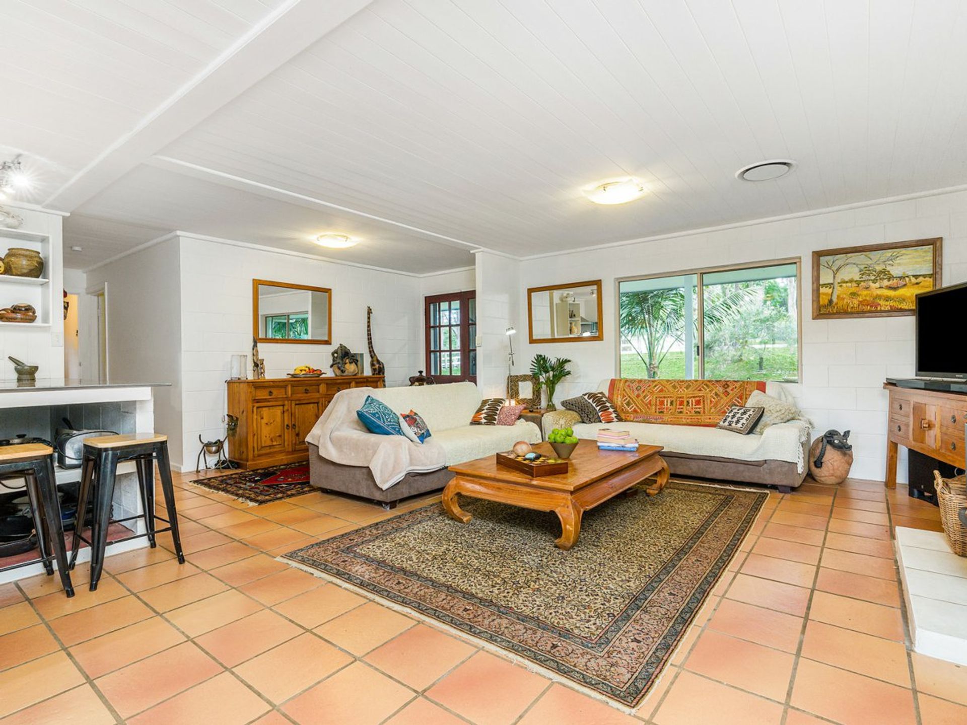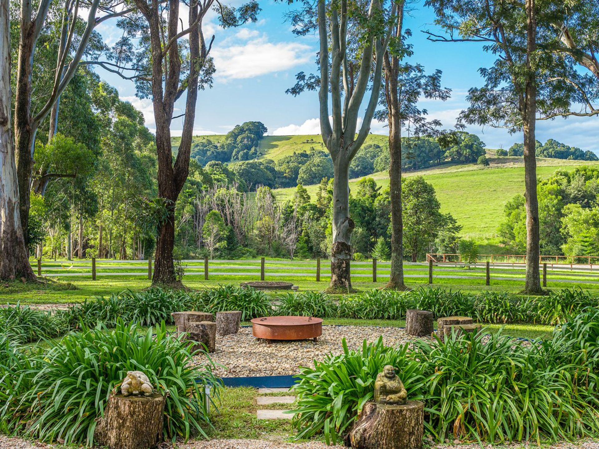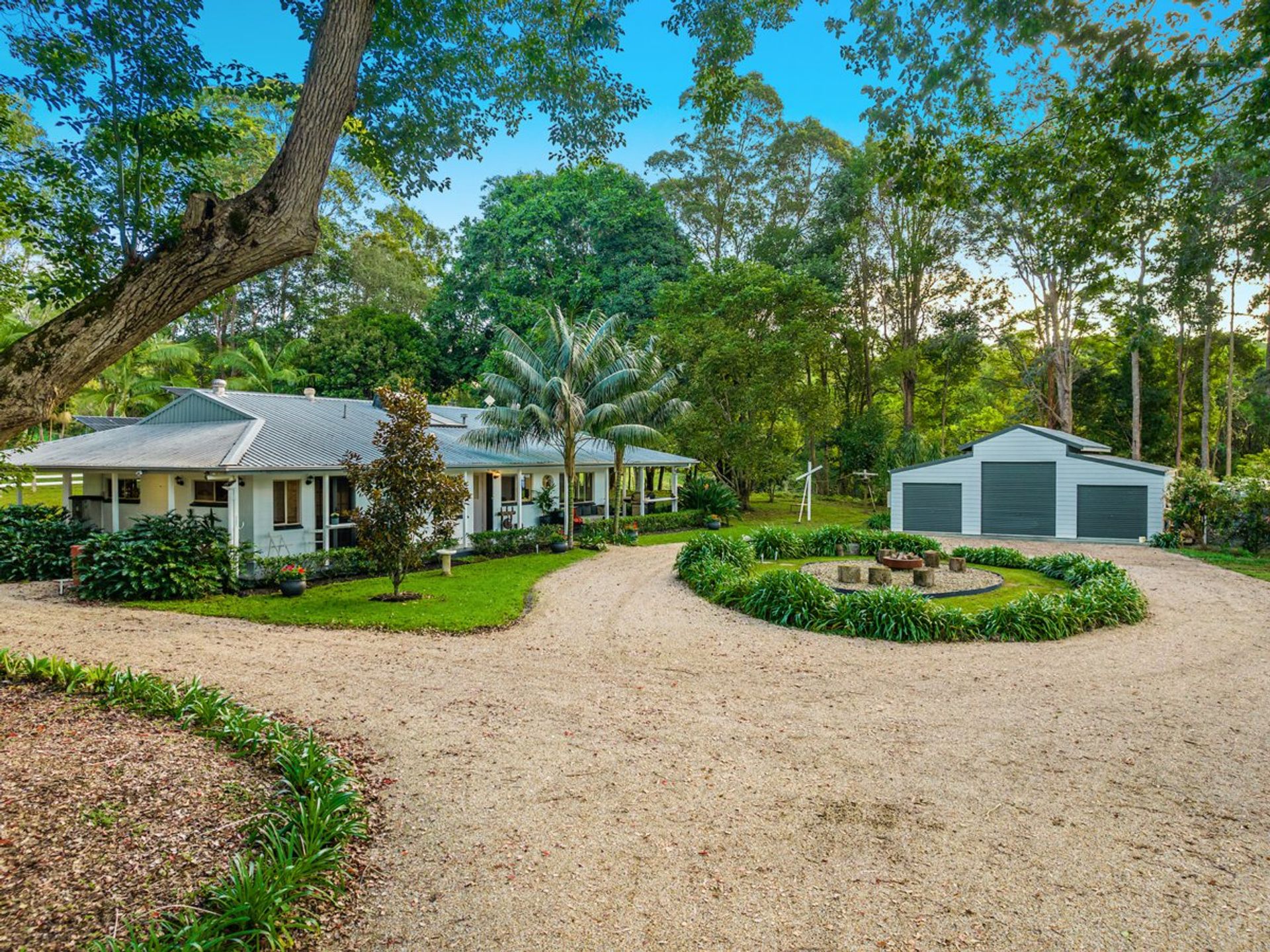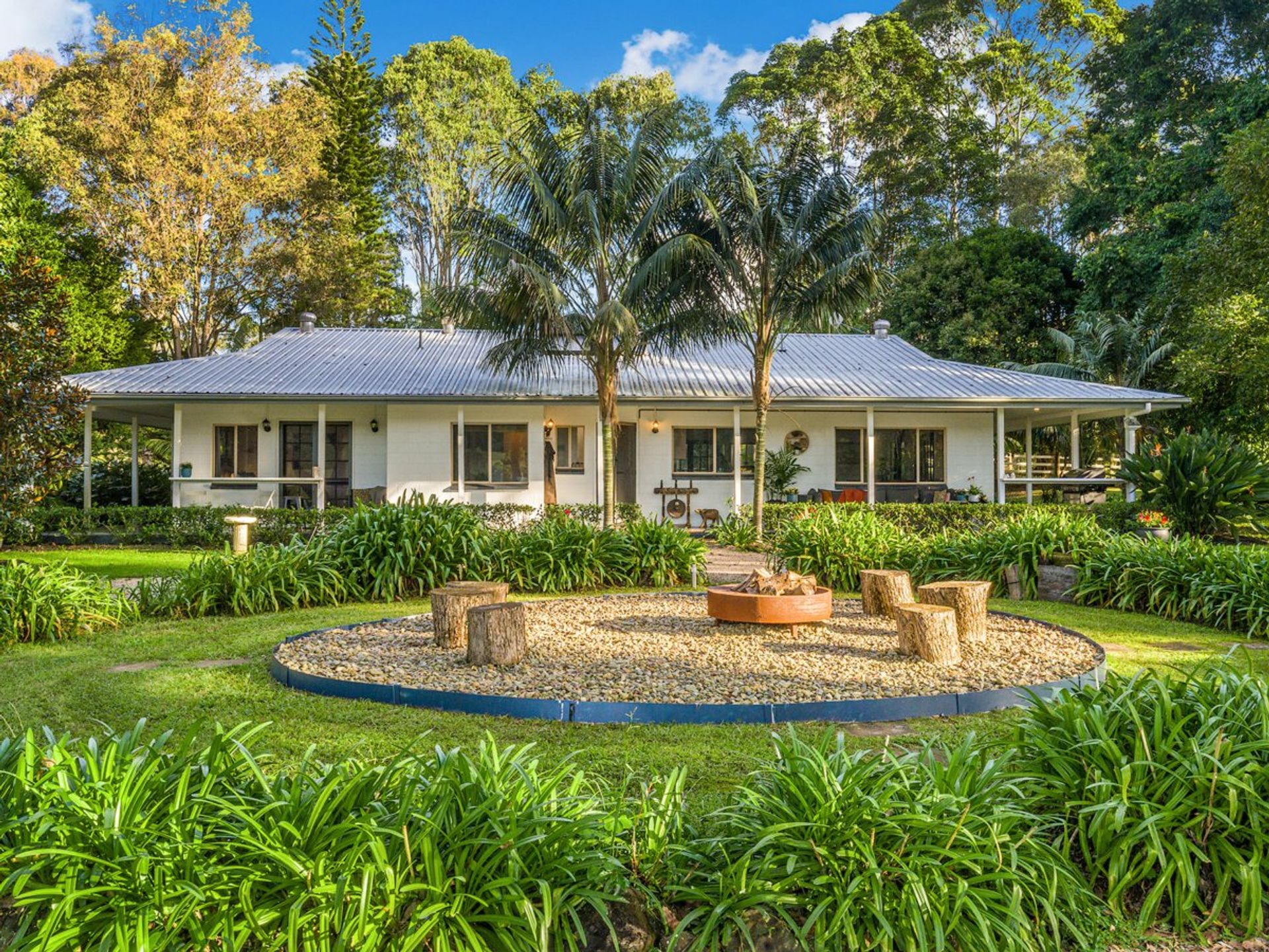 Established trees frame the tropical gardens which surround the home offering tranquil, shady and sunny spots- a place for every time and occasion. There is a large chicken run, a firepit, manicured lawns and a circular driveway framed by neat hedging. Wake to the sounds of birds and watch for the resident koalas as you enjoy the play of light on the hills and through the trees.