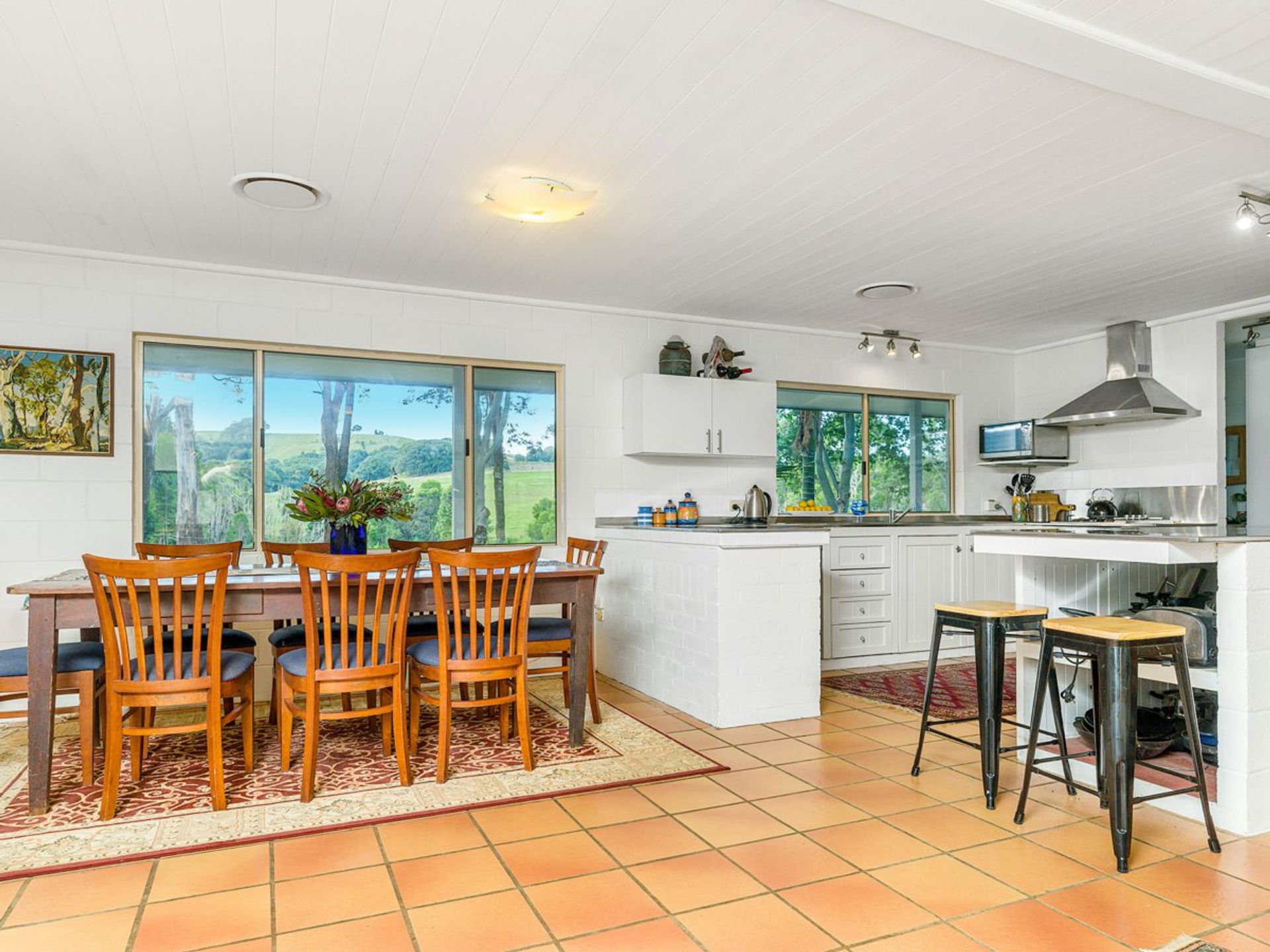 The residence is centered at the heart of the acreage with views to a rural hillside dotted with grazing cattle, over the park- like paddocks and timber fenced dressage arena. The pretty home simply fits in this nurturing rural environment bringing the outside inside, with every room framing a view. It is a home with heart offering 3 bedrooms and two bathrooms, light and bright open plan living, ducted air-conditioning and solar power. One bedroom with private access is suited to holiday let, guests can even bring their horses. This property is zoned 2a and dual occupancy may be permissible STCA.