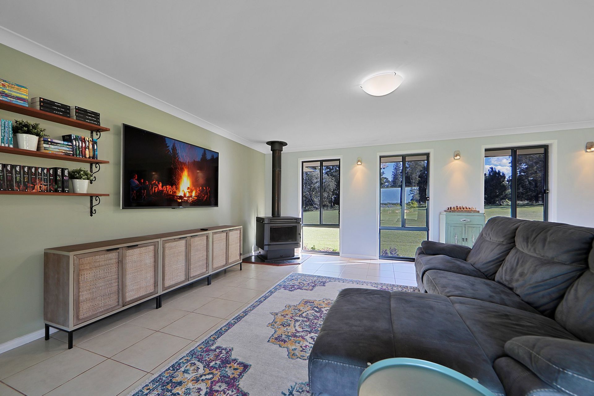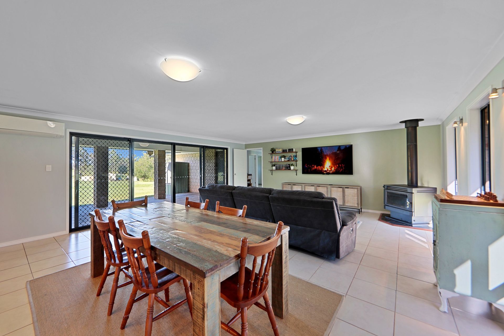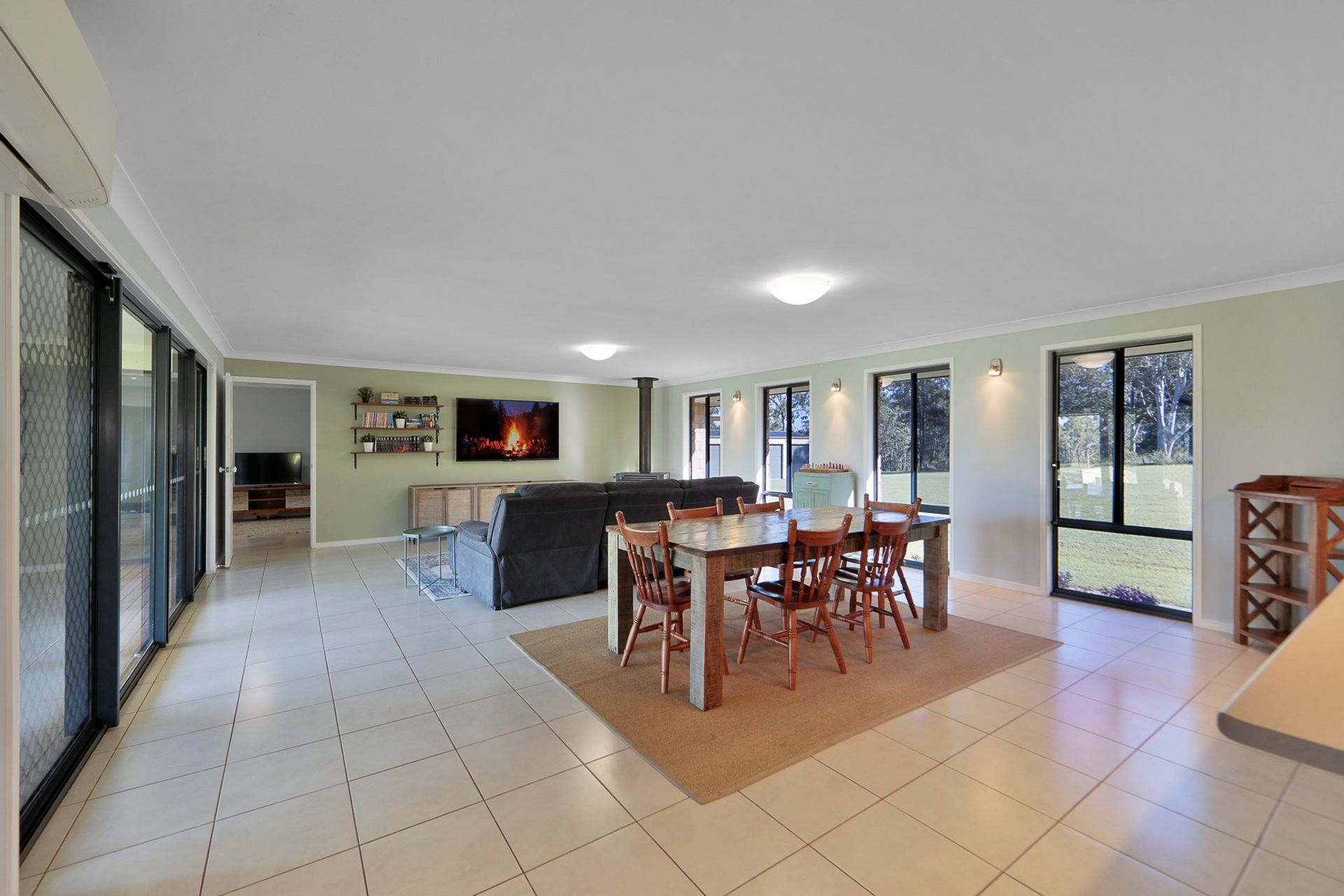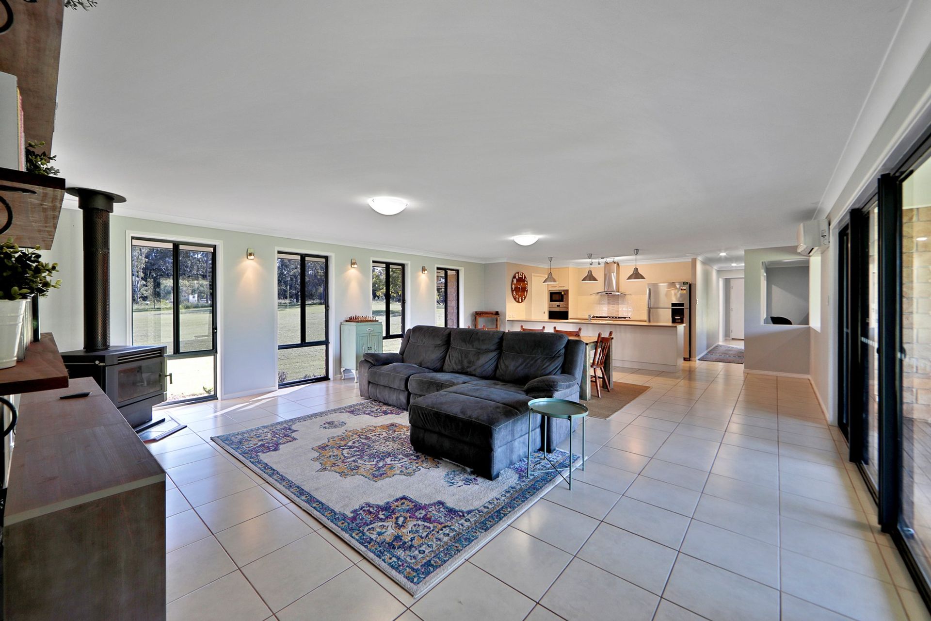• Supersized Air-Conditioned Open Plan Living area with Kitchen, Dinning, Lounge, Family all included & a combustion fireplace to use in the wintertime.