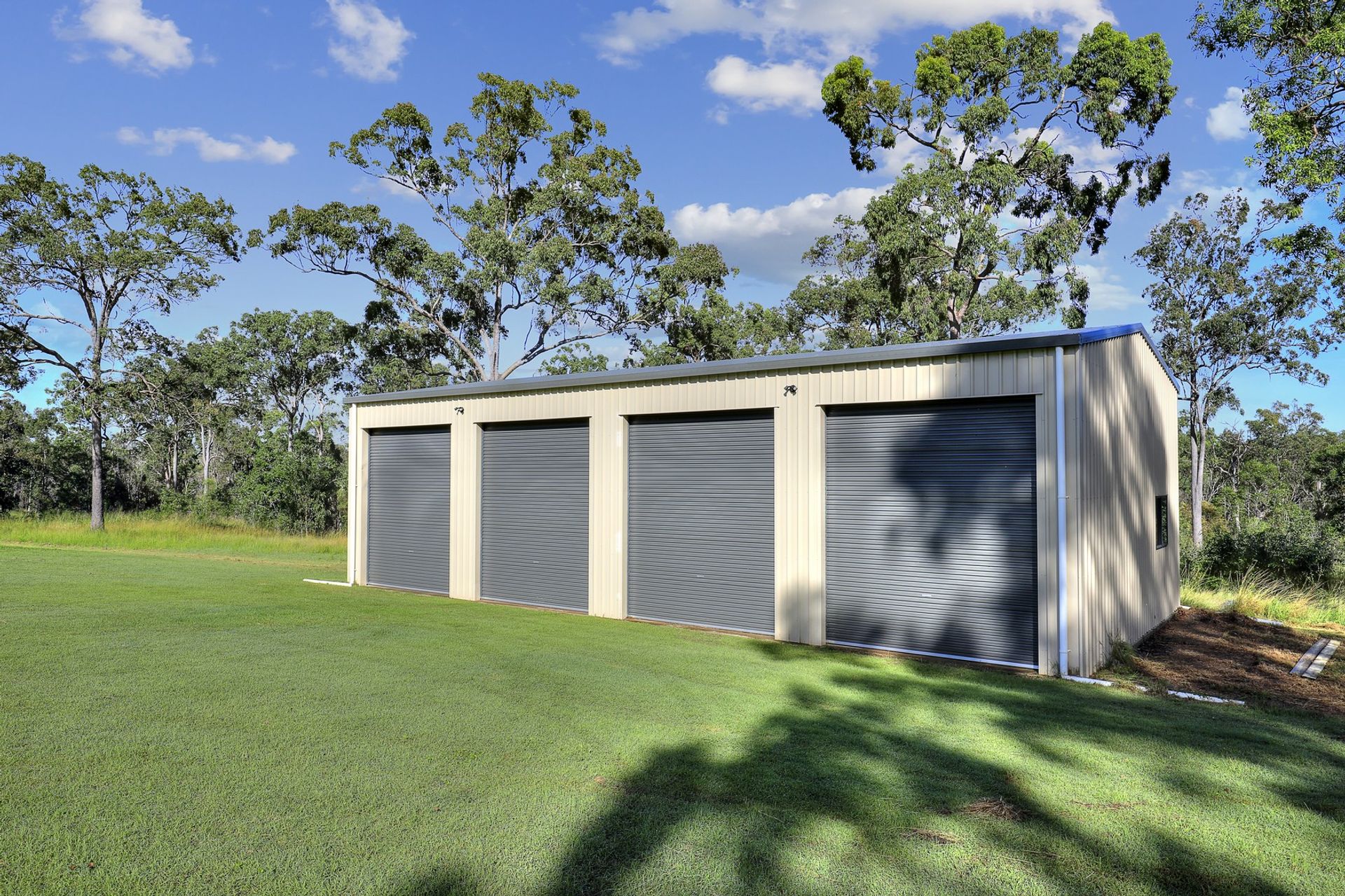 • Huge 4 x Bay Powered Shed, 16 x m long x 8 x m Wide x 4.5 x m High, complete with lighting internally and externally.