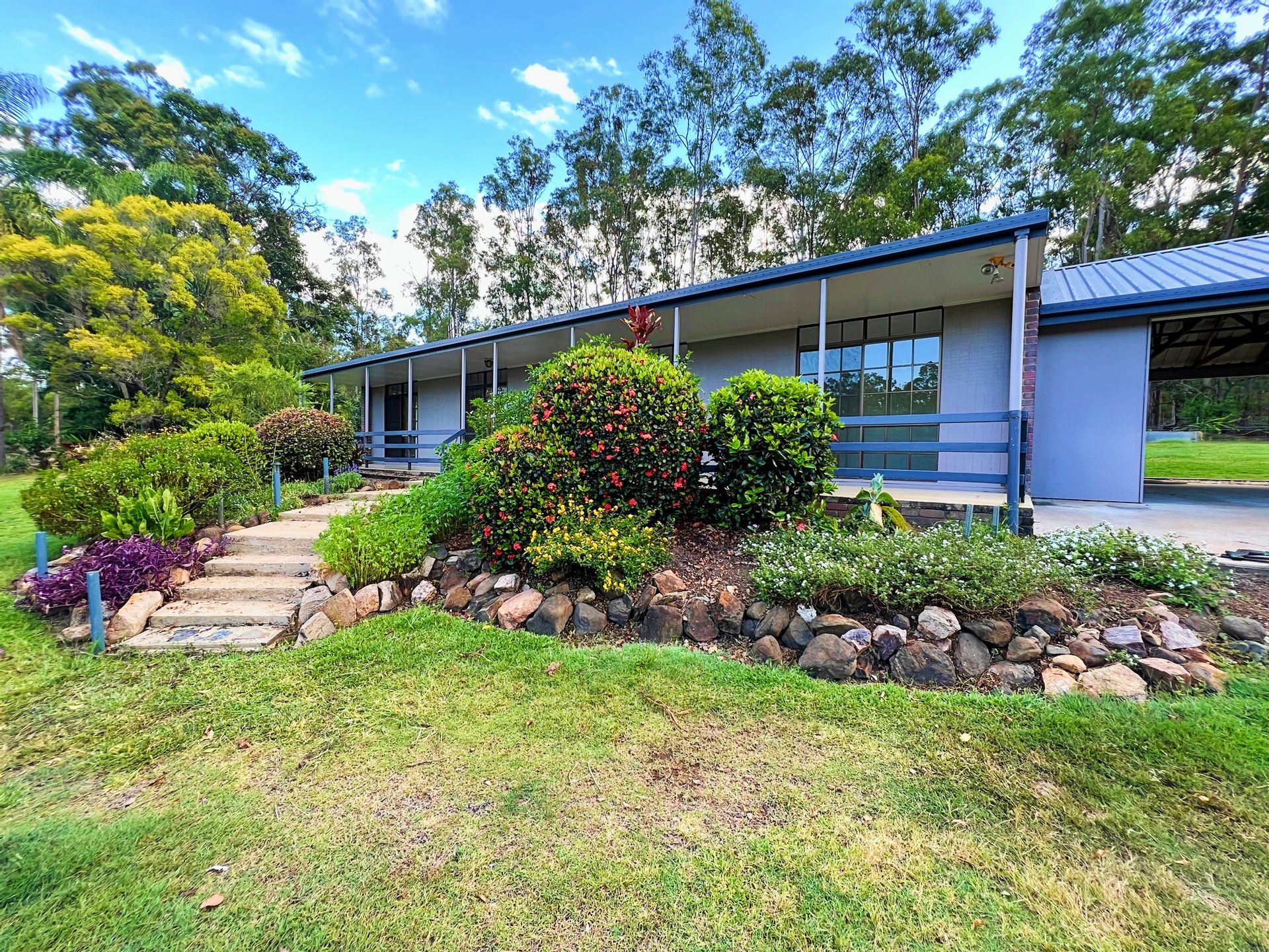 A lot of love has been put into the gardens that surround this home, which is evident from how healthy and vibrant the plants are. There are numerous watering points around the yard, where water is pumped from the dam, to keep everything looking green.
