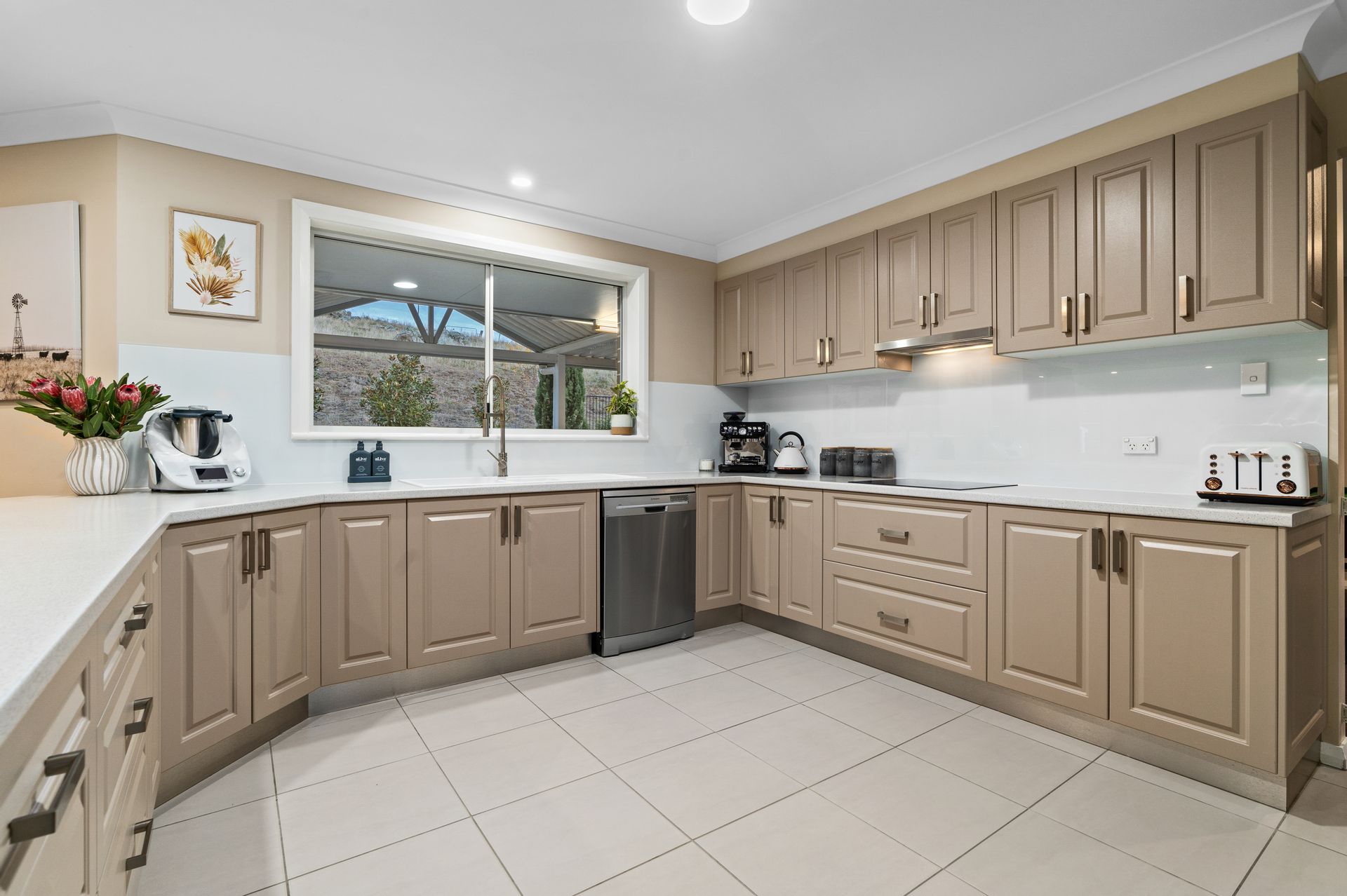 With a garden that comes to life each spring featuring rows of colourful Japanese maples, Crepe Myrtles, Seaside Daisies & over 60 Roses which bloom almost all year round. There are also Weeping Cherries, fruit trees & a colourful cottage garden which provide a stunning visual from the large kitchen window.