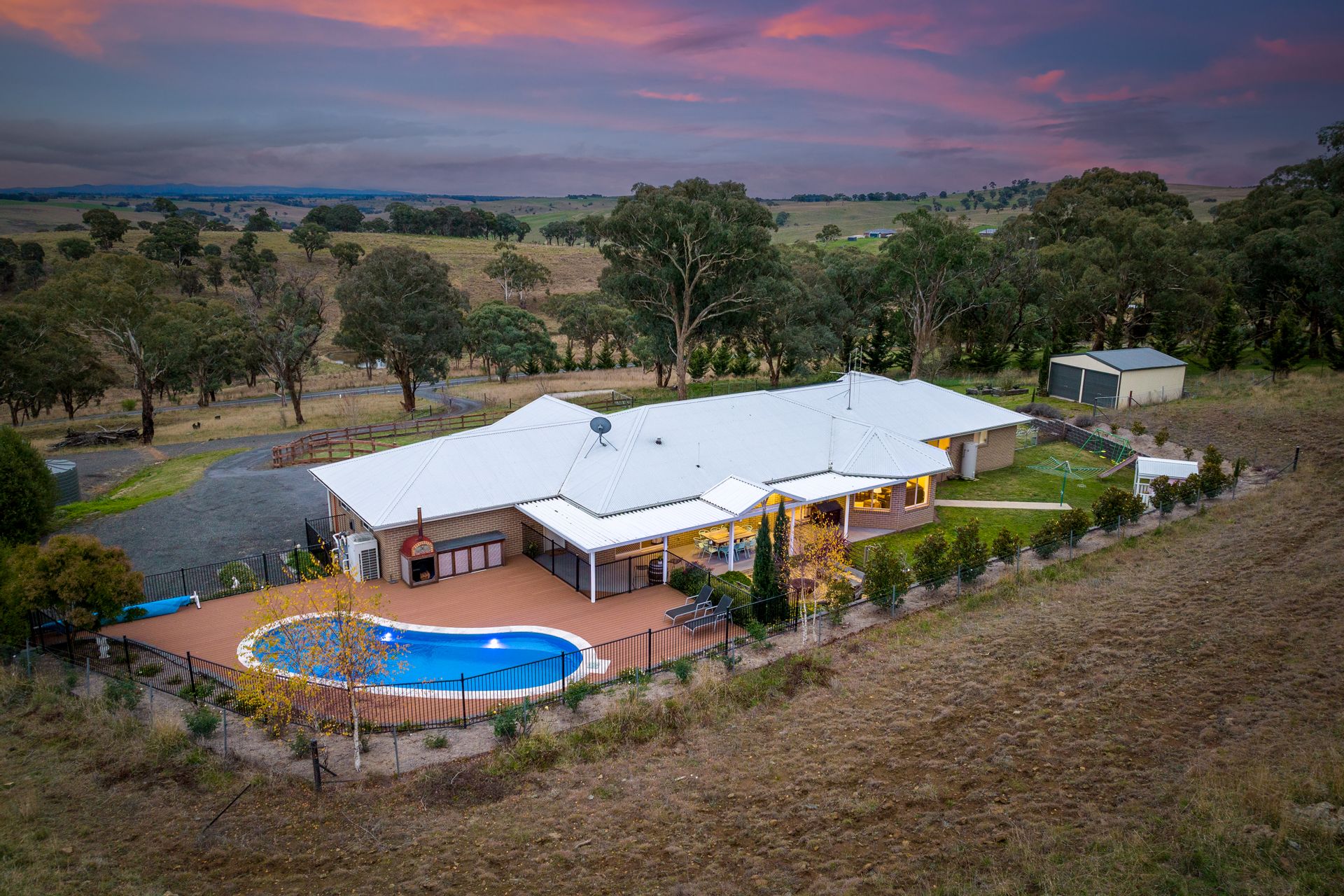 • Additional 7x7m garage + a high bay 17x10.5m Colorbond shed/workshop