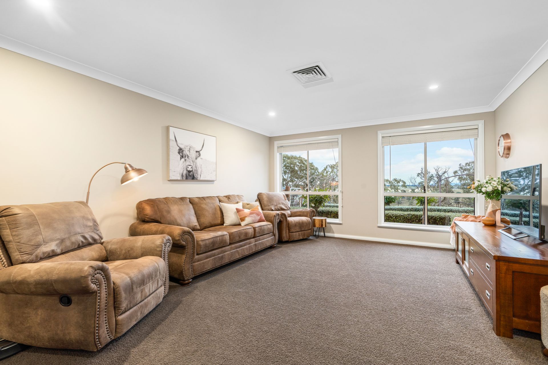 Located approx. 30 minutes to Orange, 35 minutes to Bathurst, 15mins to Carcoar, 10 minutes to Millthorpe & 5 minutes to Blayney, this luxurious family home is truly something that must be seen to be appreciated. Sitting proudly on a manicured 5 acres* of land, the home was constructed to take advantage of the extensive, north-facing, mountainous views & to capture natural warmth from the sun. This allows the living & bedroom areas of the home to be bathed in natural light all year round.