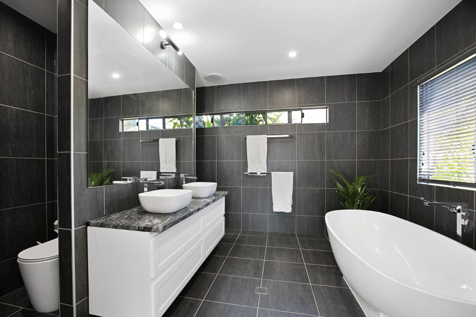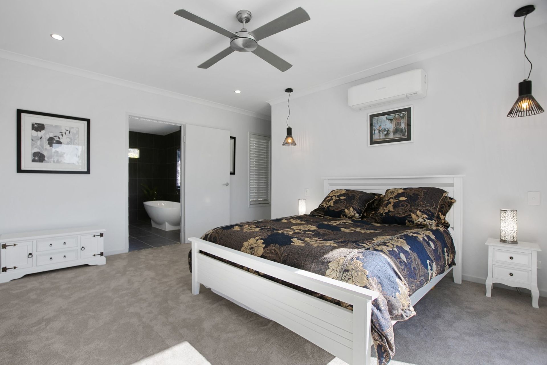 The home includes 3 bedrooms, as well as a fourth room which would be perfect for a home-office with its own external access, or could easily be a fourth bedroom. The impressively sized main bedroom includes ceiling fan, reverse-cycle air-conditioning, walk-in-robe and an ensuite with a free-standing bath that you will never want to leave, along with his & her basins.
