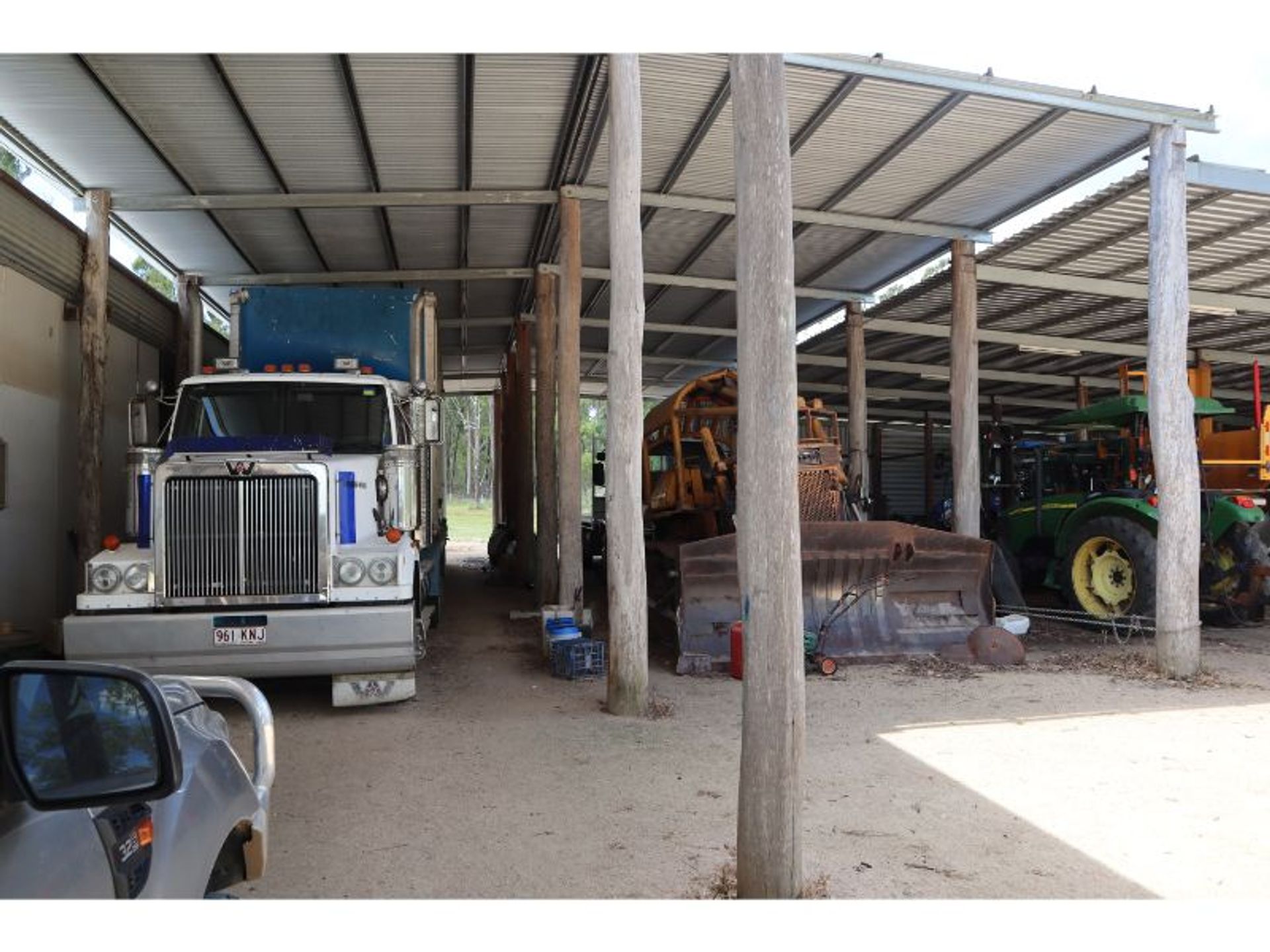 • Very large ironbark, steel & corrugated iron machinery & storage shed, capable of storing semi-trailers and bulldozers