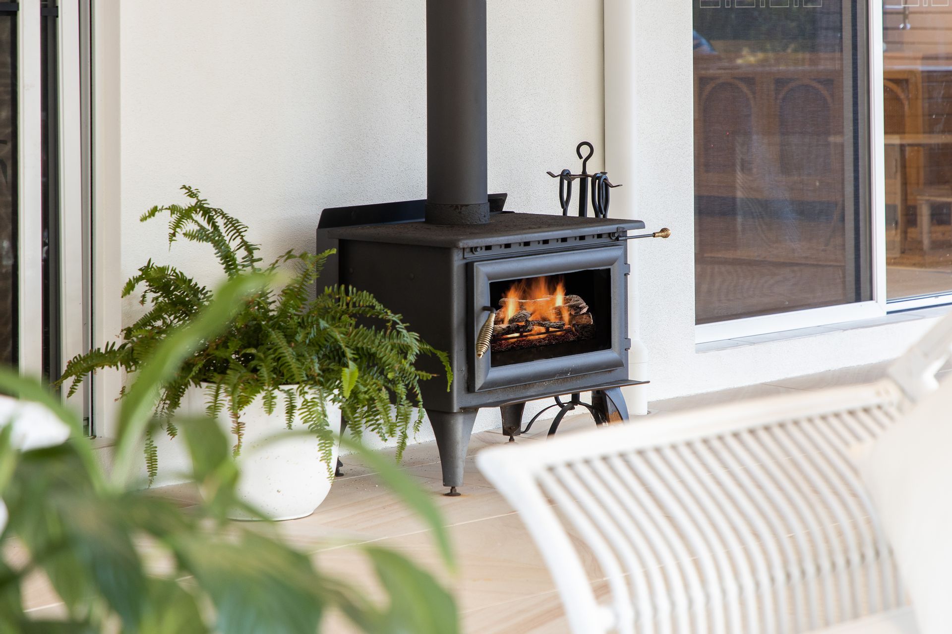 • Main home: single level rendered brick with steel frame