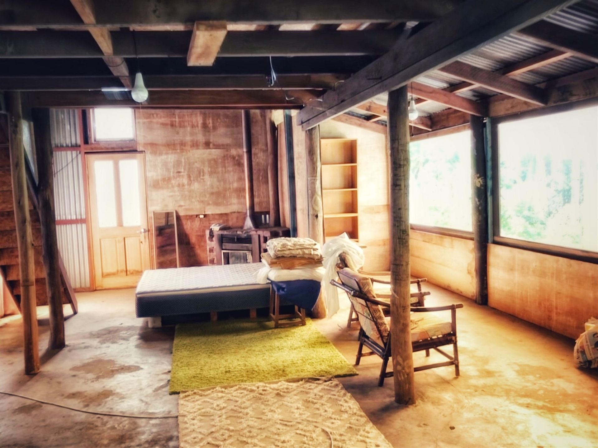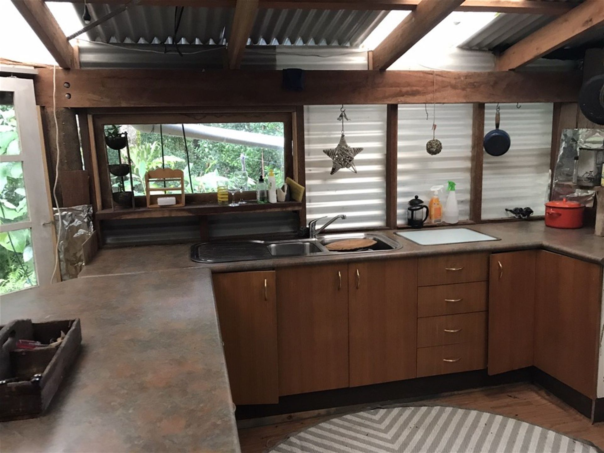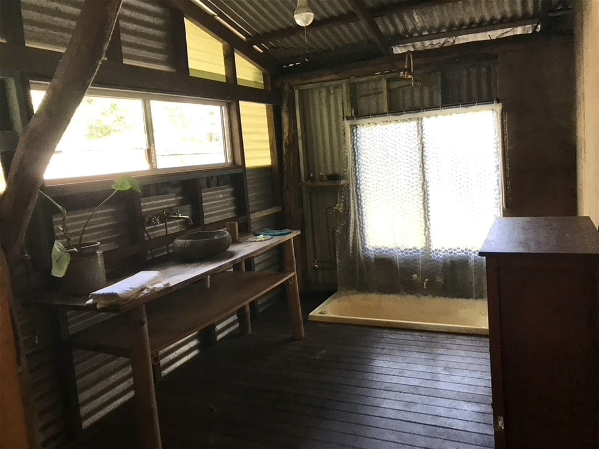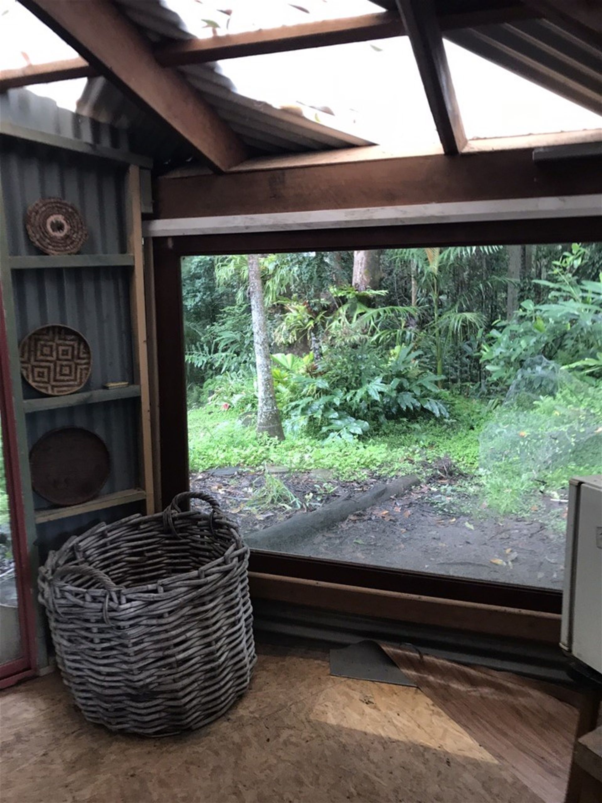 Lush tropical gardens abound & surround the open plan, rustic style main dwelling, complete with wood fired stove & solar power.