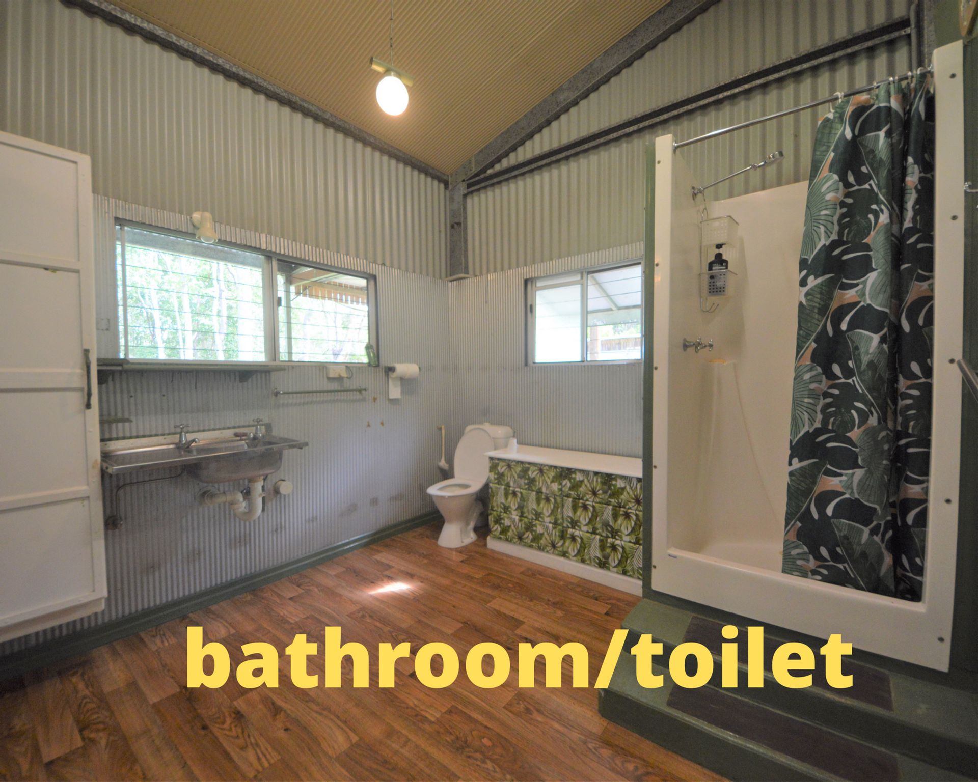 Practical kitchen, space saving share bathroom, toilet, and laundry.