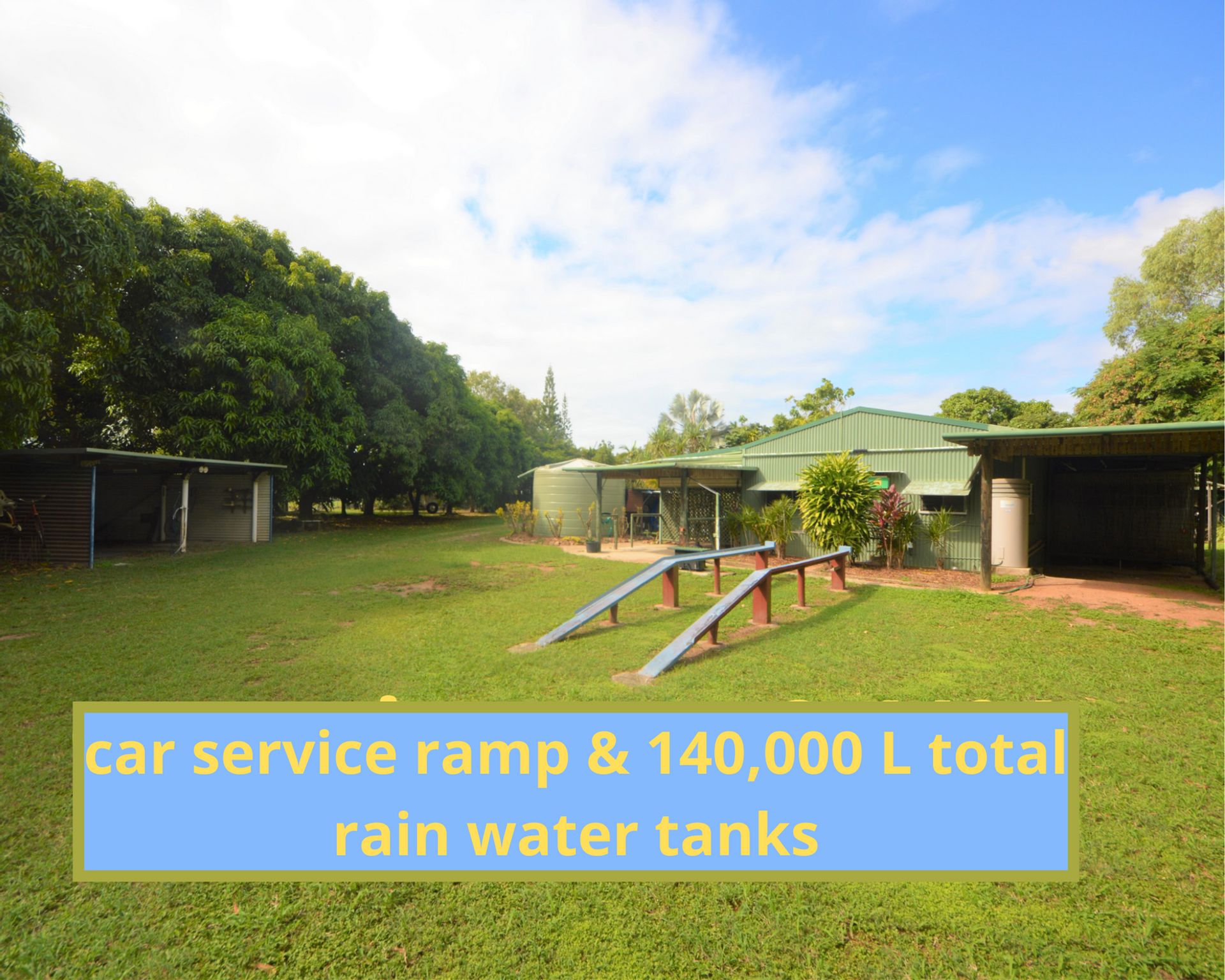 A huge 140,000 litre worth of rainwater tanks, plus town water, postal delivery, and garbage collection.