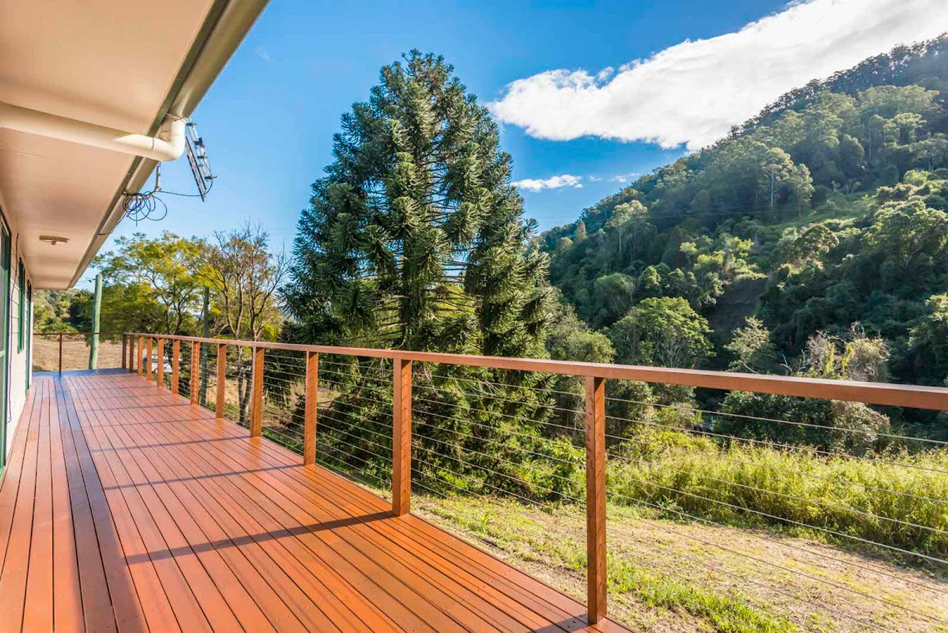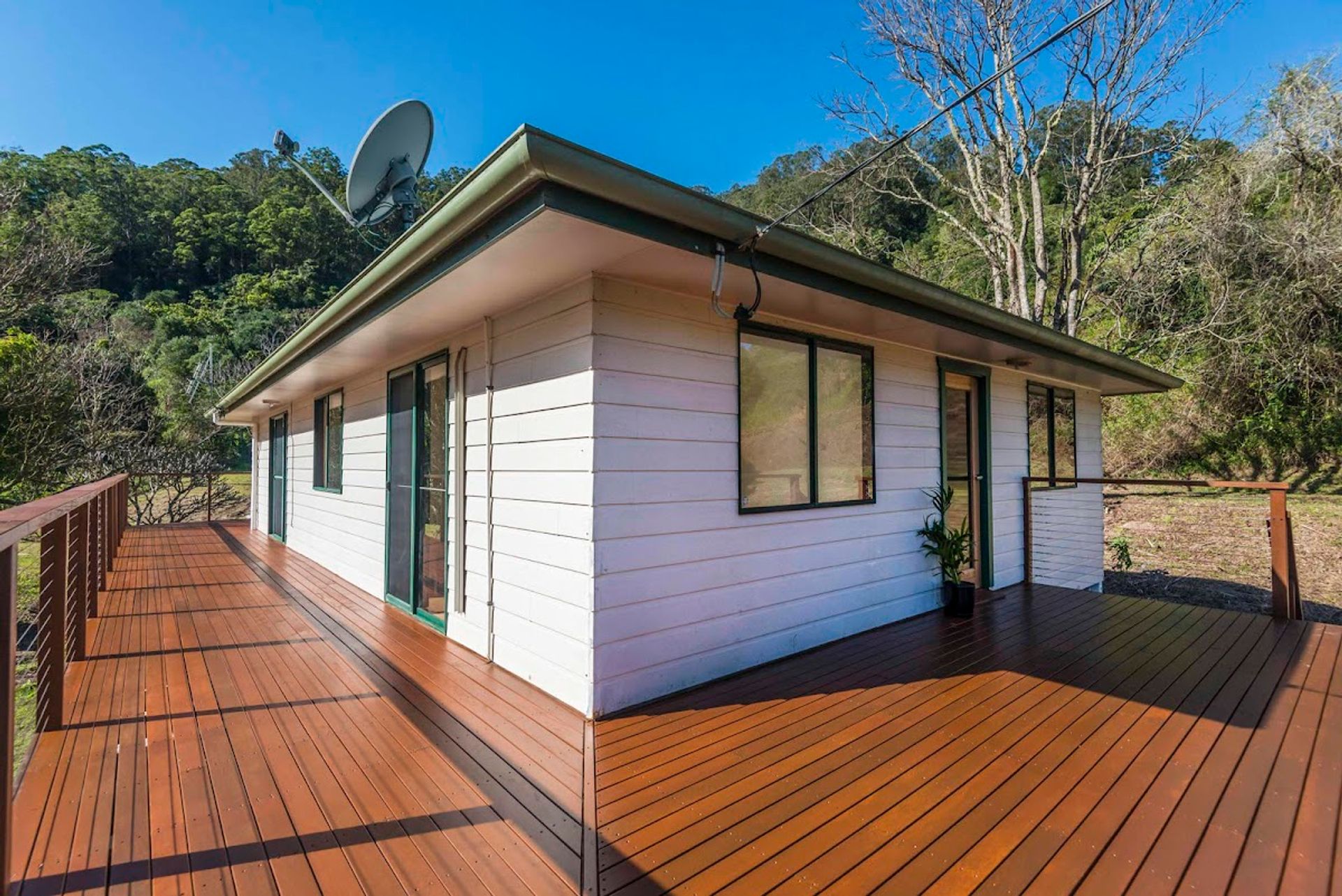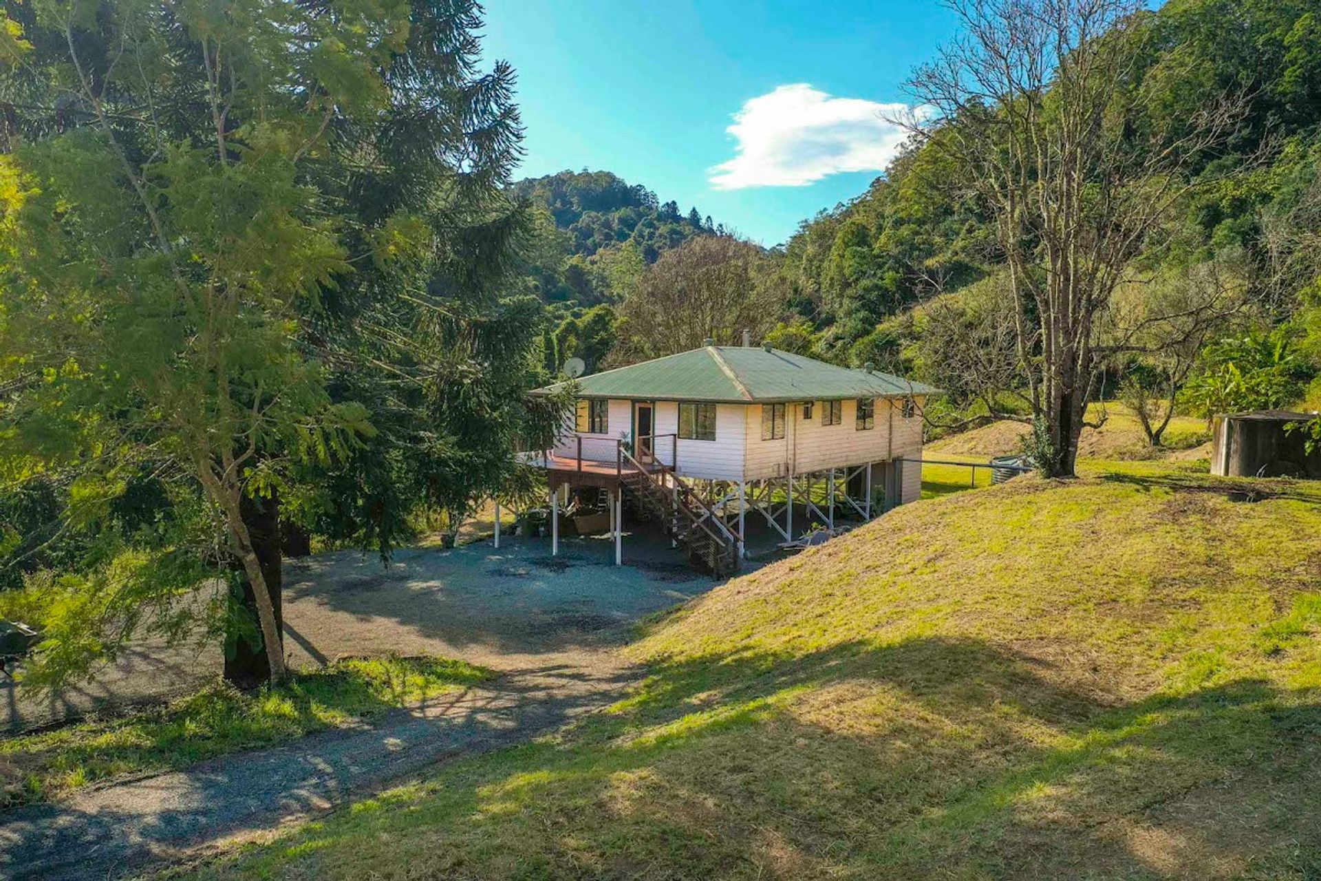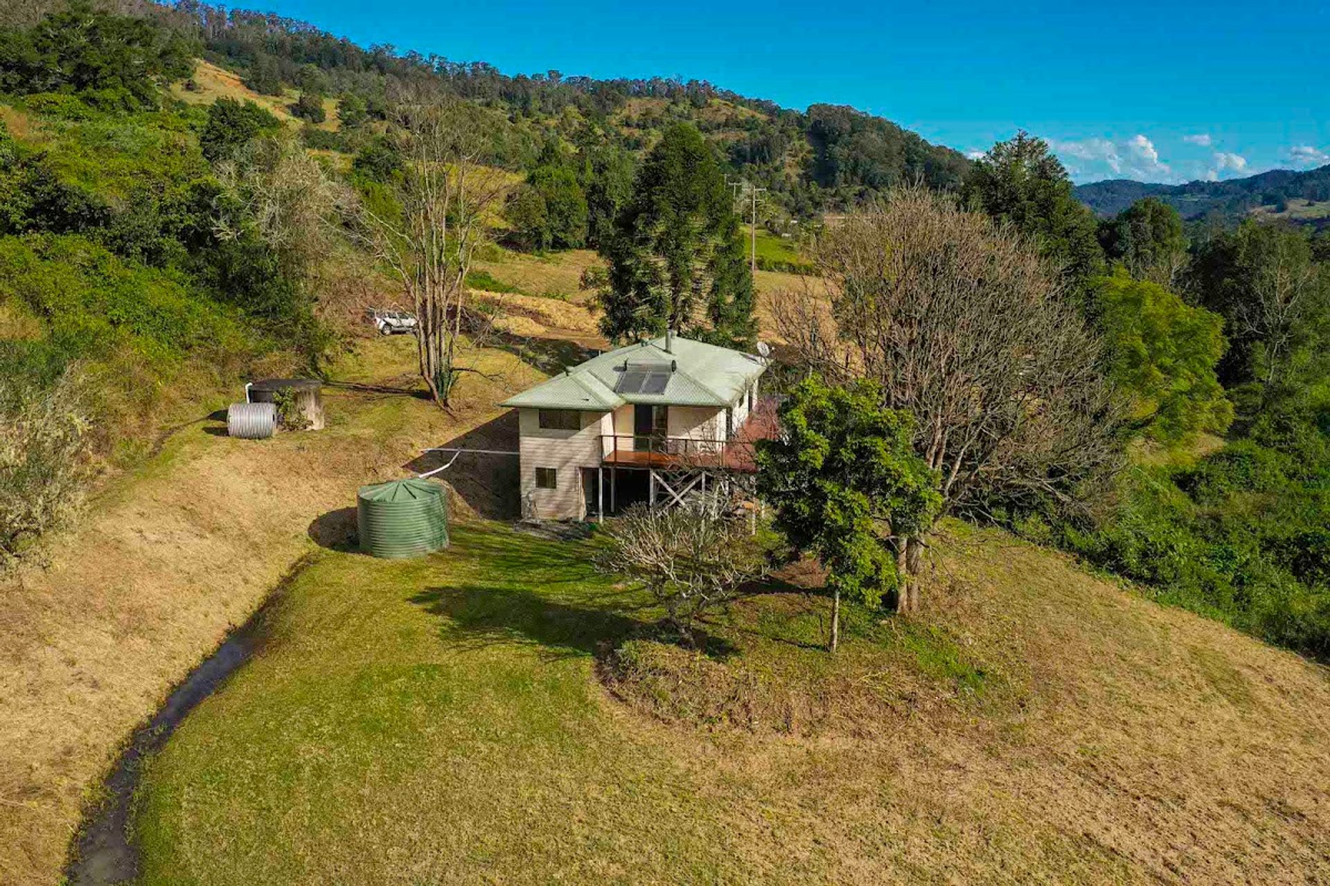 This 176 acre property is situated in a quiet valley and includes a comfortable 4 bed 1 bath house with exclusive, breath taking views of the surrounding forests captured from the beautiful U-shaped timber deck that wraps around three sides of the house. The closest neighbour is 200m away & facing a totally different aspect. Best of all there is your very own, private waterfall a short 5 minute stroll from the house.