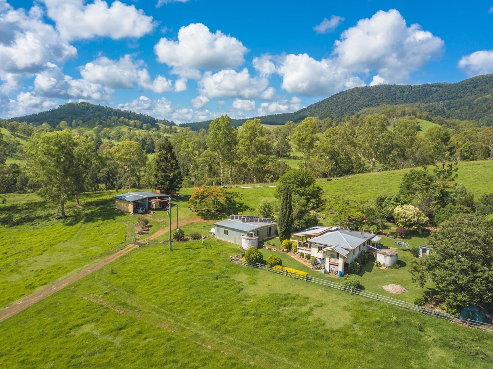 The gently undulating country consists of open Blue Gum flats, Bloodwood ridges, planted to a productive mix of improved and native grasses and legumes. There are also other areas of old grown rainforest with huge trees, Staghorns and Crows Nest epiphytes.