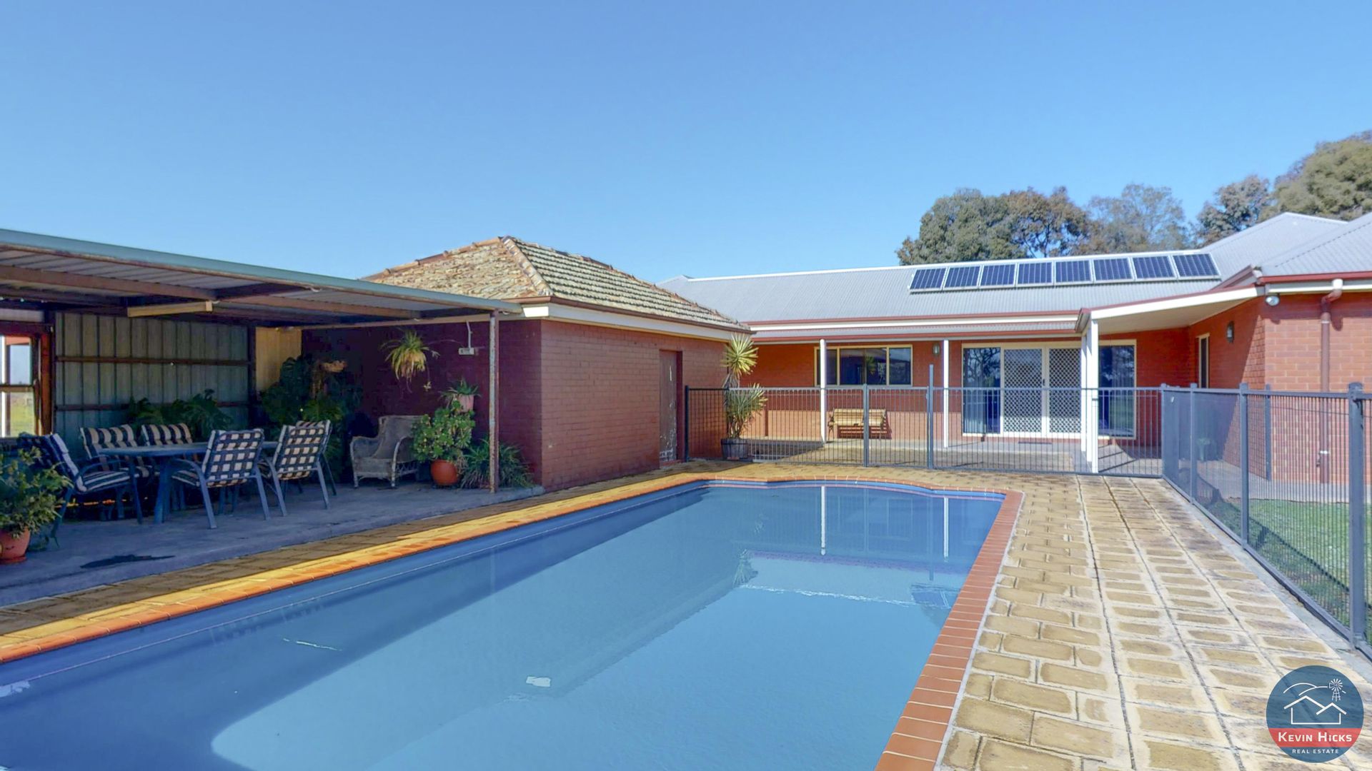 The house yard features a salt-chlorinated solar-heated swimming pool with undercover entertaining area, a tennis court (currently de-commissioned) with amenities and storage room, expansive lawns and a veggie garden.