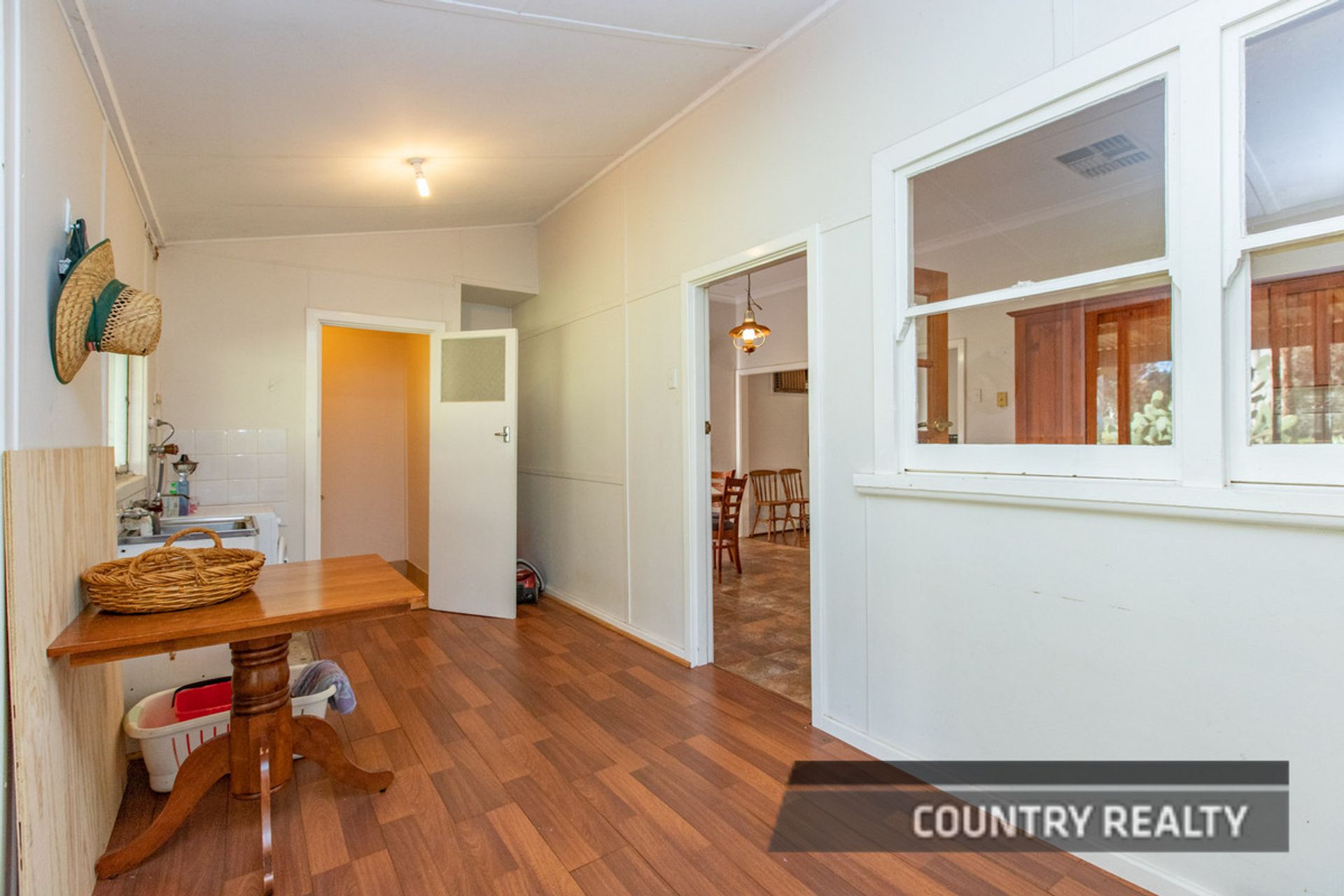 conditioning and slow combustion heating with polished timber floors, large kitchen with walk in pantry, BIR in the main bedroom has a great outlook over the rolling farm land. Nearby is a lake. Yes you could have some fresh water marron or you own canoe for a paddle. Then there is an 18 X 10 shed with two adjoining "lean tos" with one having 6 rooms including a kitchen and bathroom connected to their own septics. These need a bit of work but would make for a great "farmstay" or somewhere to hide the hoard of visitors once you move into this property.