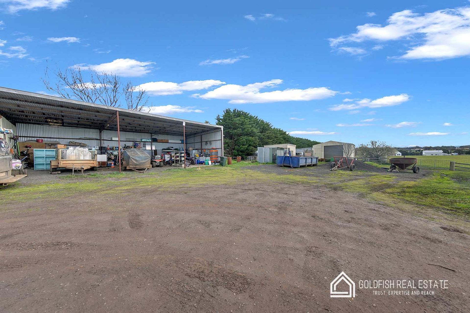 With well managed 6 paddocks, excellent standard farm fencing & gates, wide laneway between paddocks, dam, approximately 37,000 gals of rainwater tank storage, stockyards, 2 bay hayshed, 4 bay machinery shed. 2 stables and a hot house (all with power & lighting).
