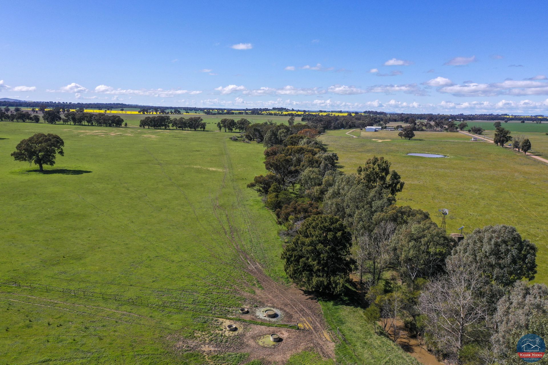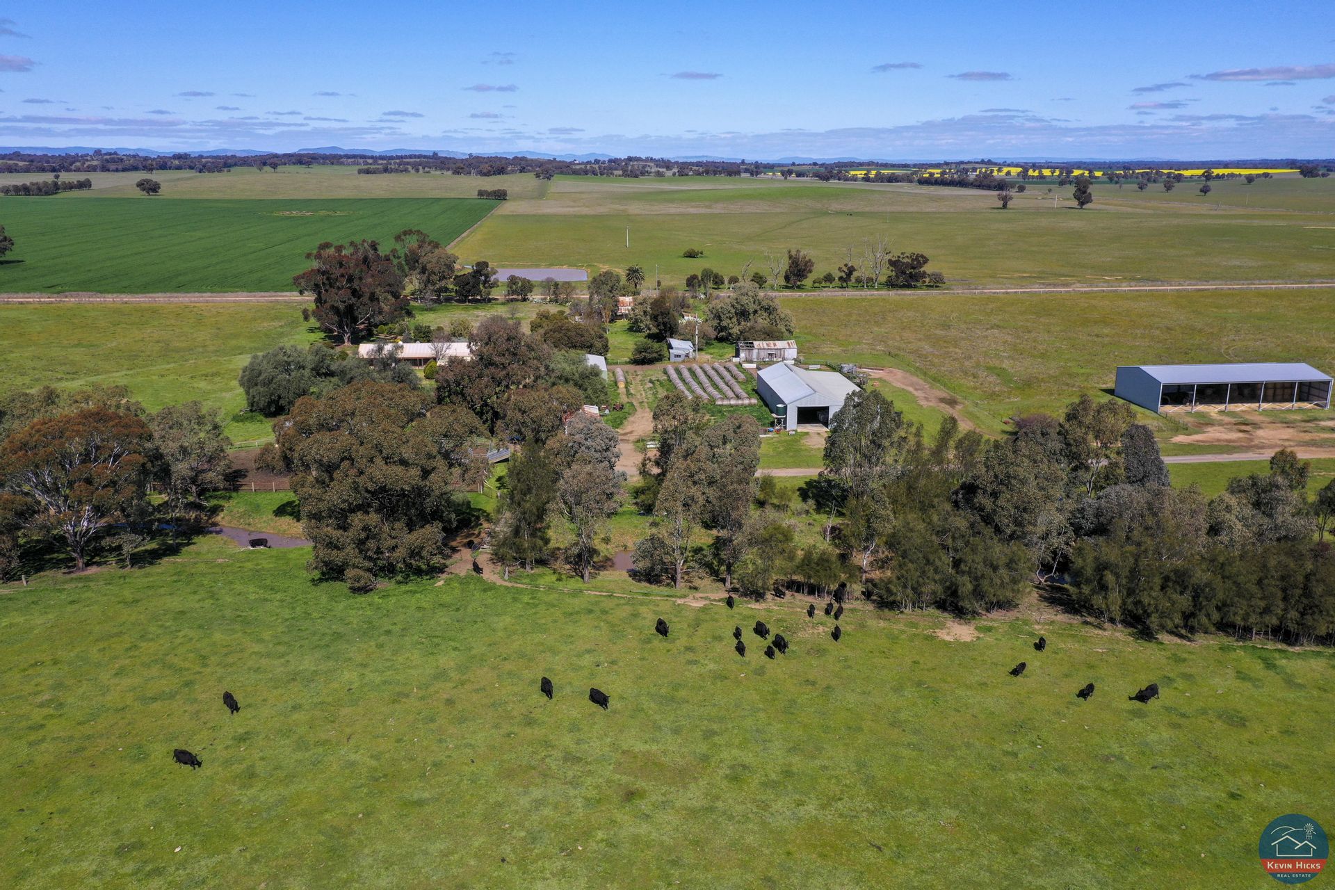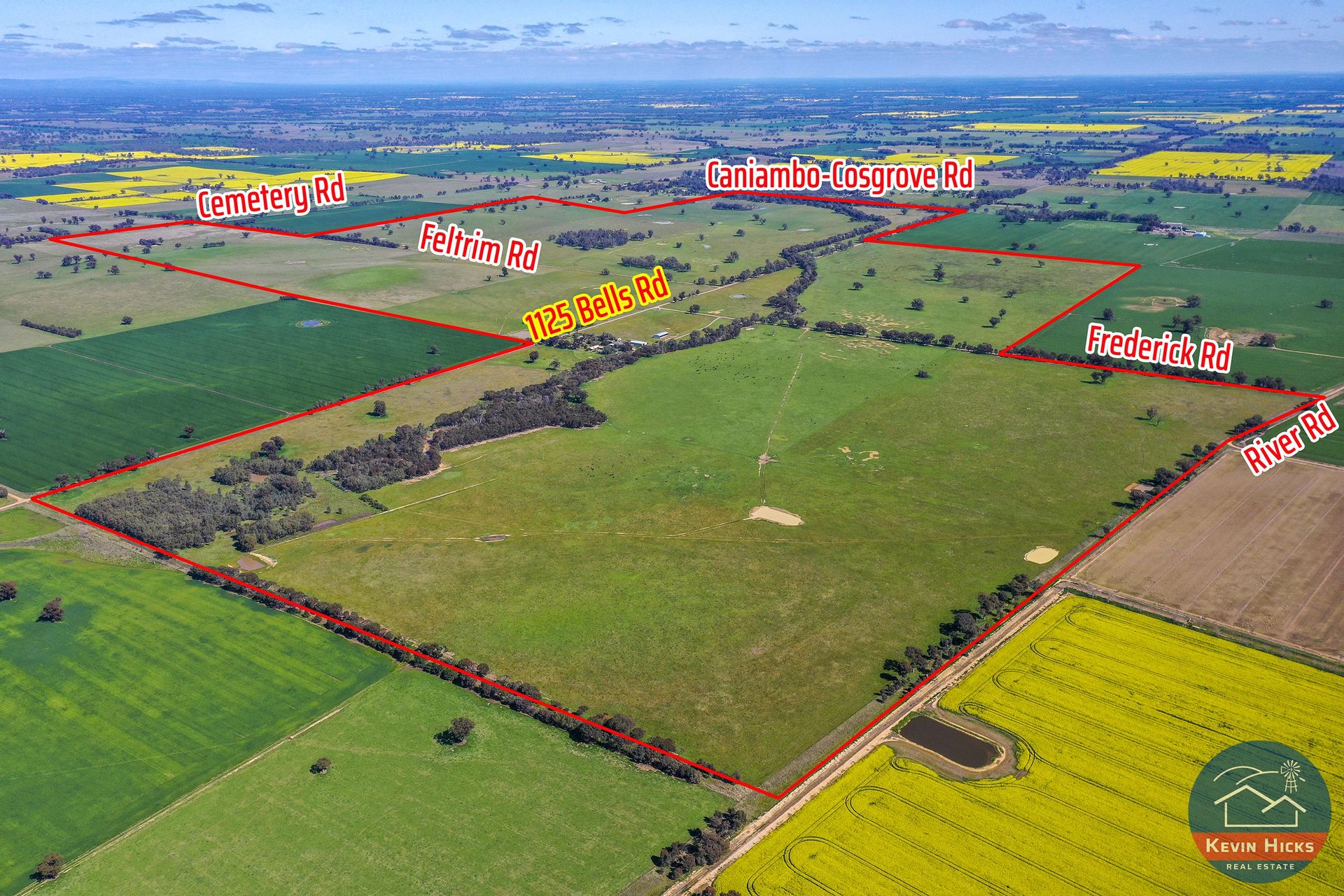 The farm comprises of 10 titles, with strong road boundaries on most of the farm, the south boundary being the Caniambo cemetery road and the north boundary adjoining Gowangardie station (river road). The accumulated area comprises 1375 acres of highly regarded Caniambo district soil types varying from light stony rises, alluvial red country to heavier profile soil types in the gulley's and along the sheep pen creek which transfers through the home block.