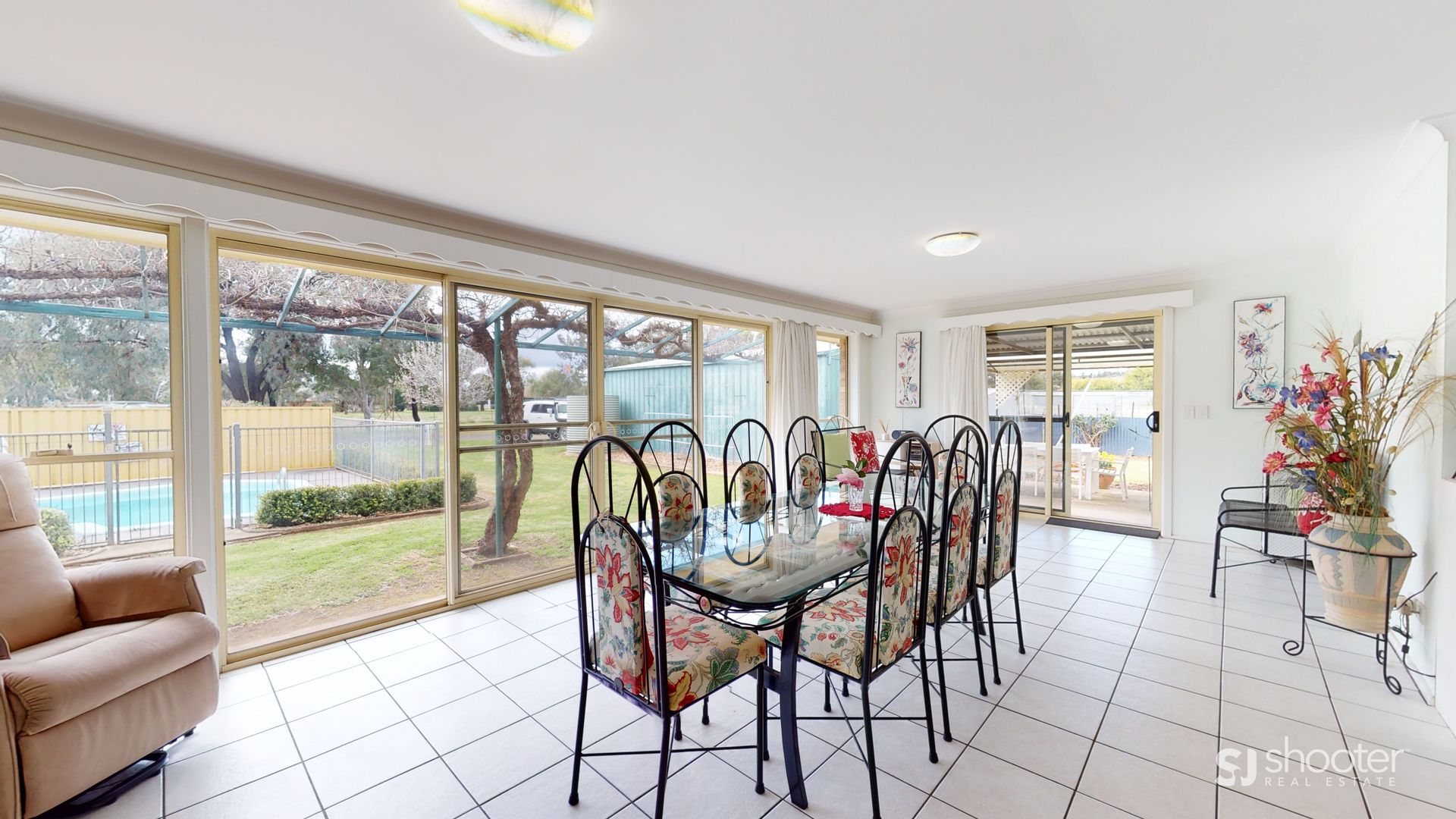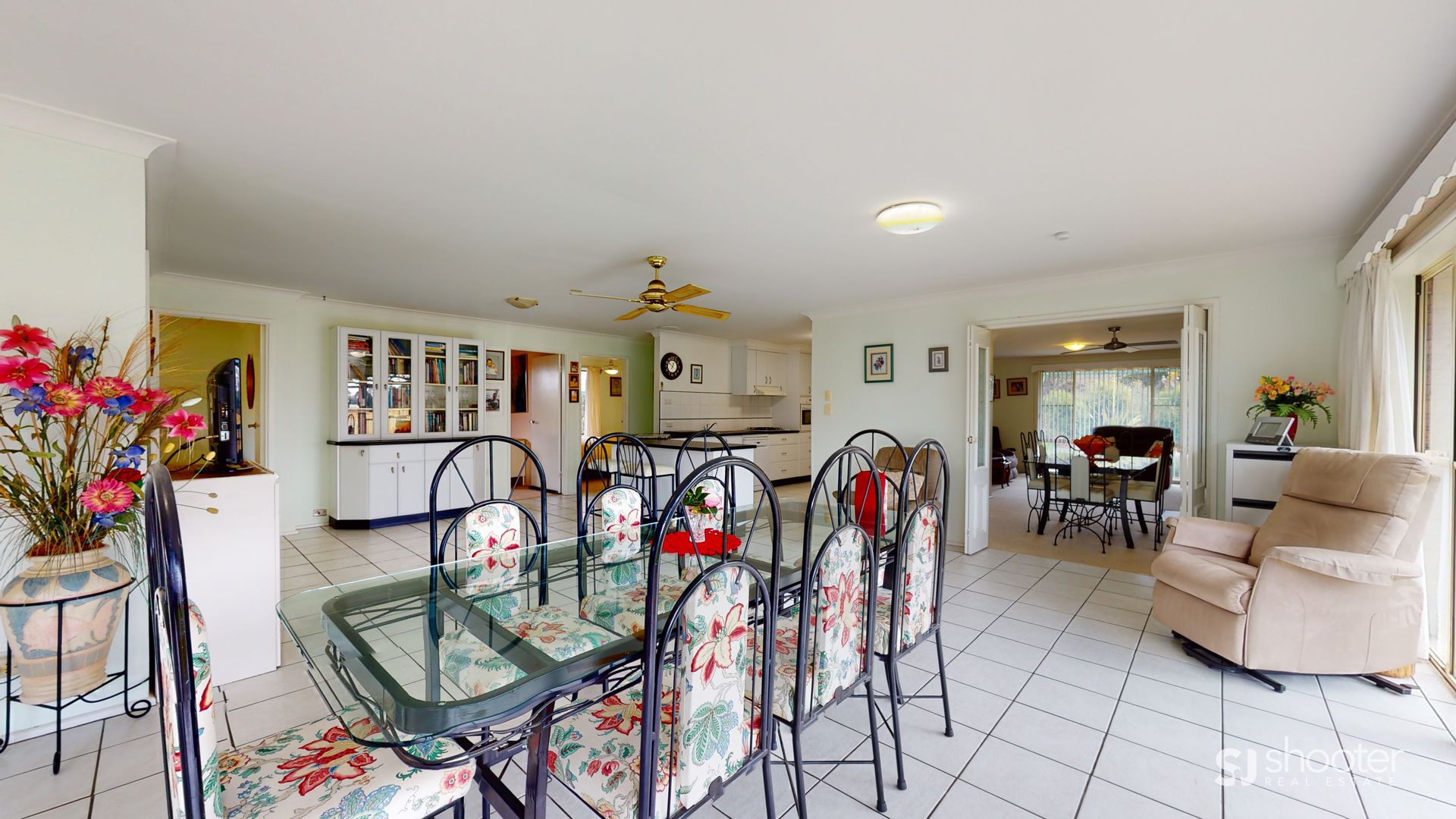 - Open plan kitchen / dining / living area that overlooks pool & gardens