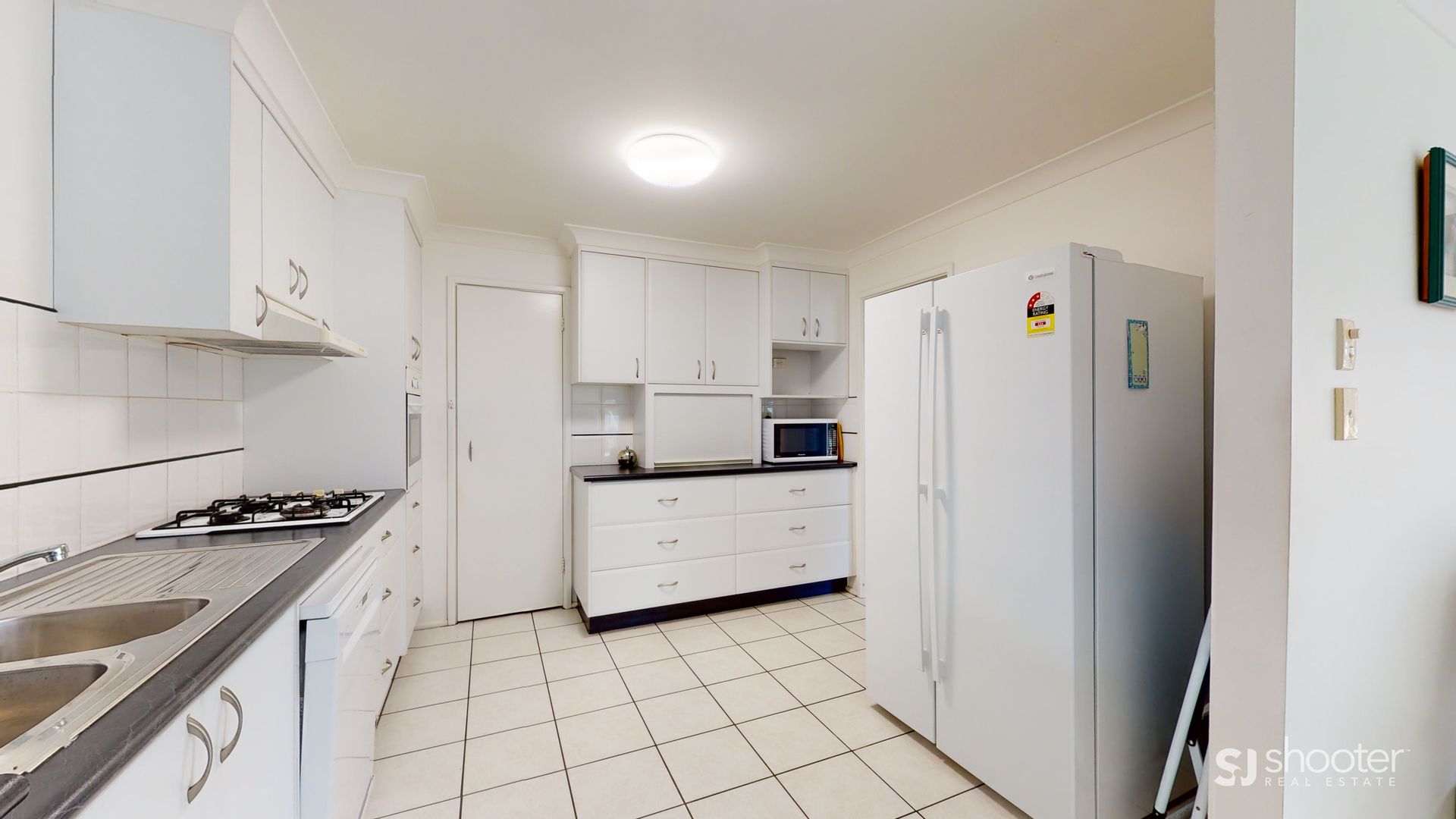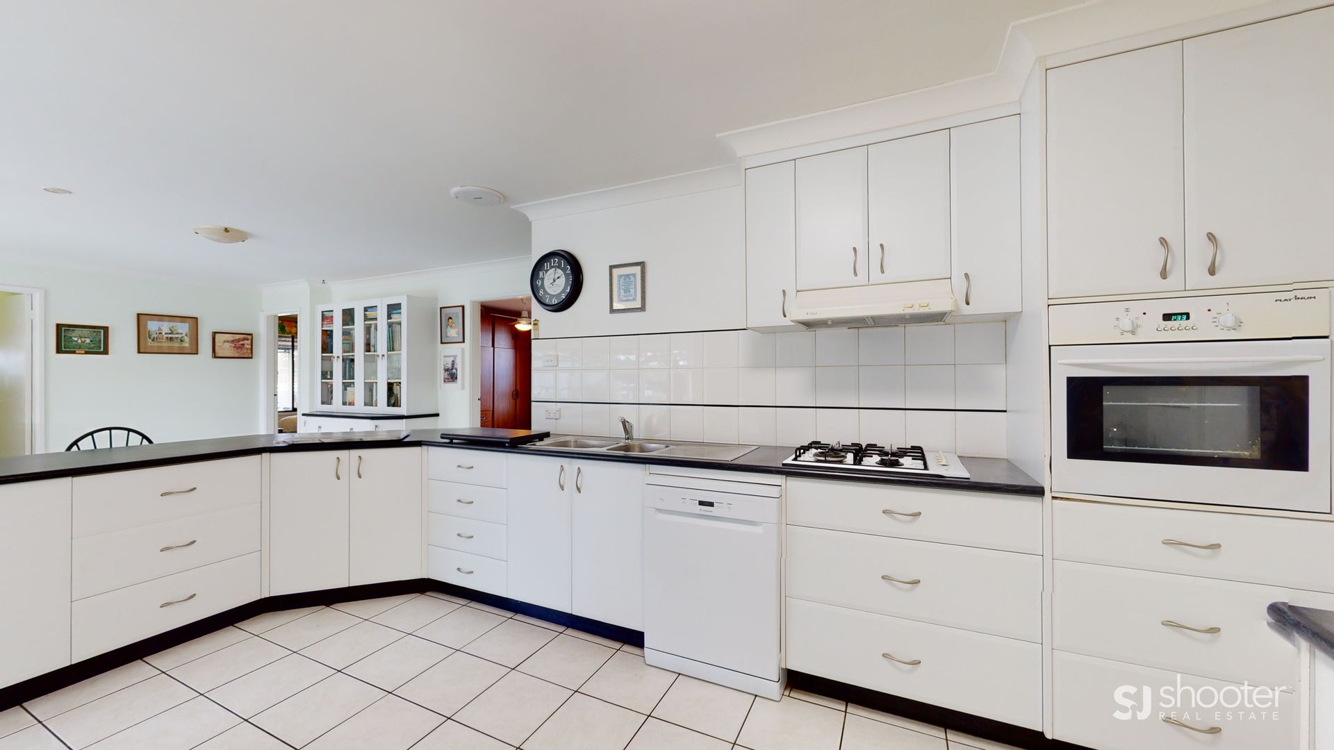 - Kitchen with gas cooktop, electric oven, dishwasher & walk in pantry